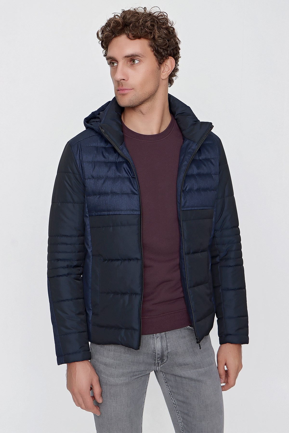 Morven Erkek Lacivert Safir Parçalı Dynamic Fit Rahat Kesim Kapüşonlu Mont