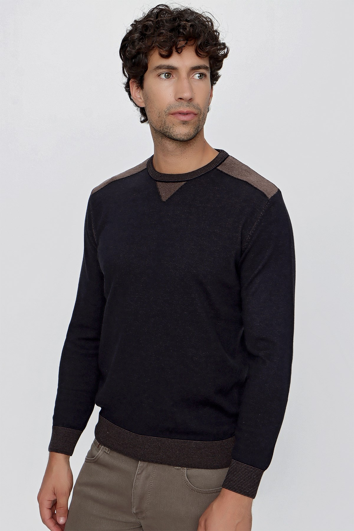 Morven Erkek Lacivert Trend Dynamic Fit Rahat  Kesim Bisiklet Yaka Triko Kazak