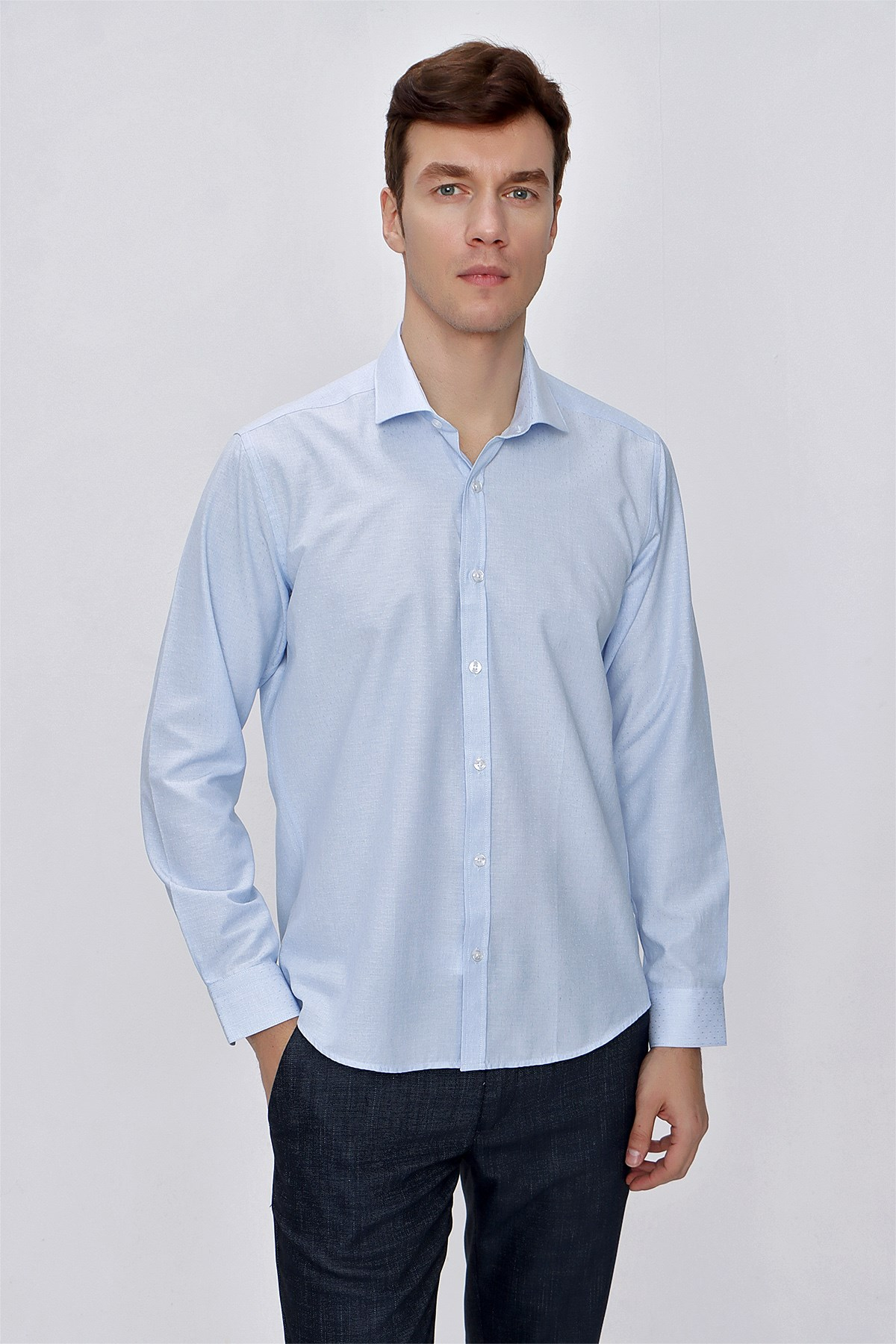 Morven Erkek Mavi Desenli Slim Fit Gömlek