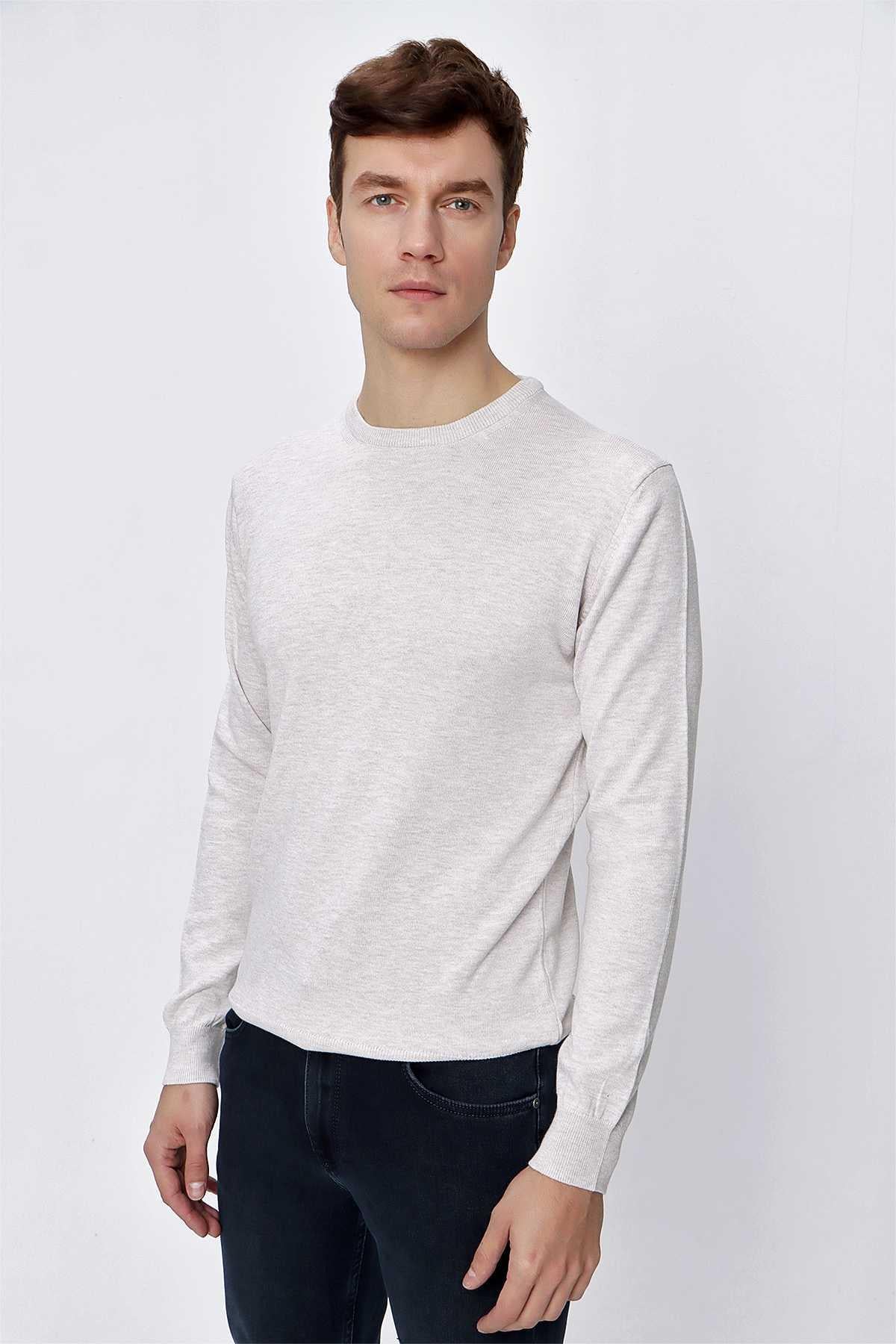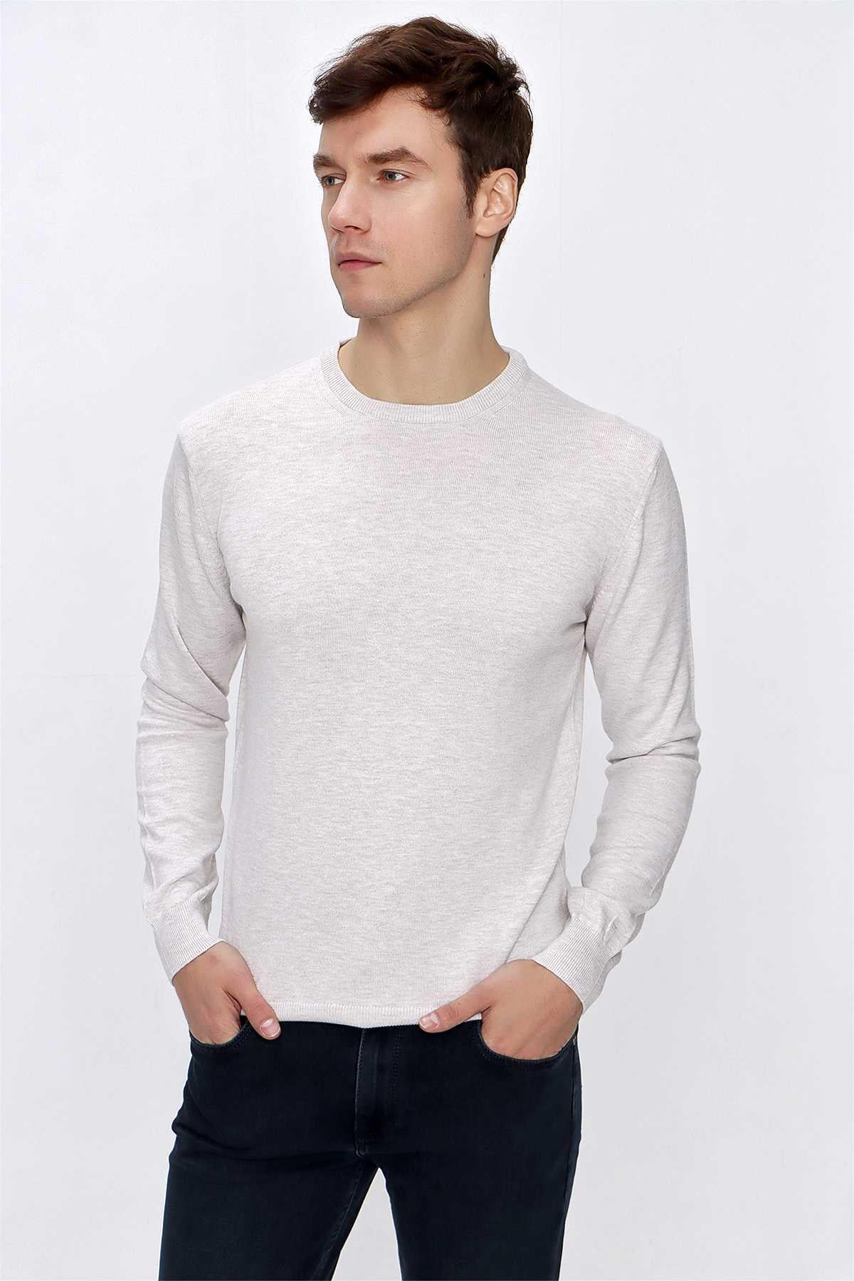 Bej Basic Dinamik Fit Rahat Kesim Bisiklet Yaka Triko Kazak (99KC017005653)