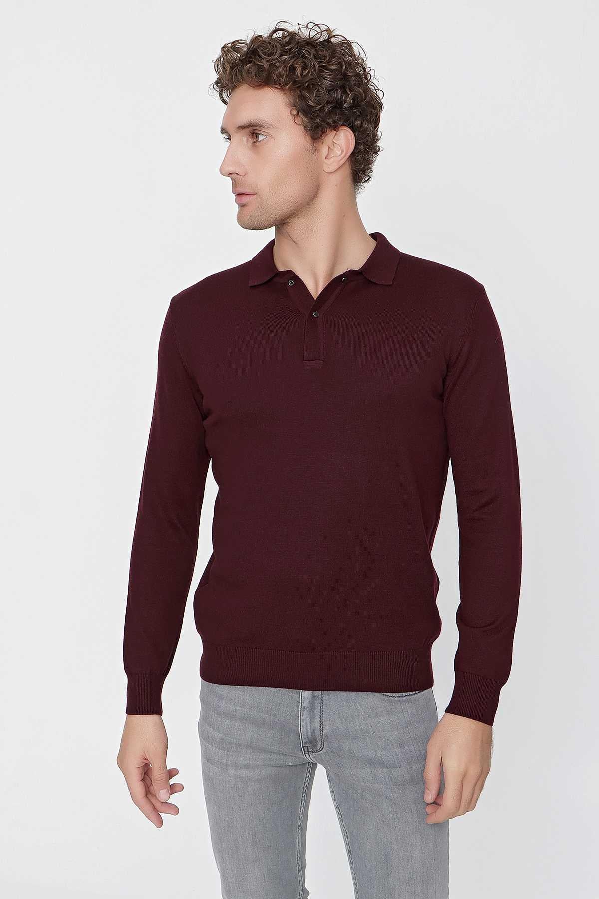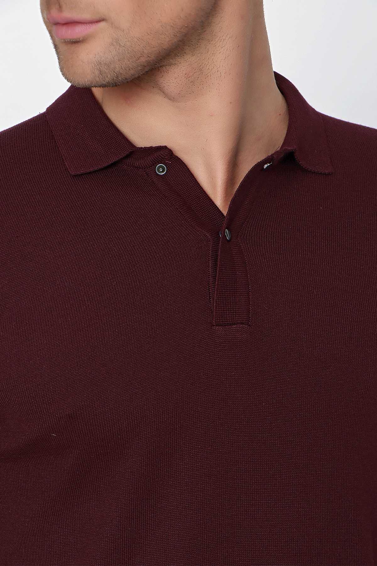 Koyu Bordo Basic Dinamik Fit Rahat Kesim Polo Yaka Triko Kazak (99KC017001752)