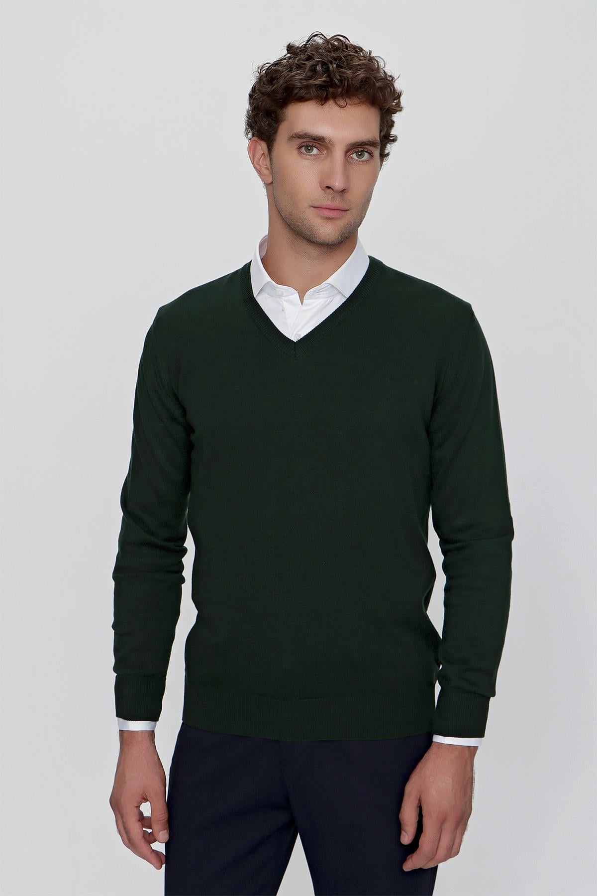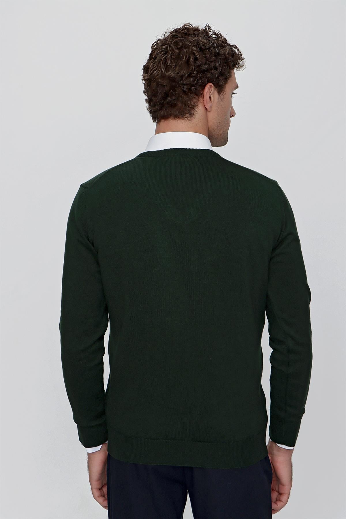 Haki Basic Dinamik Fit Rahat Kesim V Yaka Triko Kazak (99KC017004710)