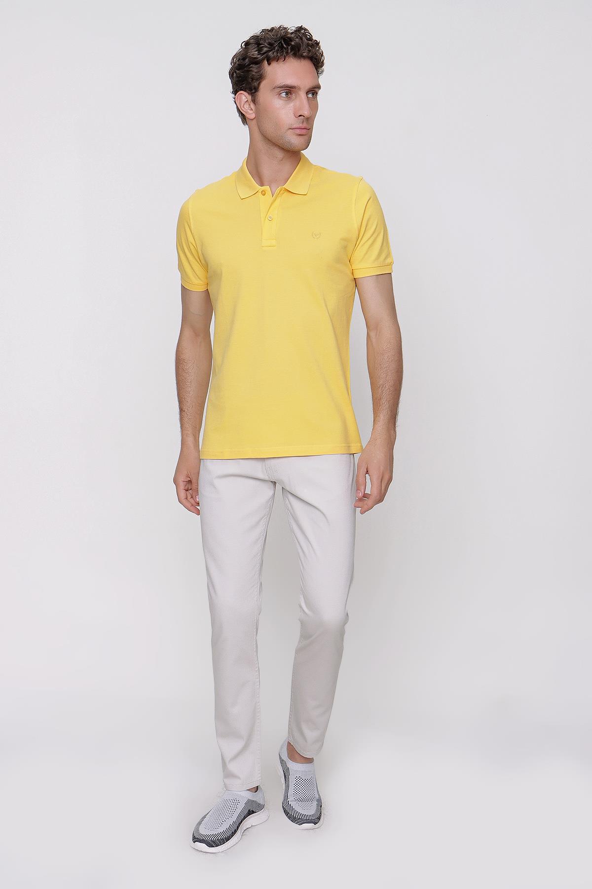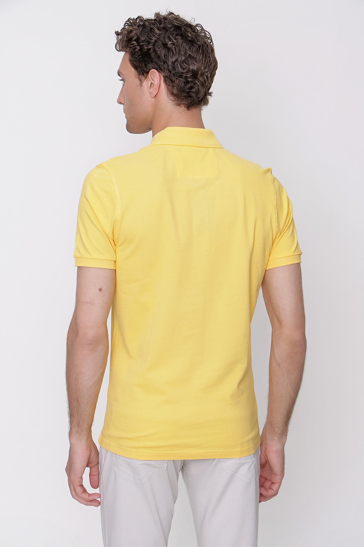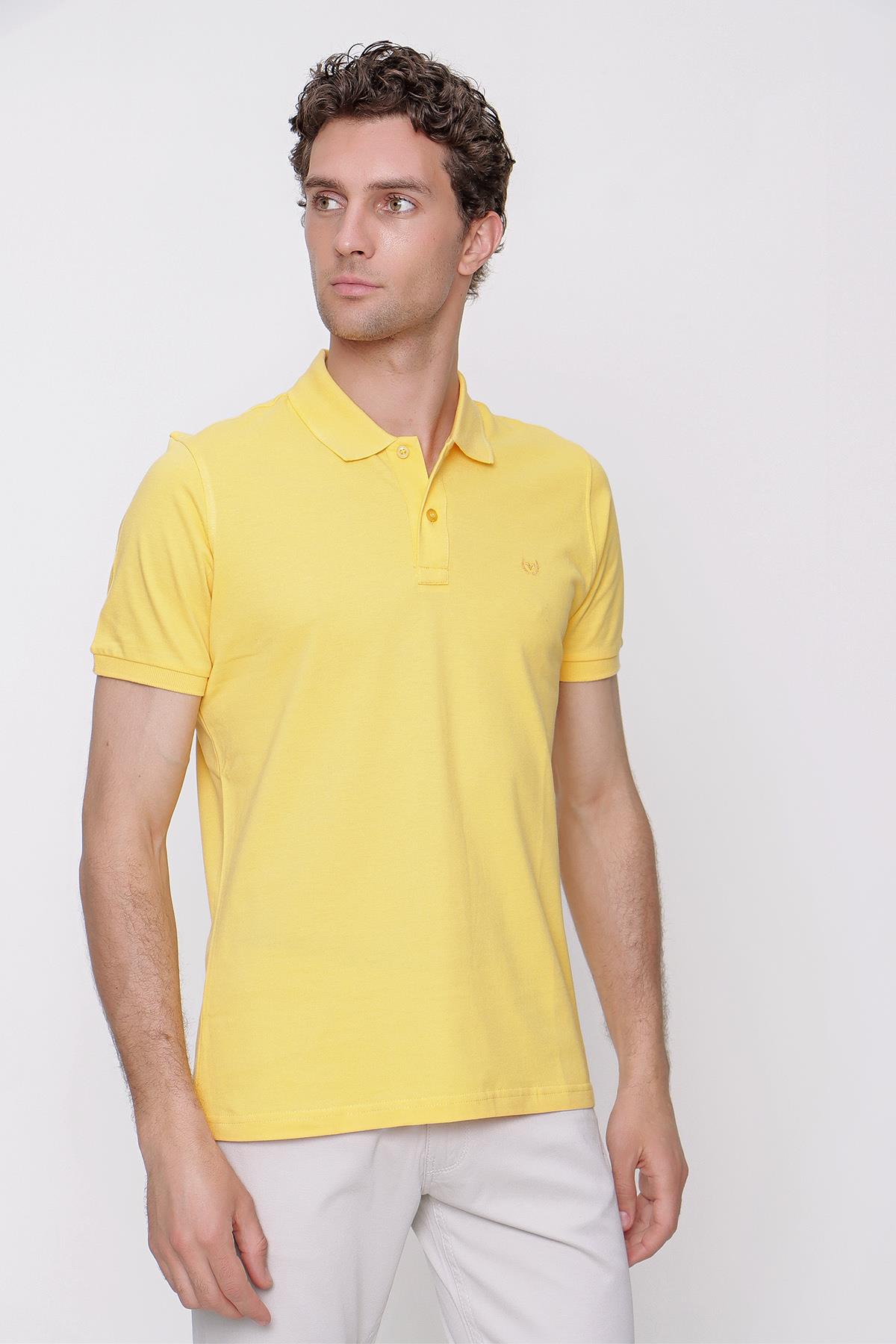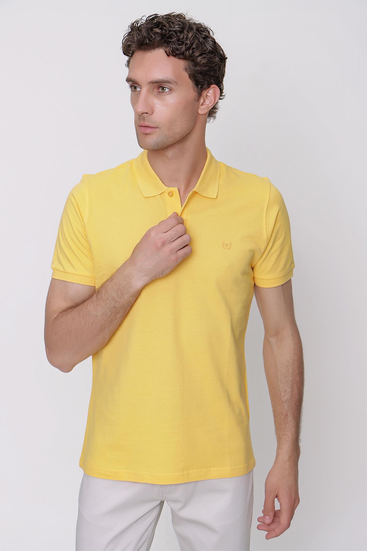Erkek Sarı Basic Düz %100 Pamuk Slim Fit Dar Kesim Kısa Kollu Polo Yaka Tişört (99YC018011500)