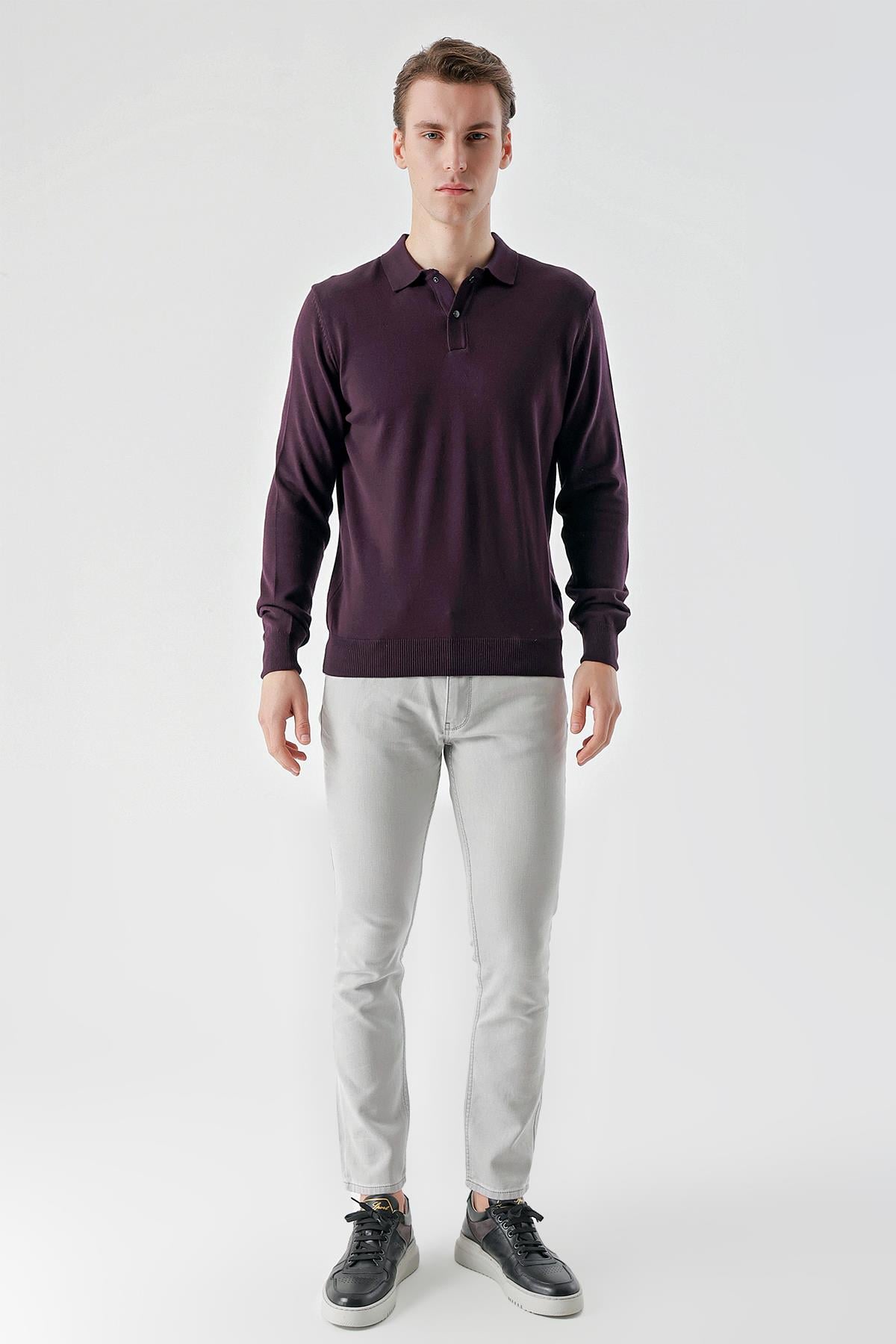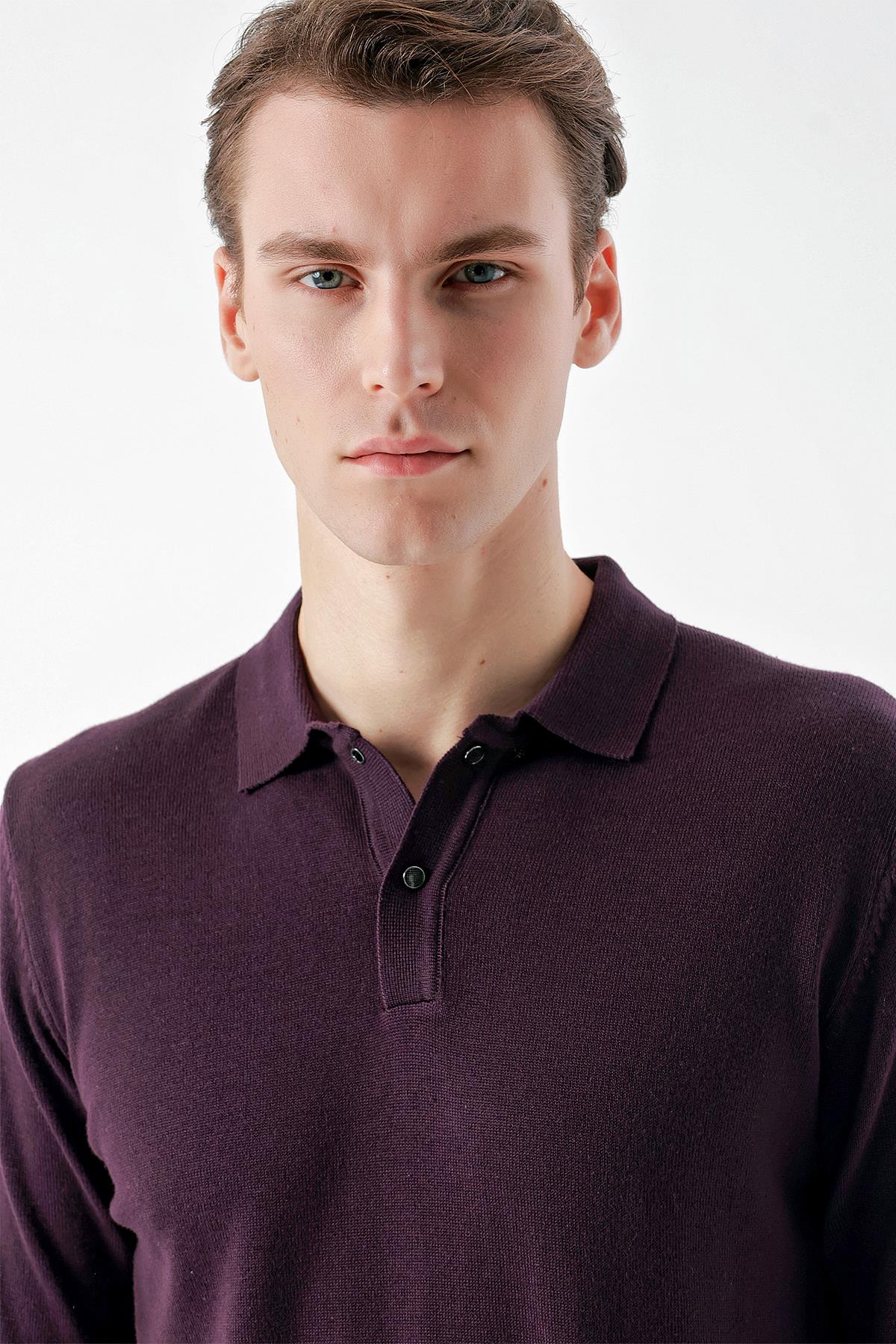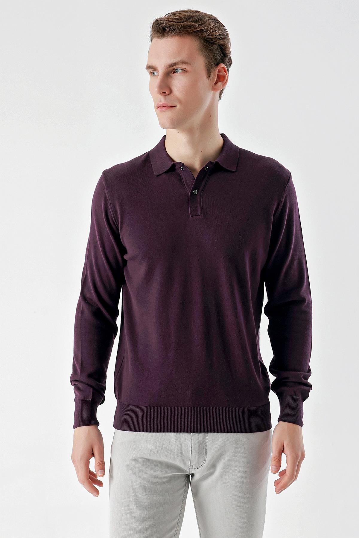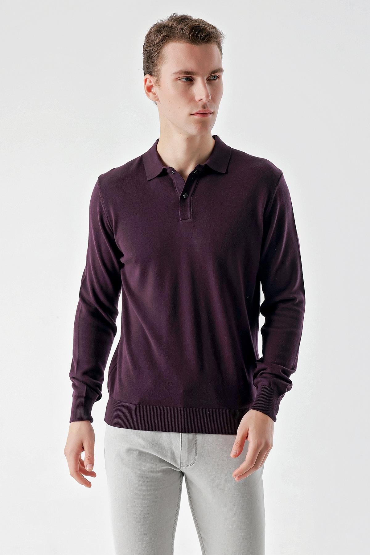 Mor Basic Dinamik Fit Rahat Kesim Polo Yaka HEDİYE KUTULU Triko Kazak (99KC017011309)