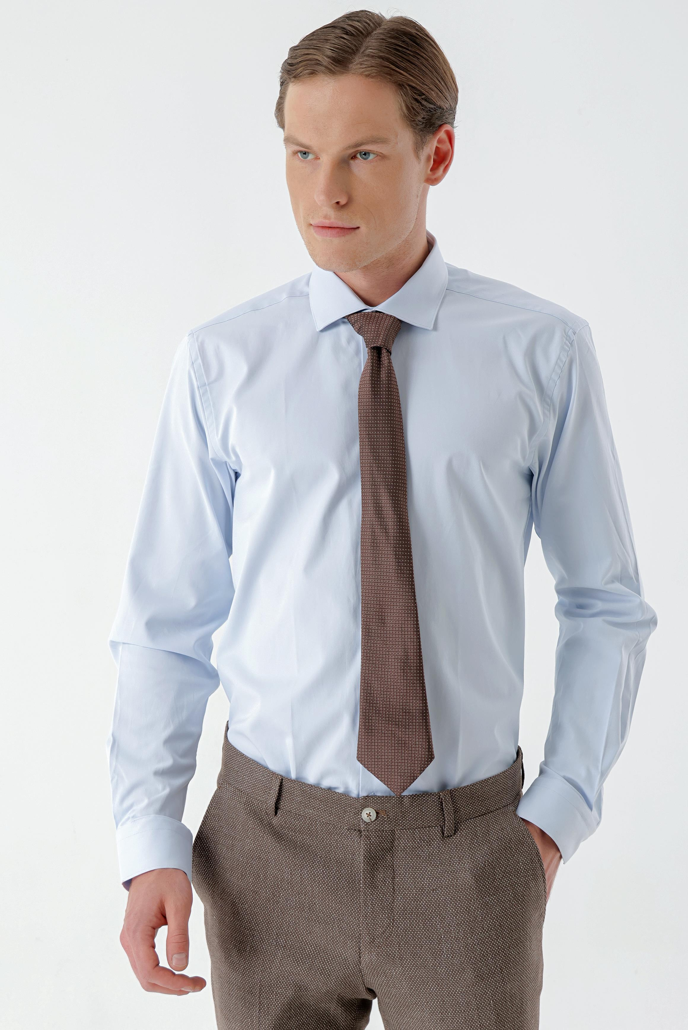 Morven Erkek A. MAVİ Basic Düz Desen İtalyan Yaka Slim Fit Gömlek