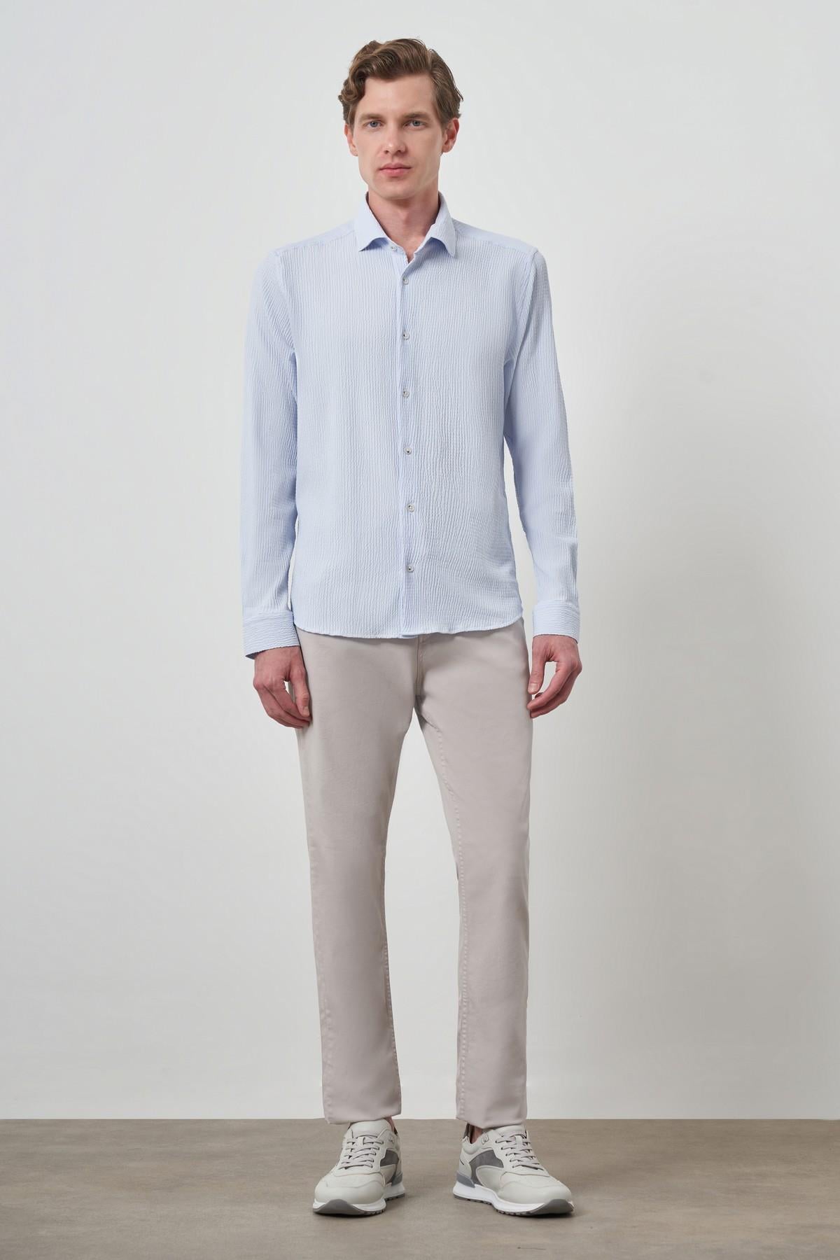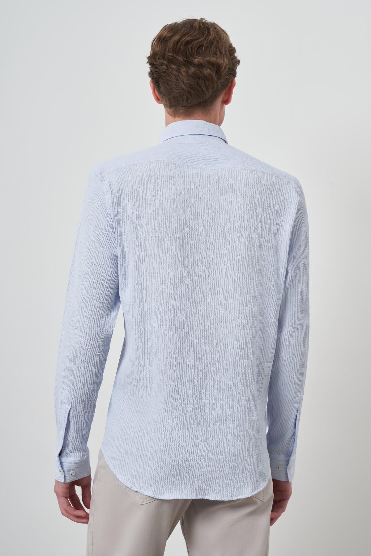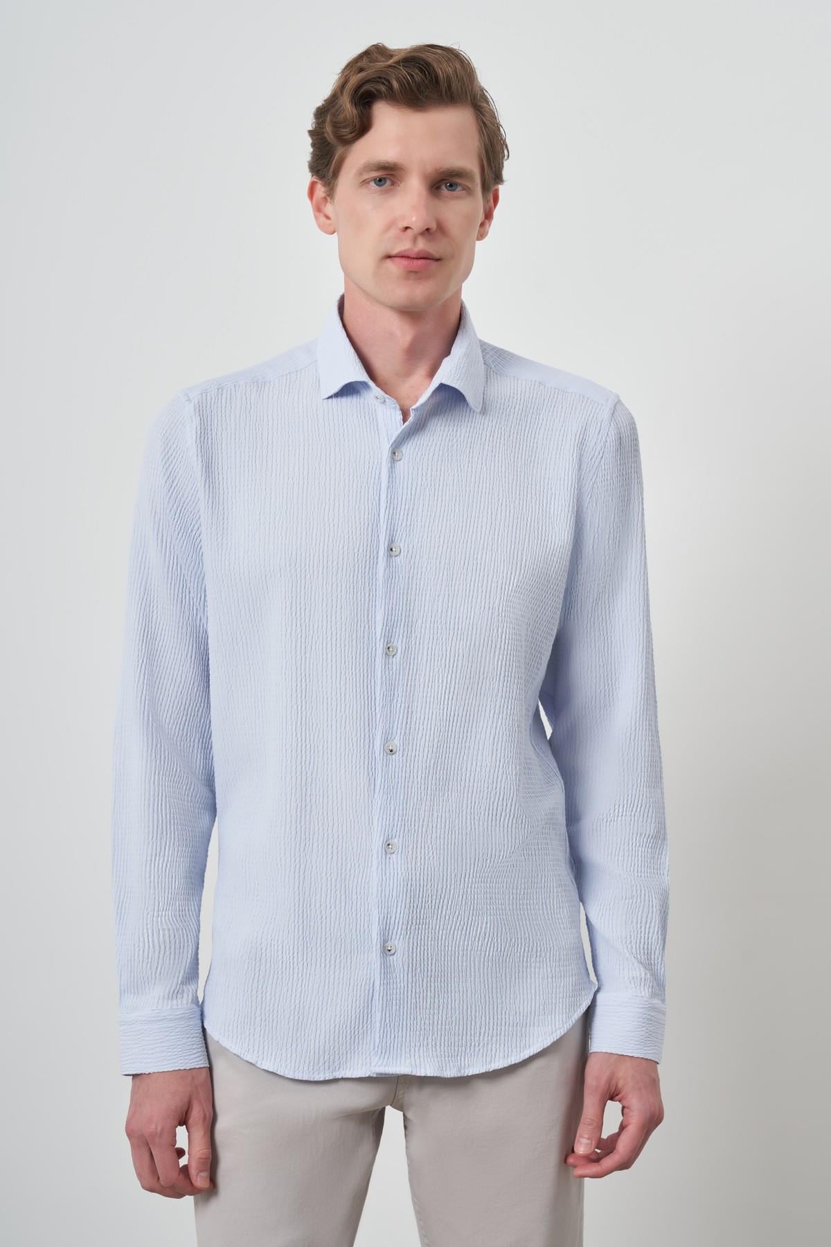 Morven Erkek A. MAVİ Gofre Trend Desenli Dynamic Fit İtalyan Yaka Gömlek (25MS004023311)