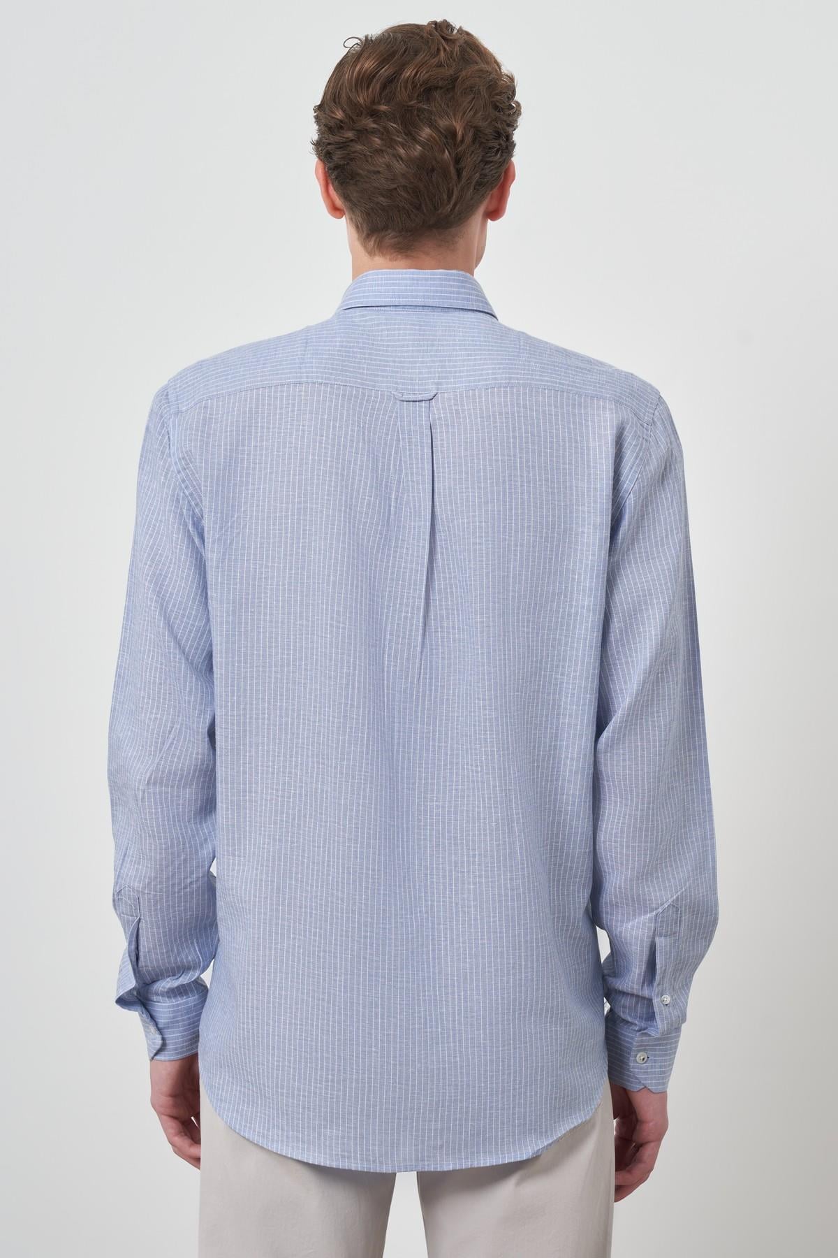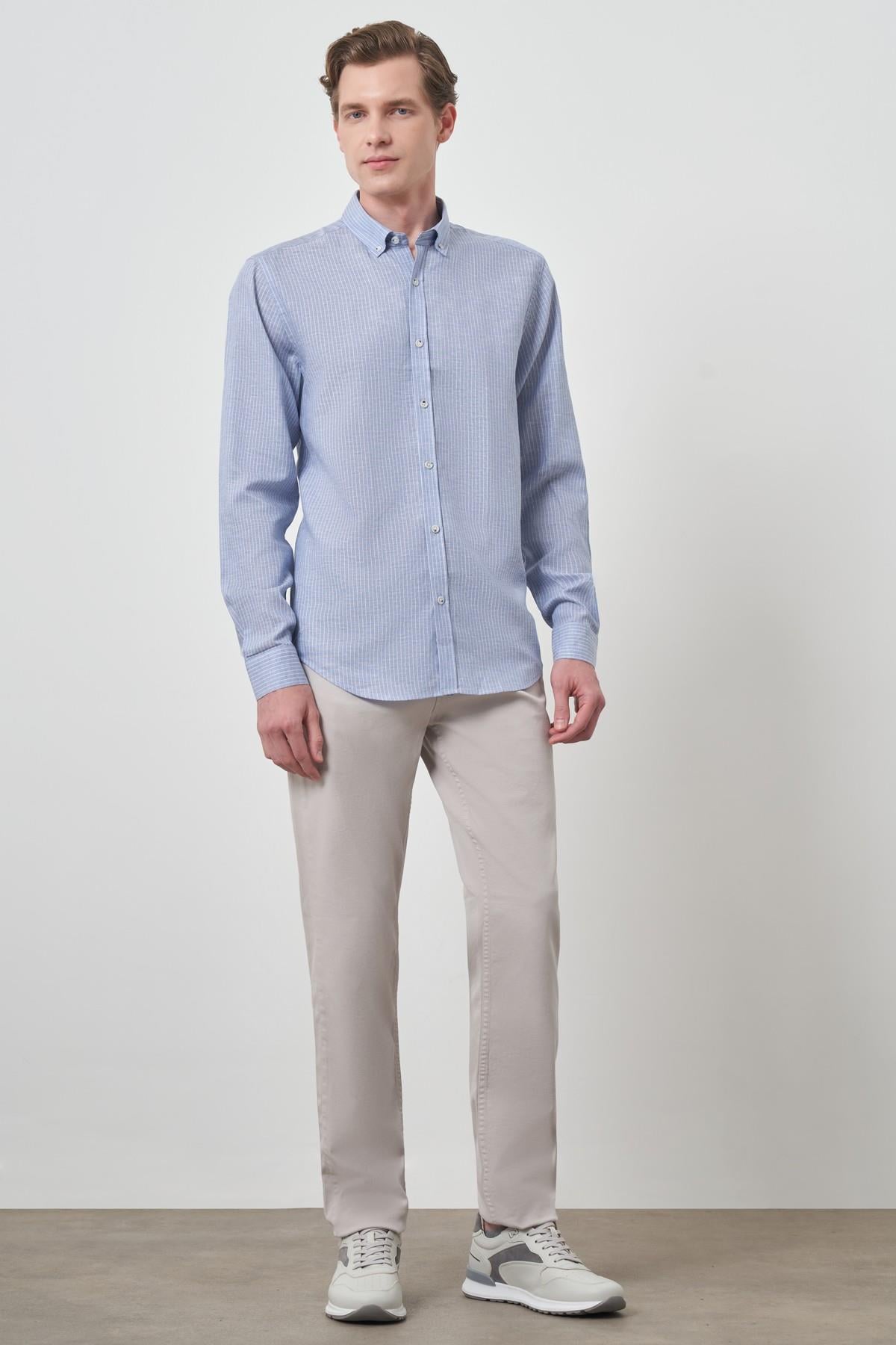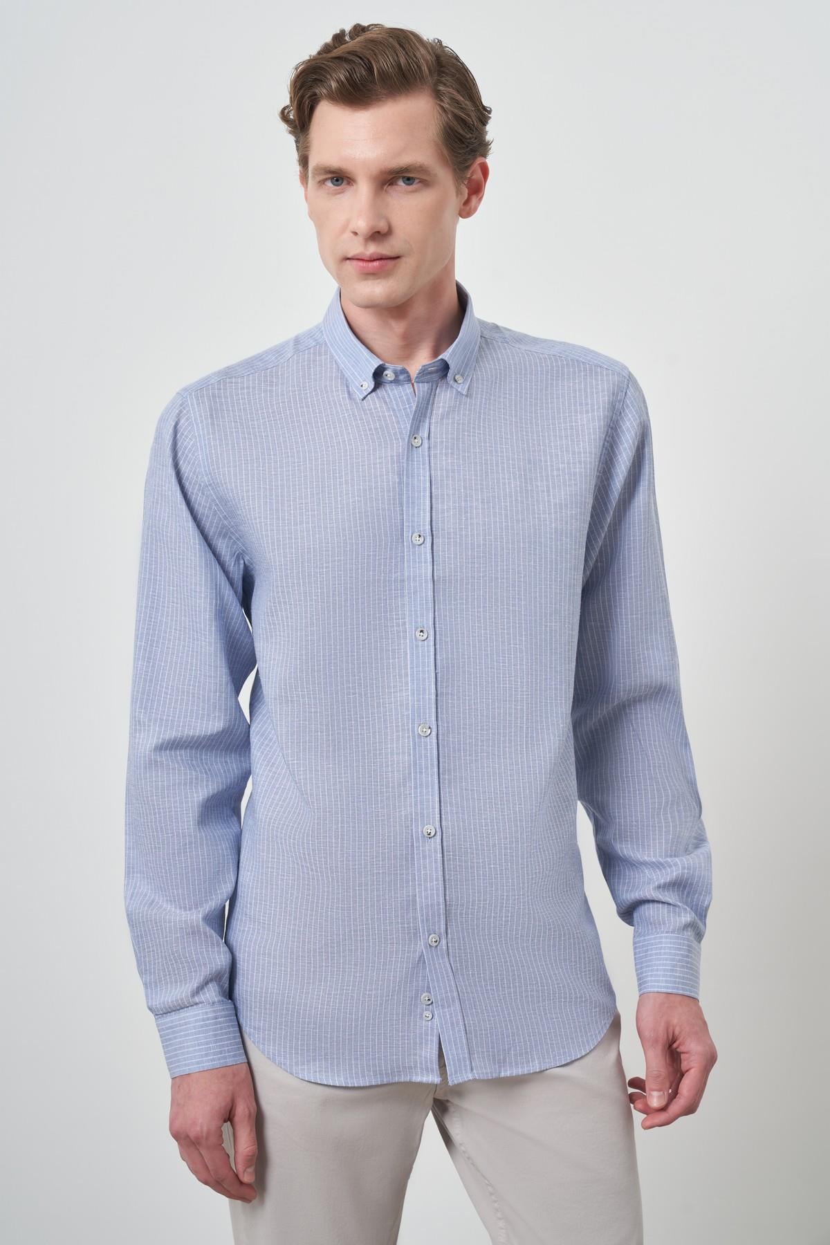 Morven Erkek A. MAVİ Keten Dynamic Fit Düğmeli Yaka Gömlek (25YS004017311)