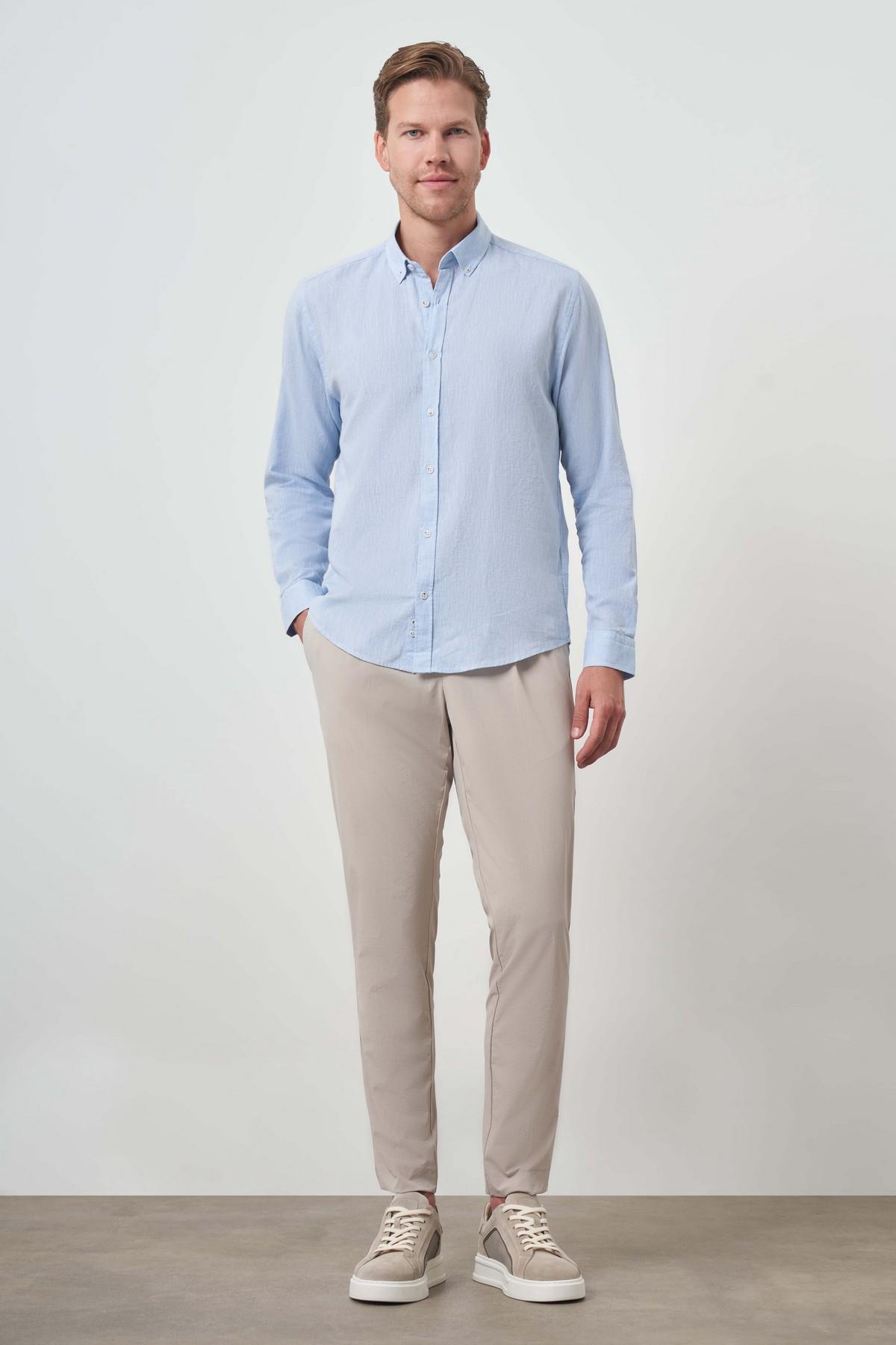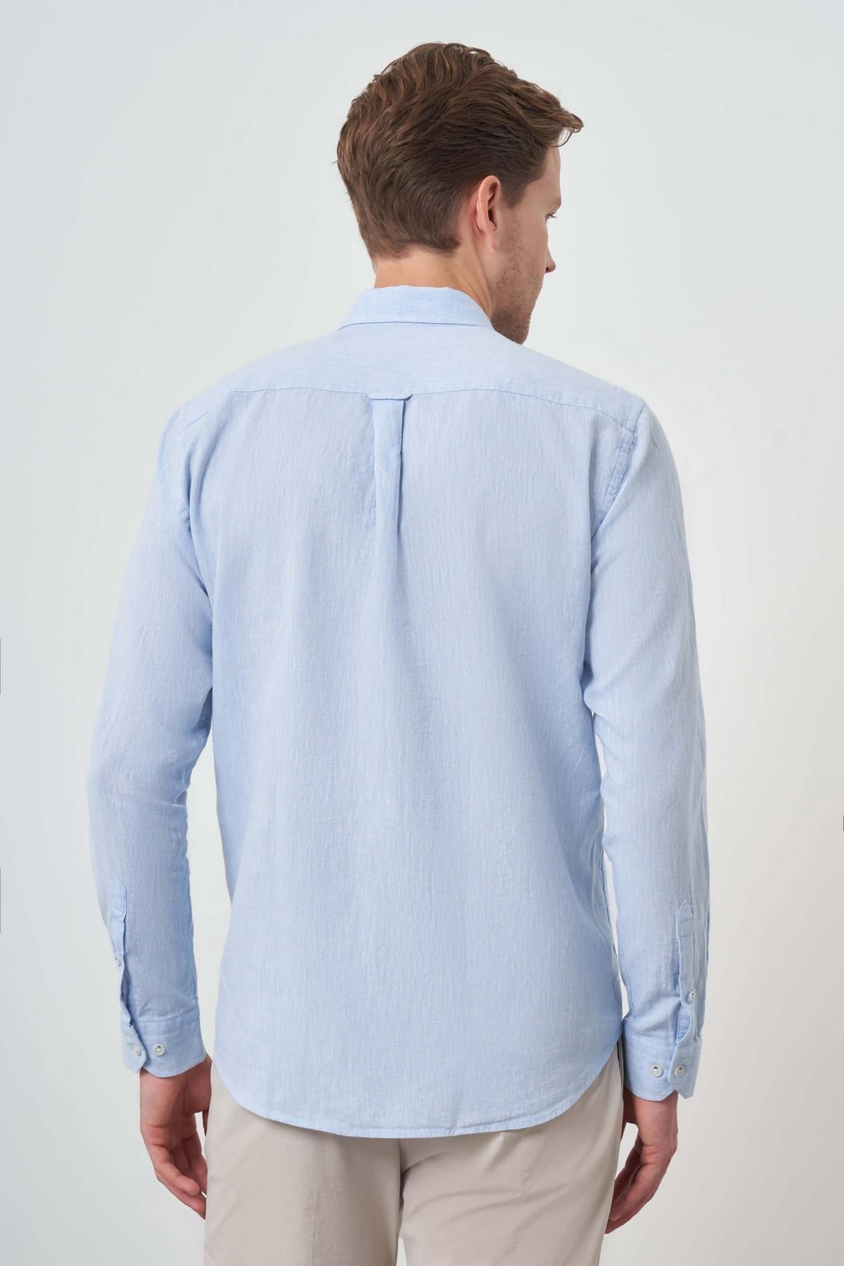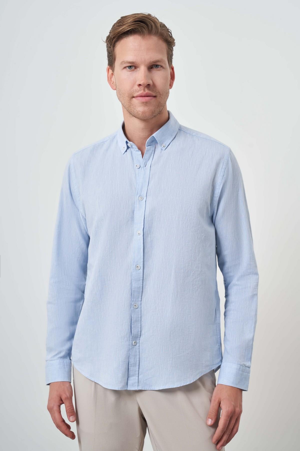 Morven Erkek A. MAVİ Keten Trend Dynamic Fit Düğmeli Yaka Gömlek (25YS004018311)