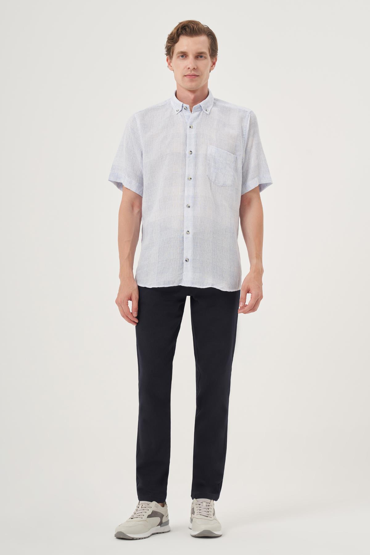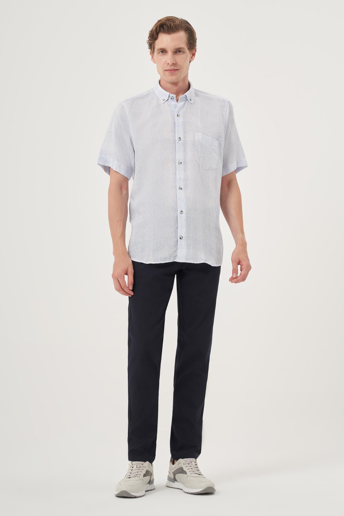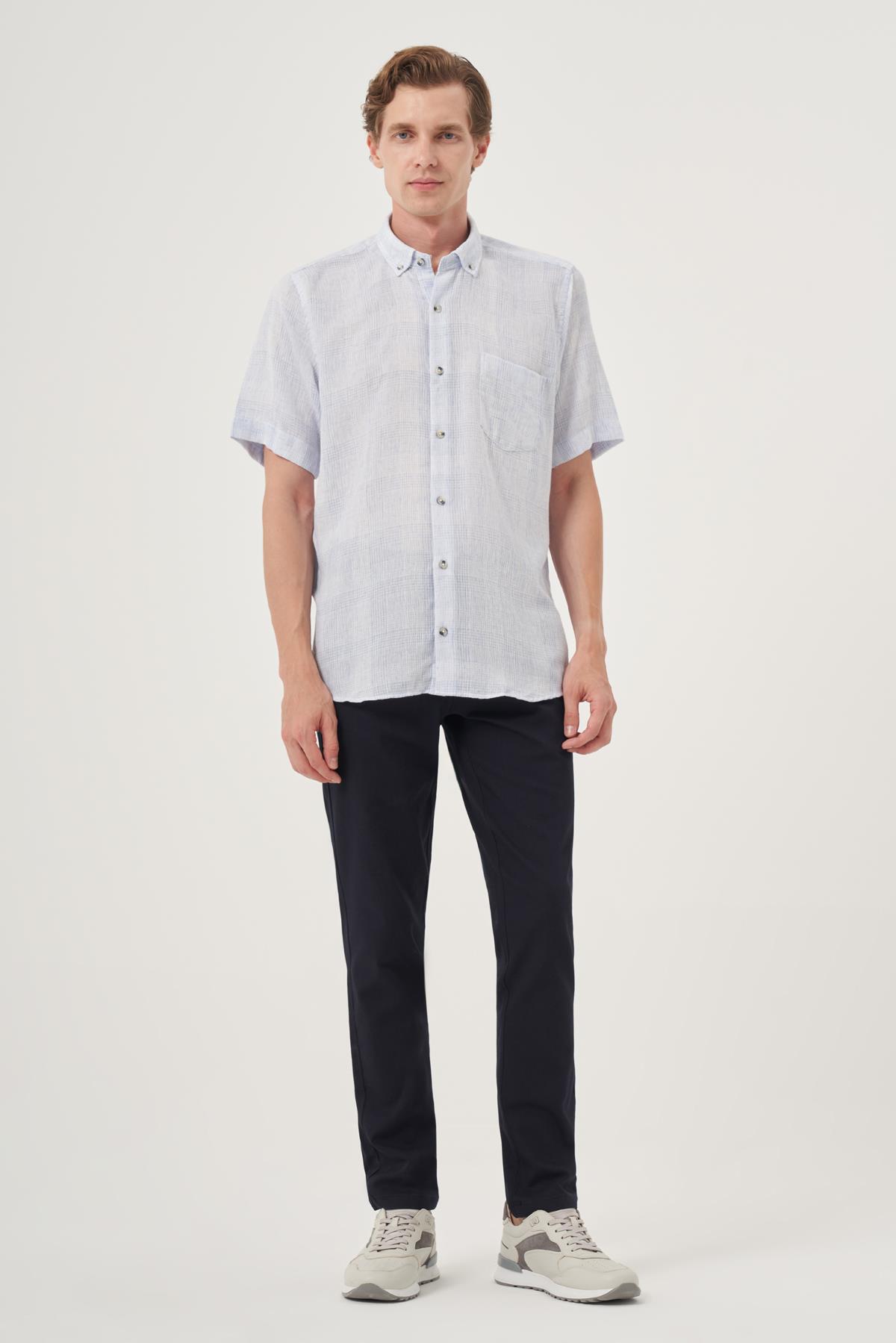 Morven Erkek A. MAVİ Keten Trend Regular Fit Düğmeli Yaka Kısa Kol Gömlek (25YS004023311)