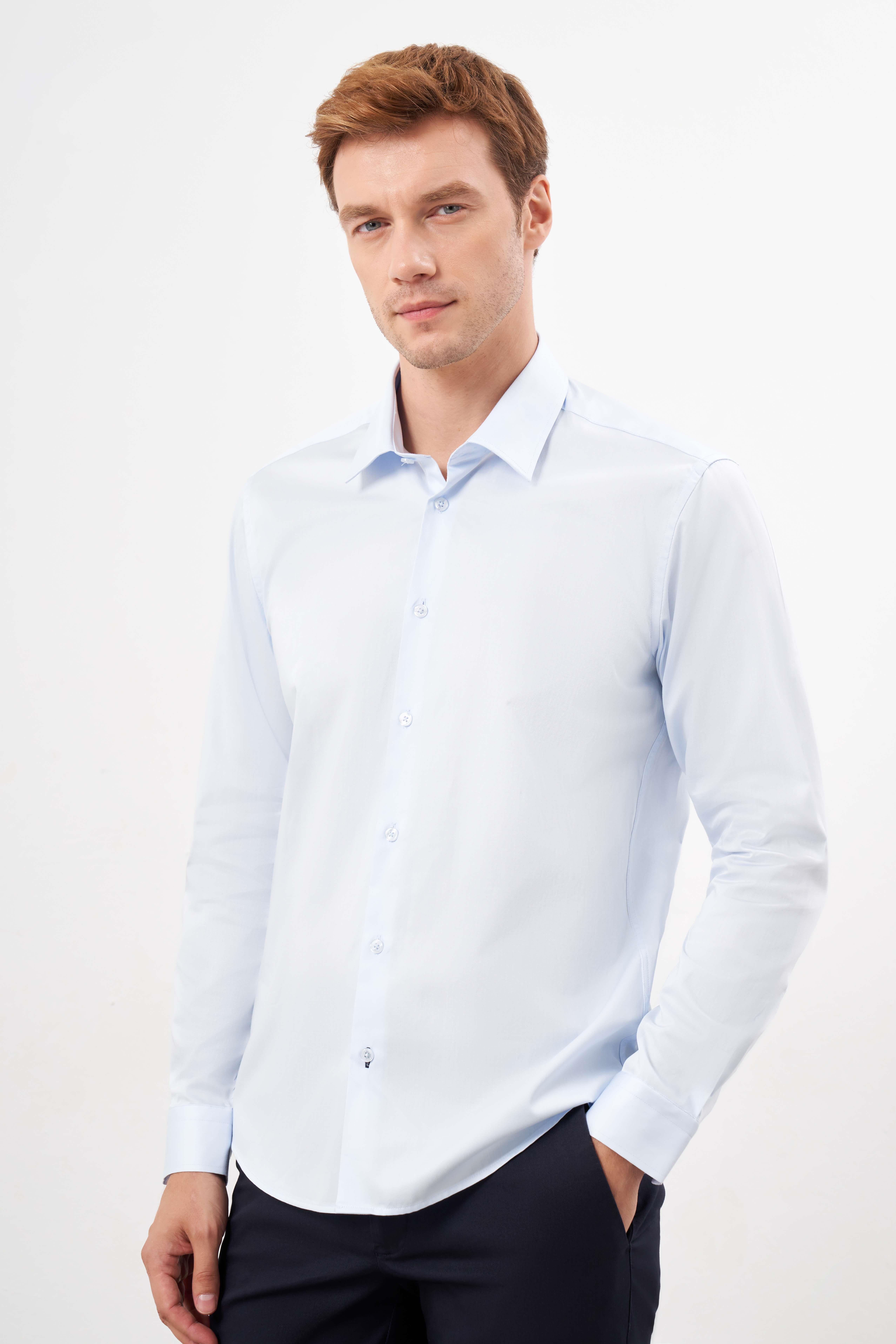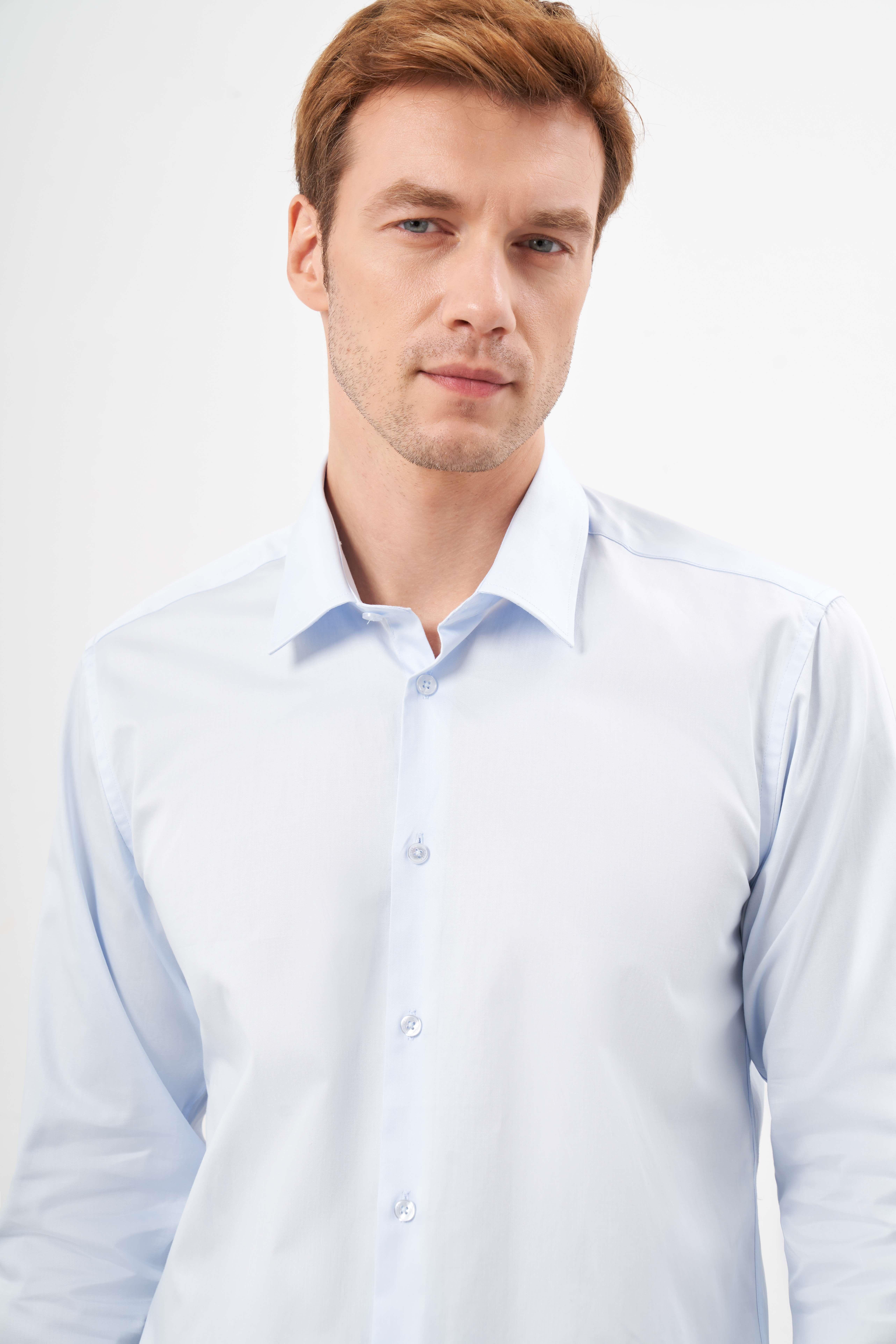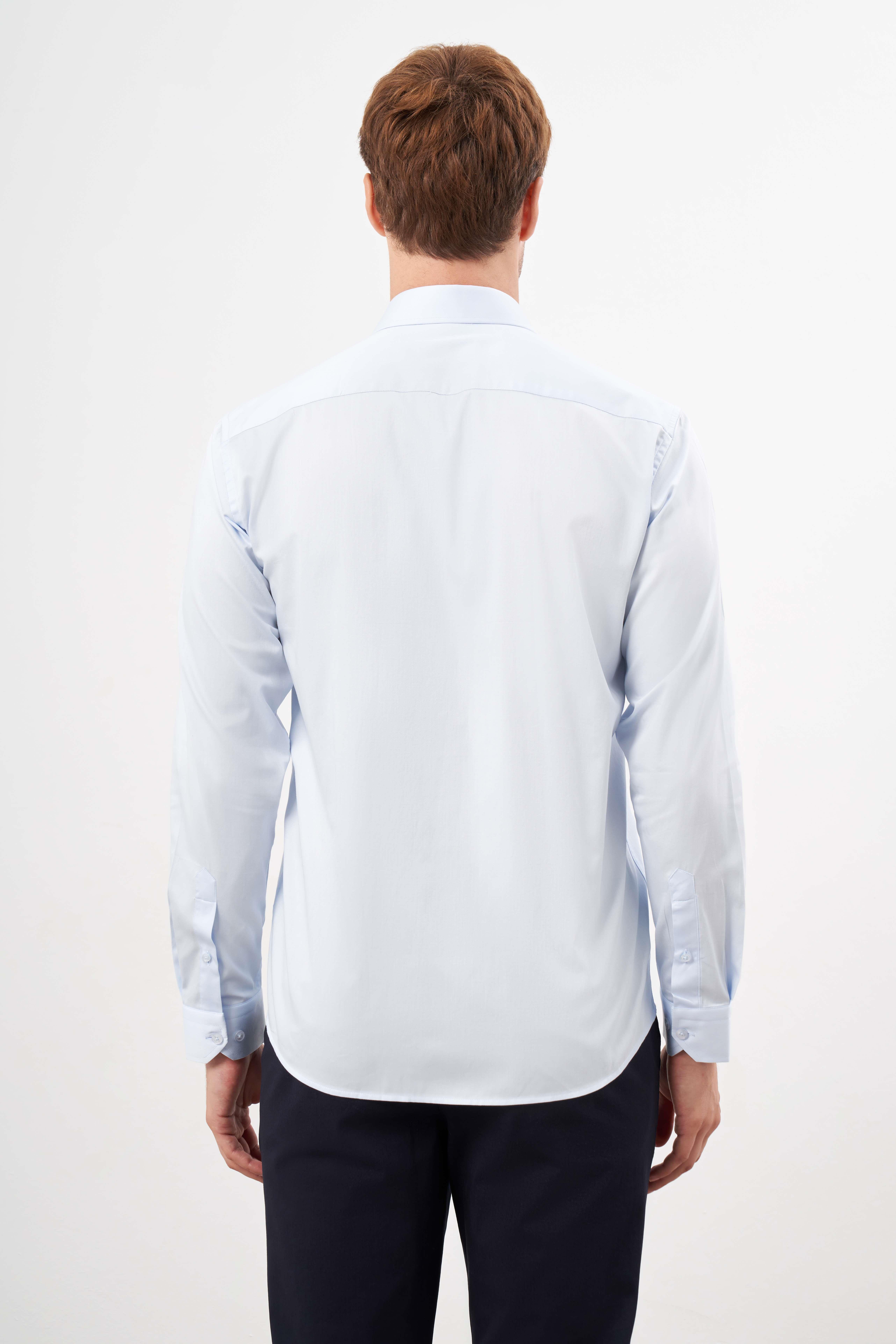 Morven Erkek A. MAVİ Pamuk Düz Desen Sert Yaka Slim Fit Gömlek (24MC004123311)
