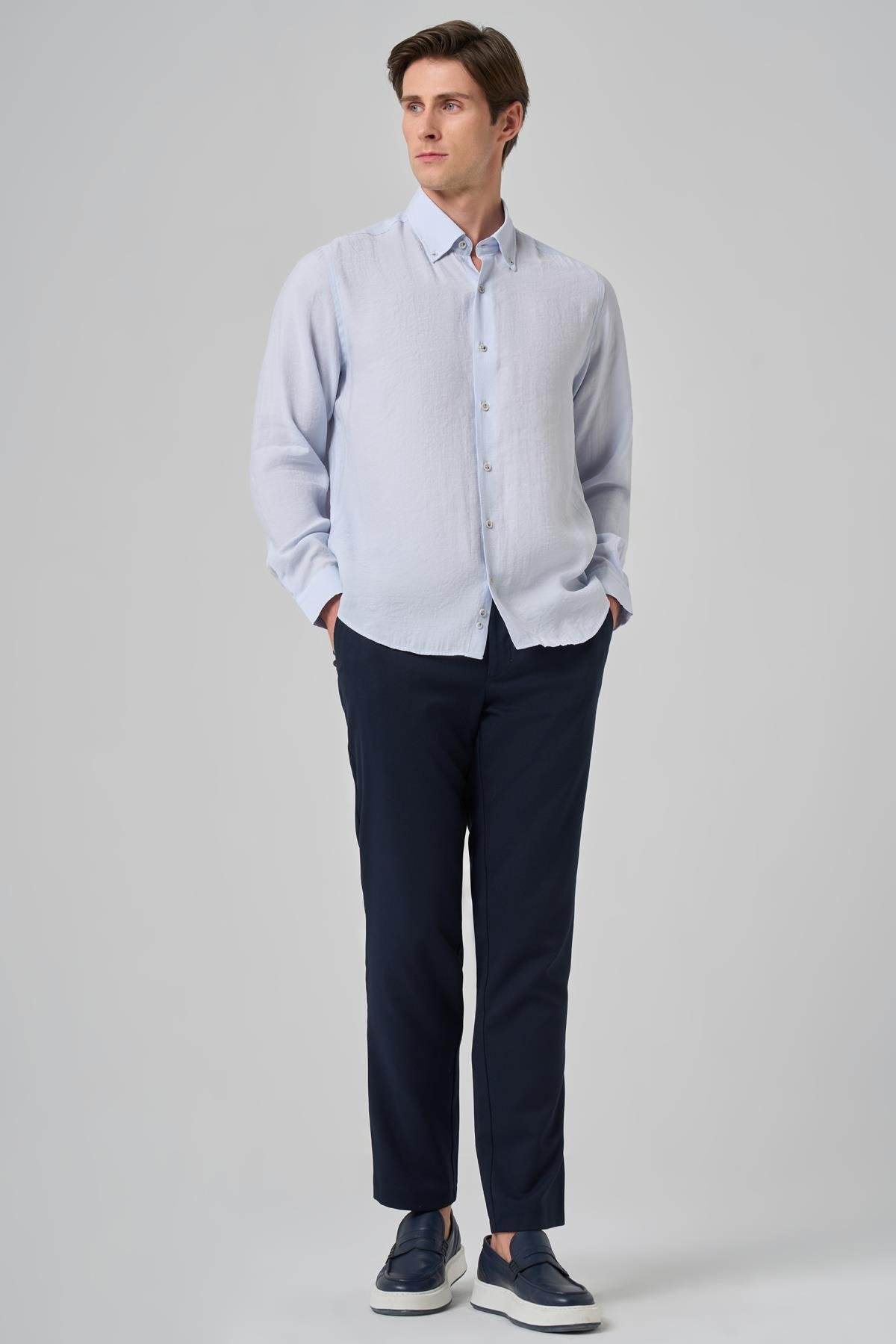 Morven Erkek A. MAVİ Dynamic Fit Düğmeli Yaka Modal Gömlek (25MS004030311)