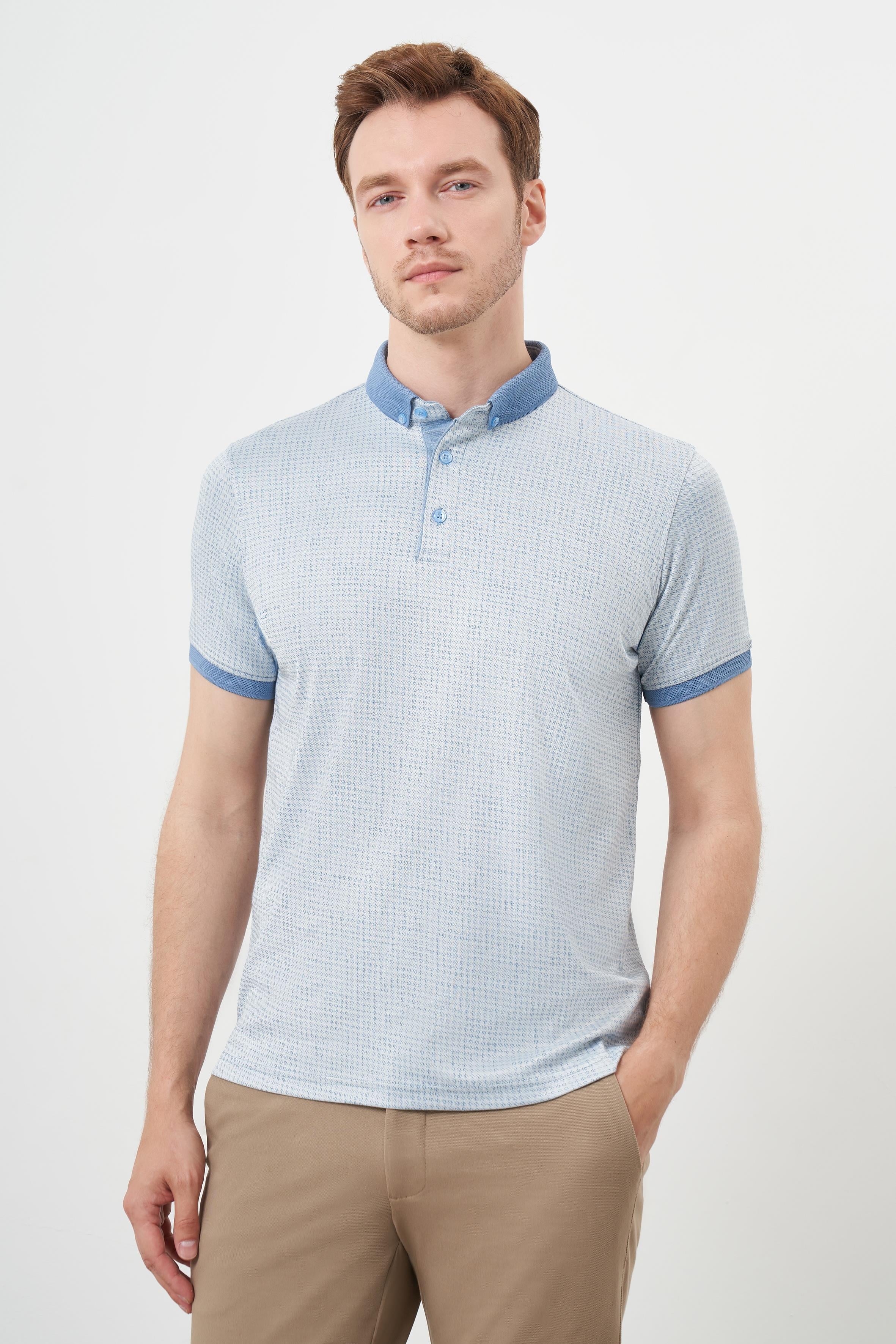 Morven Erkek A. MAVİ Trend Merserize Jakar Desen Düğmeli Yaka Dynamic Fit T-Shirt (24YS018014311)