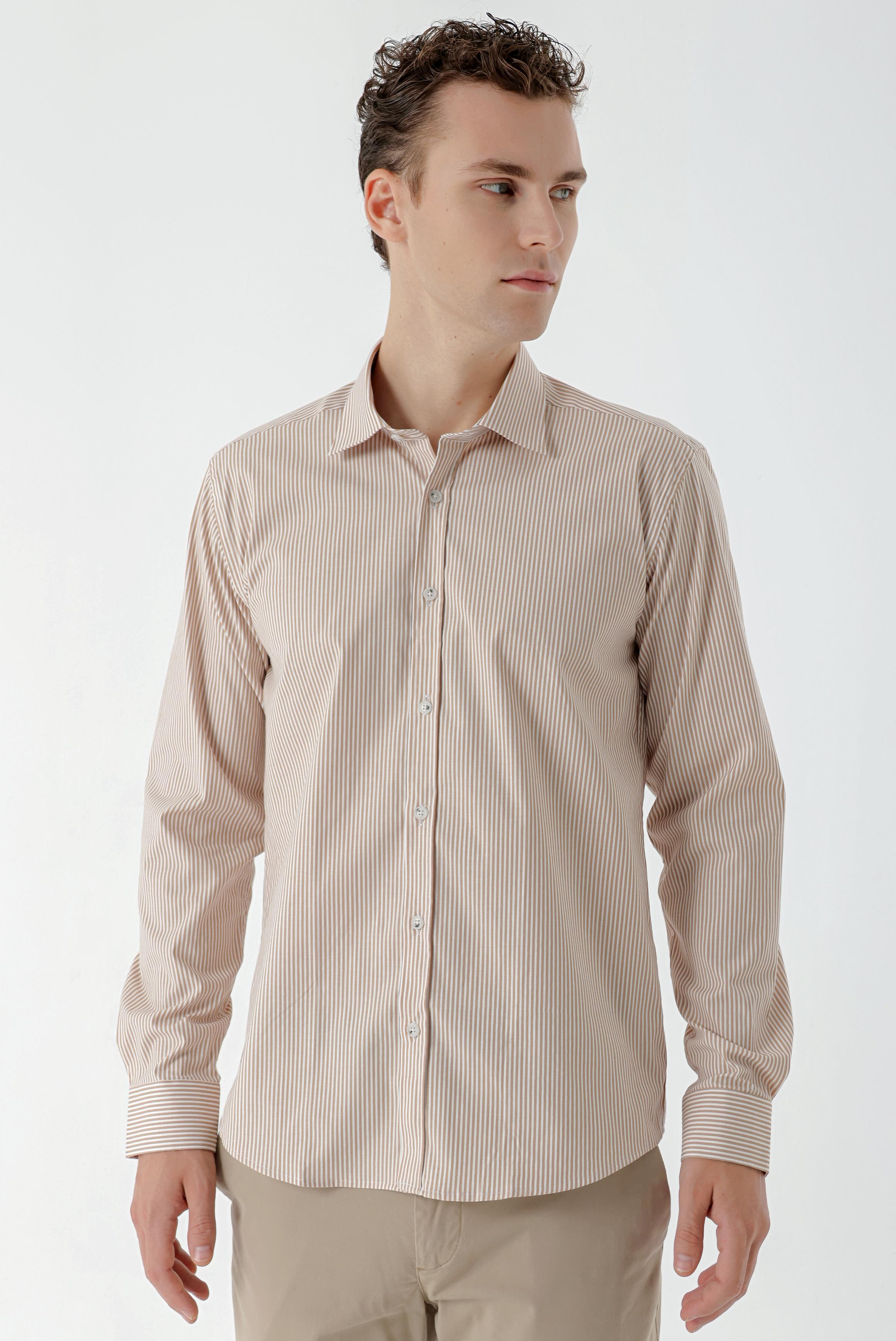 Morven Erkek AÇIK KAHVE Pamuk Micro Lycra Çizgili Slim Fit Gömlek (23MS004039405)
