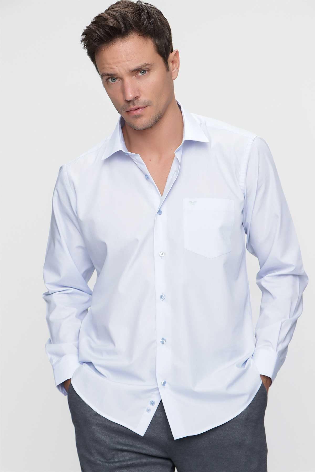 Morven Erkek Acık Mavi Regular Fit Rahat Kesim Düz Sert Yaka Uzun Kollu Gömlek