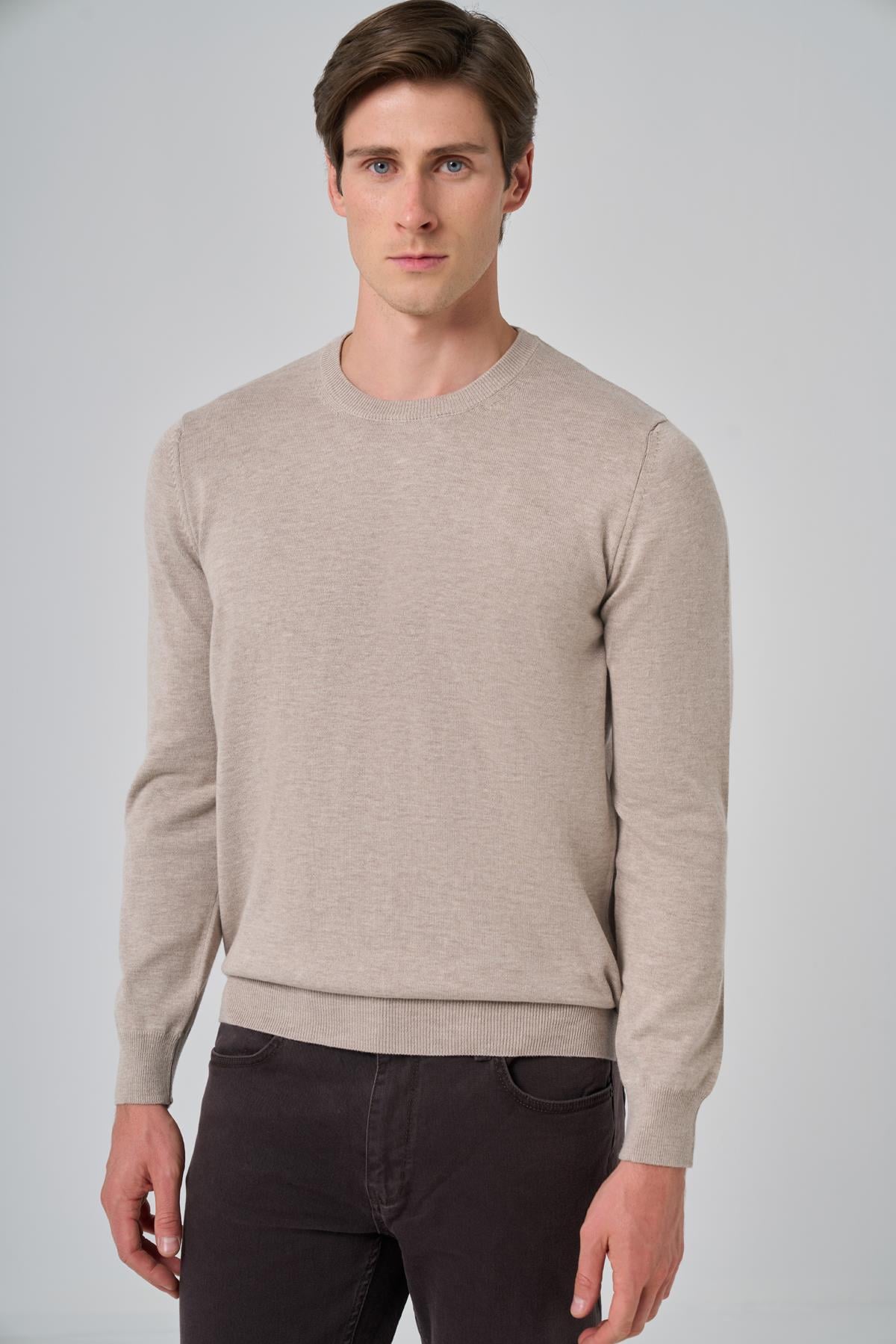 Morven Erkek Bej Basic Bisiklet Yaka Dynamic Fit Rahat Kesim Triko (26KC017006653)