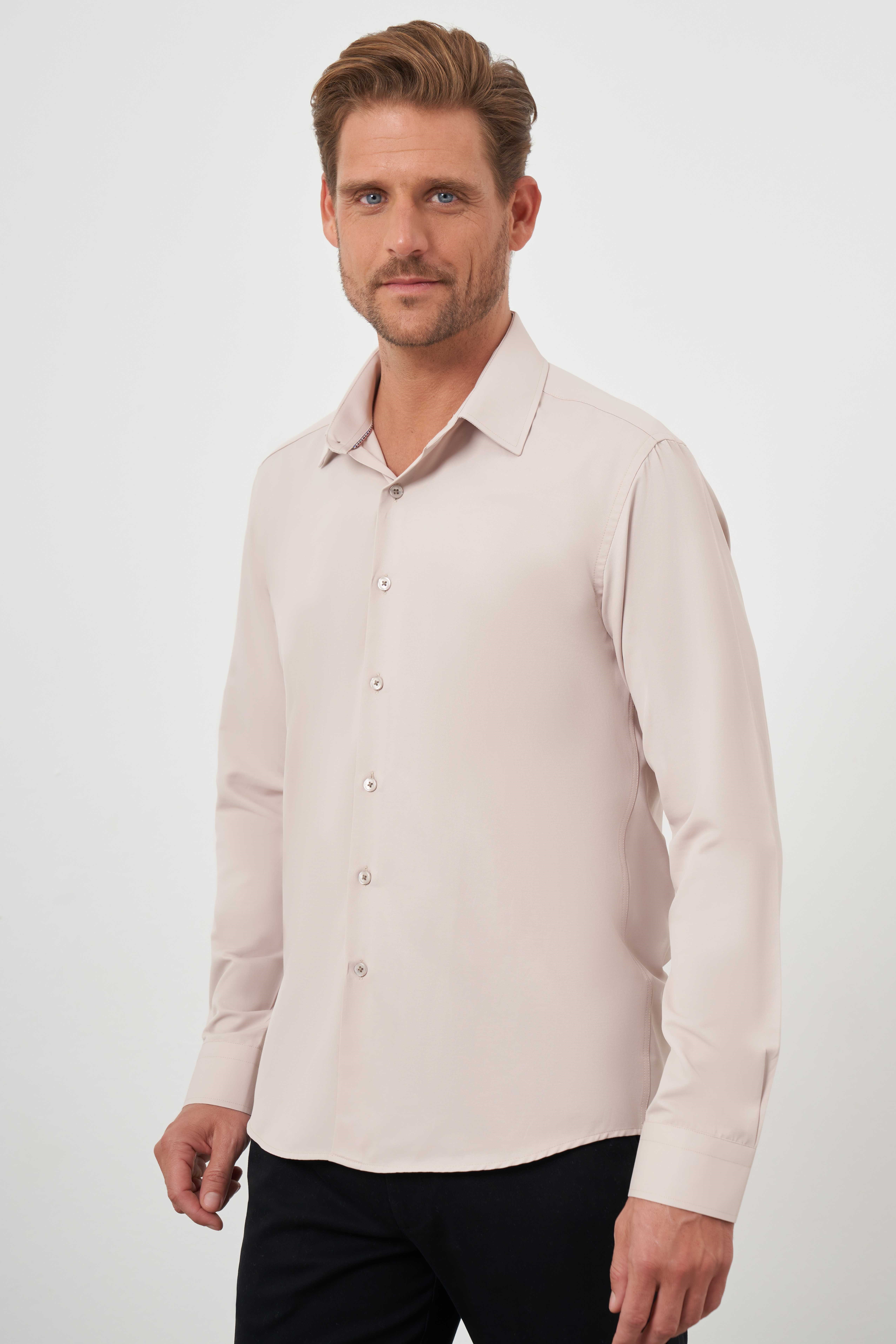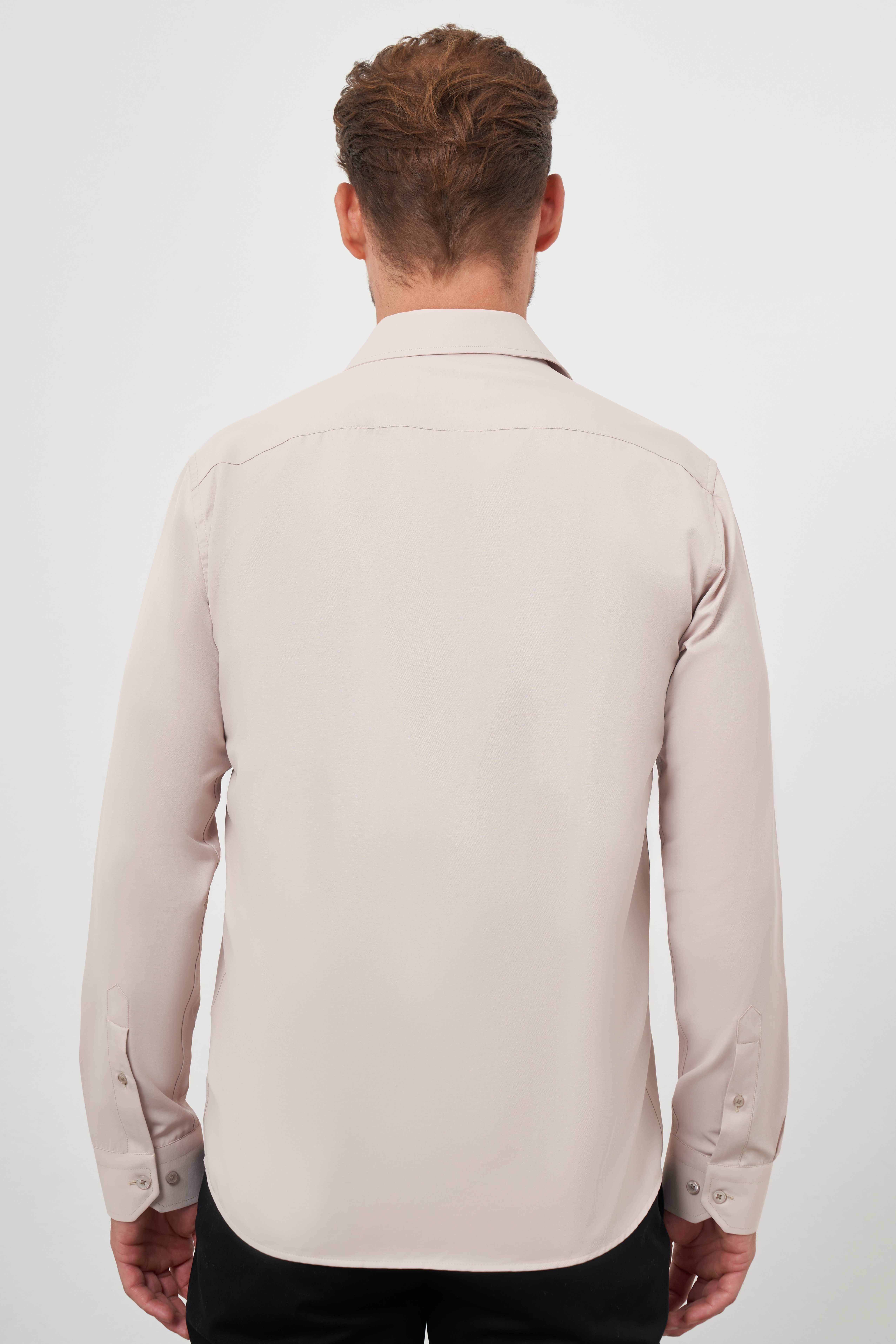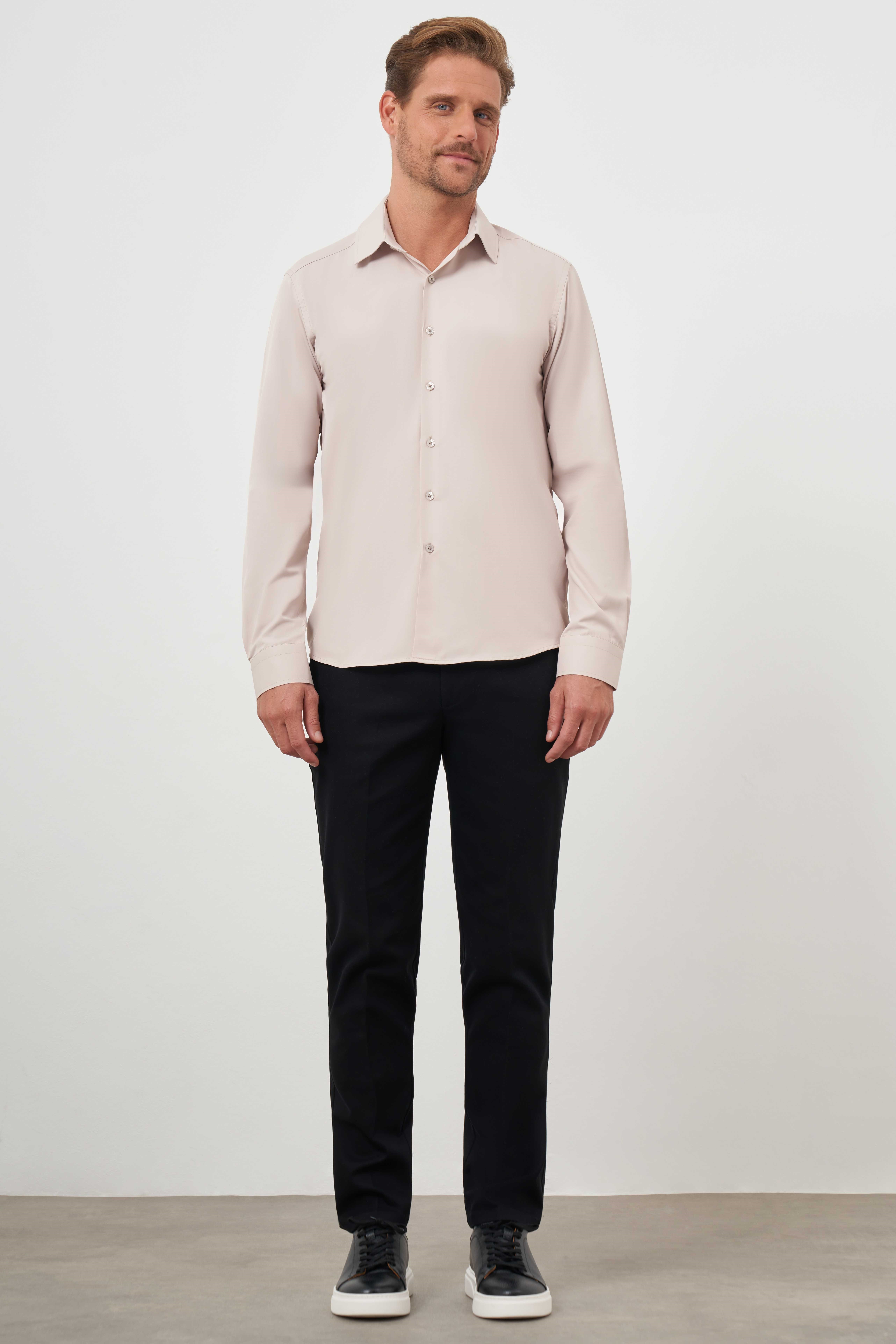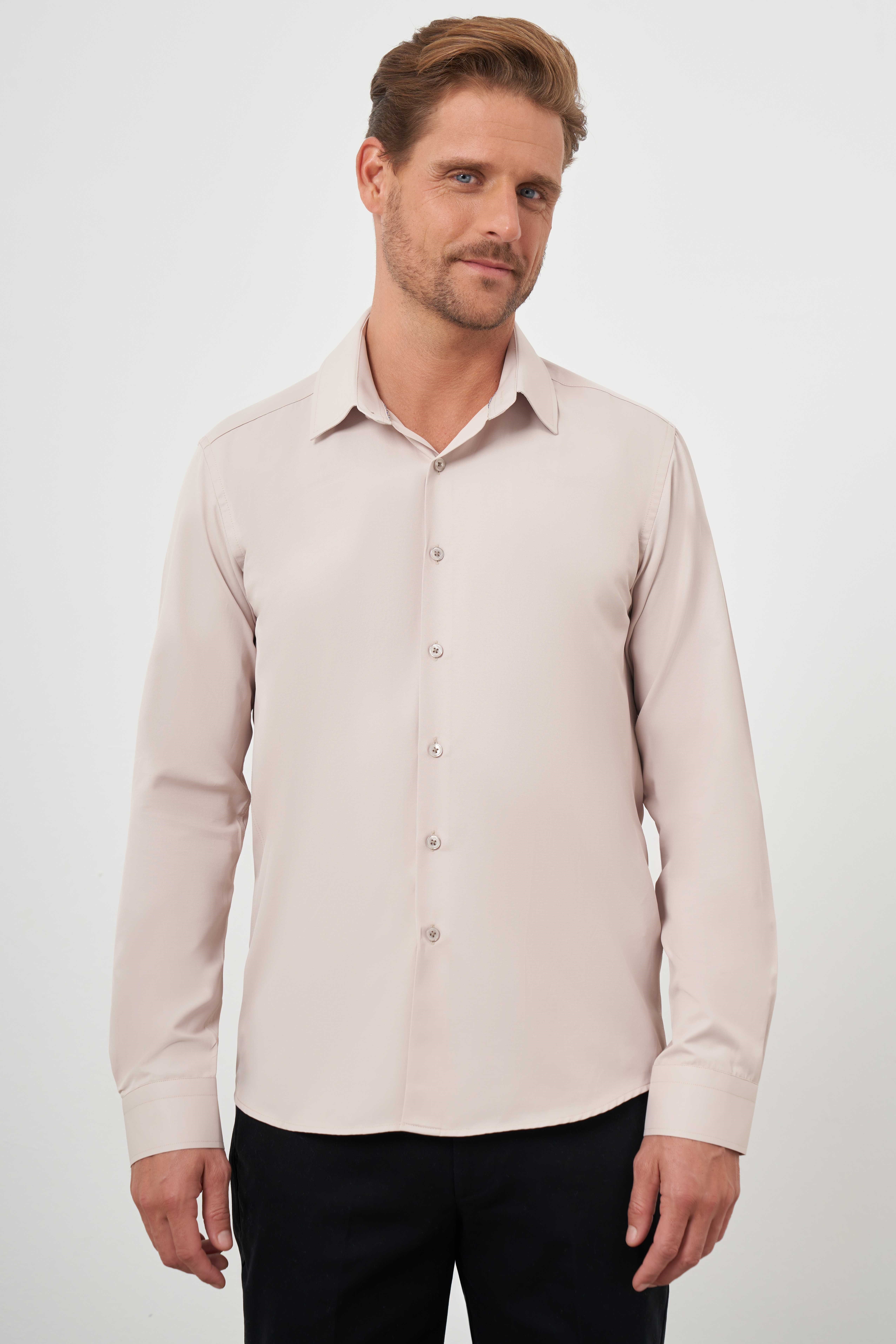 Morven Erkek Bej Basic Düz Desen Sert Yaka Slim Fit Gömlek (24MC004093653)