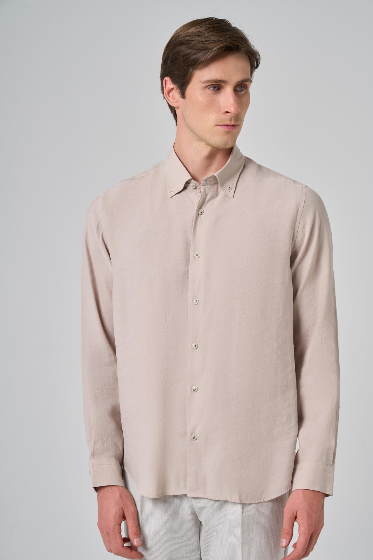 Morven Erkek Bej Dynamic Fit Düğmeli Yaka Modal Gömlek (25MS004030653)