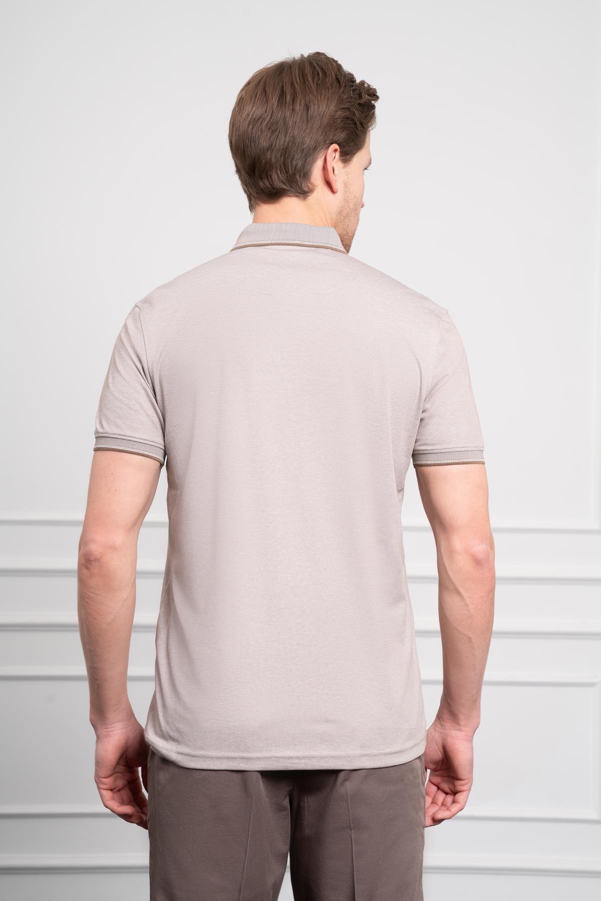 Morven Erkek Bej Trend Merserize Düz Düğmeli Yaka Dynamic Fit T-Shirt (25YS018009653)