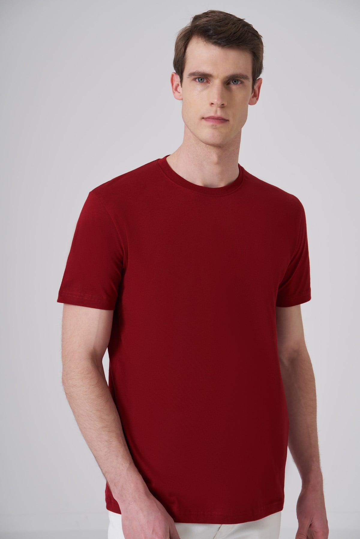 Morven Erkek Bordo Basic Bisiklet Yaka Dynamic Fit Pamuk T-Shirt (26YC018008750)