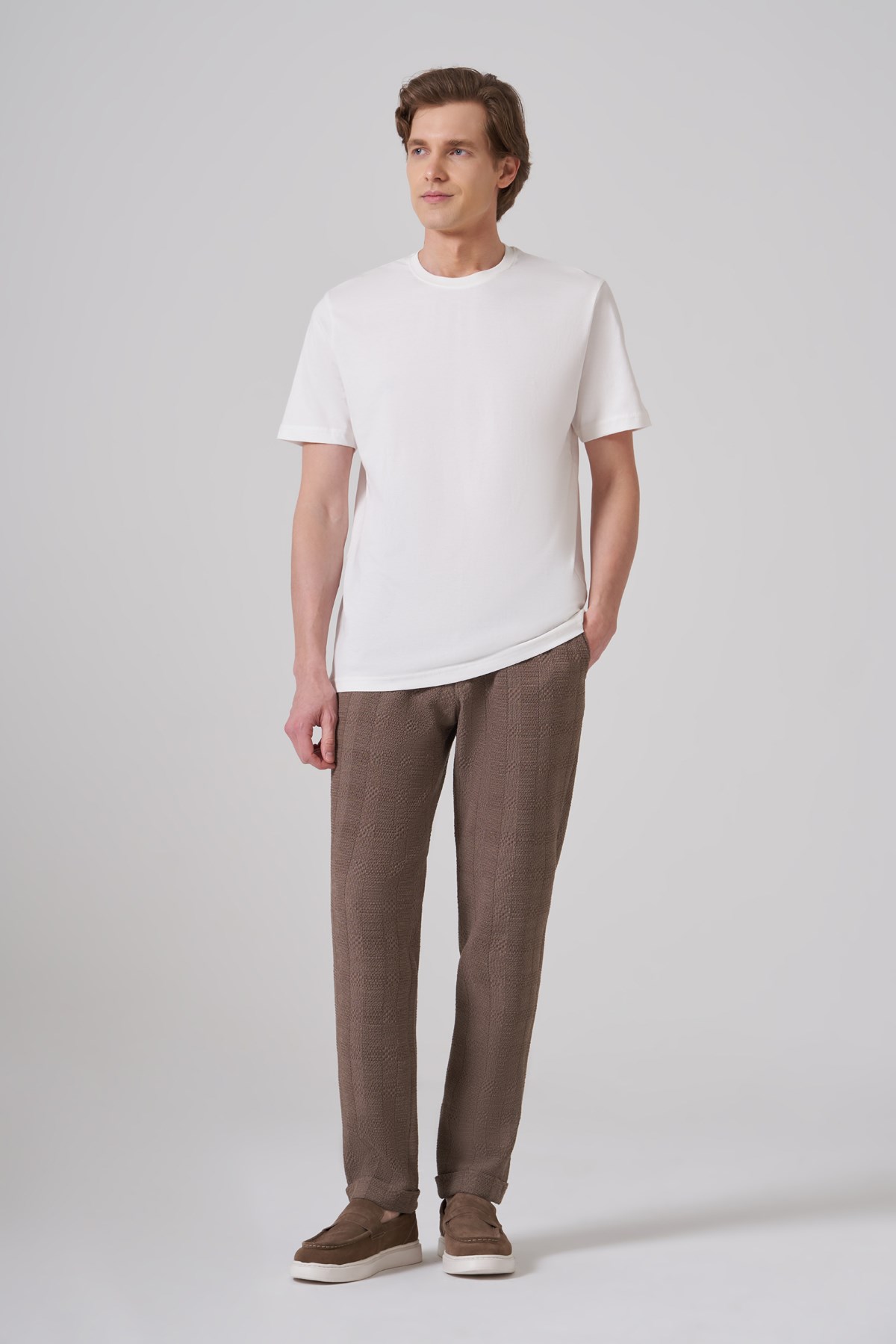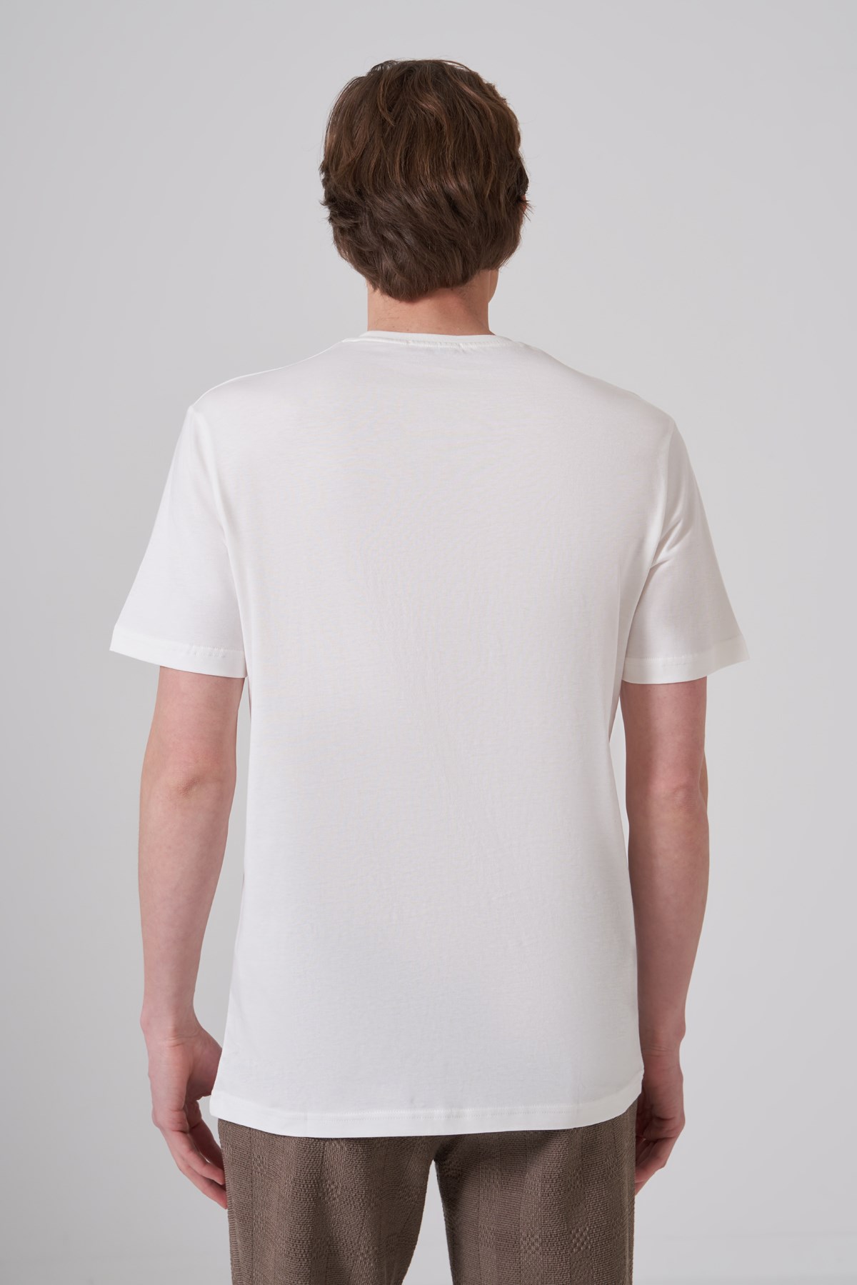Morven Erkek Ekru Basic Bisiklet Yaka Dynamic Fit Pamuk T-Shirt (26YC018008454)