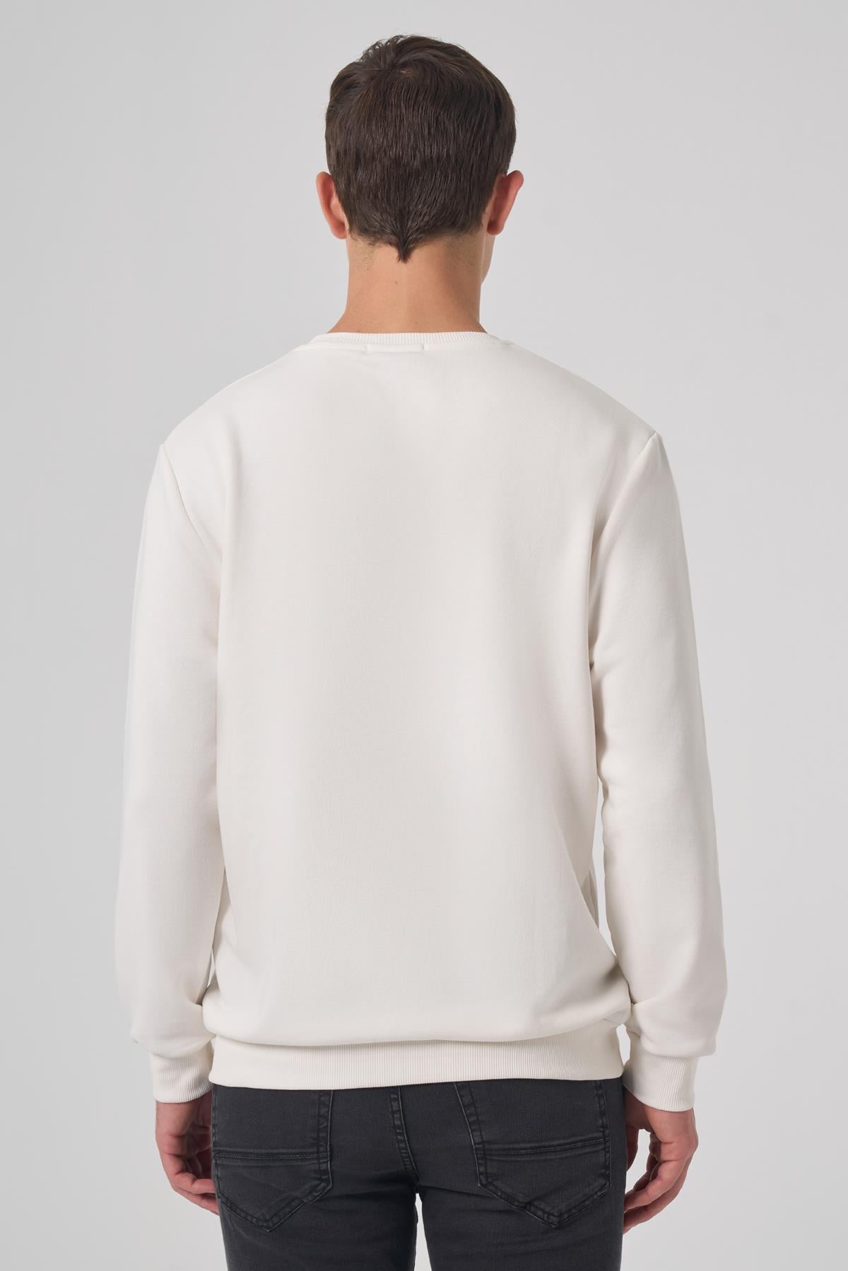 Morven Erkek Ekru Basic Bisiklet Yaka Sweatshirt (26KS063001454)