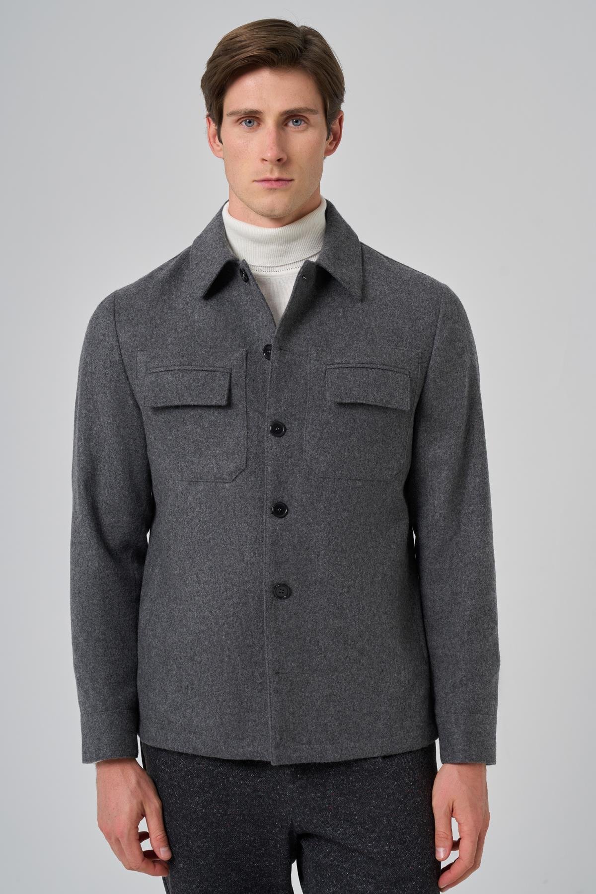 Morven Erkek Füme Yünlü Berberi Yaka Çift Kapak Cepli Gömlek Ceket
