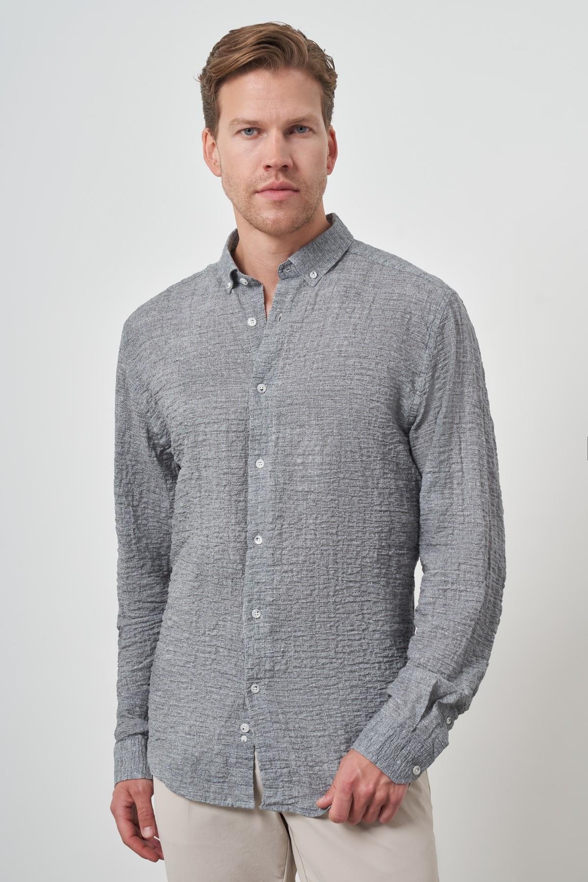 Morven Erkek Gri Pamuk Trend Slim Fit Düğmeli Yaka Gömlek