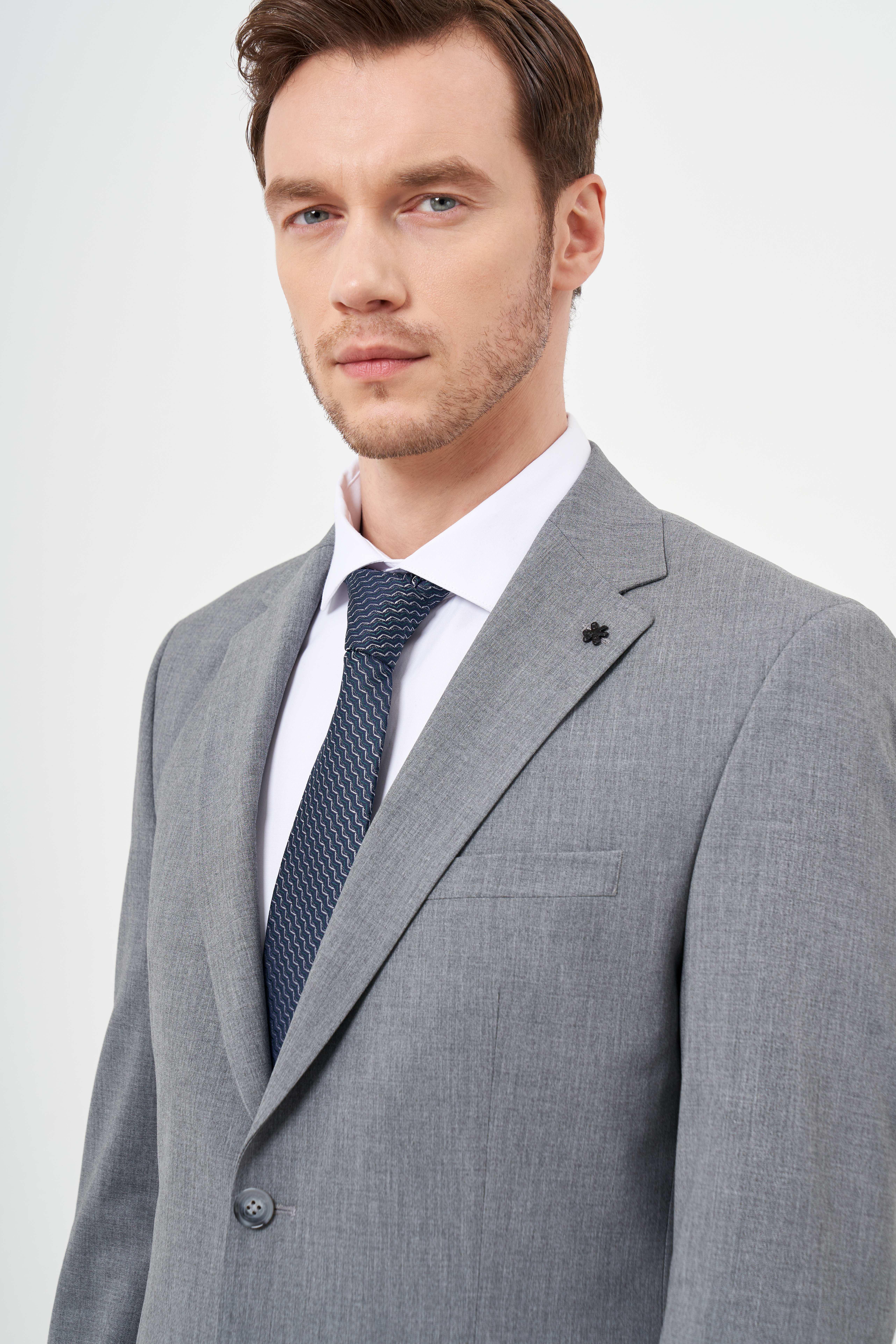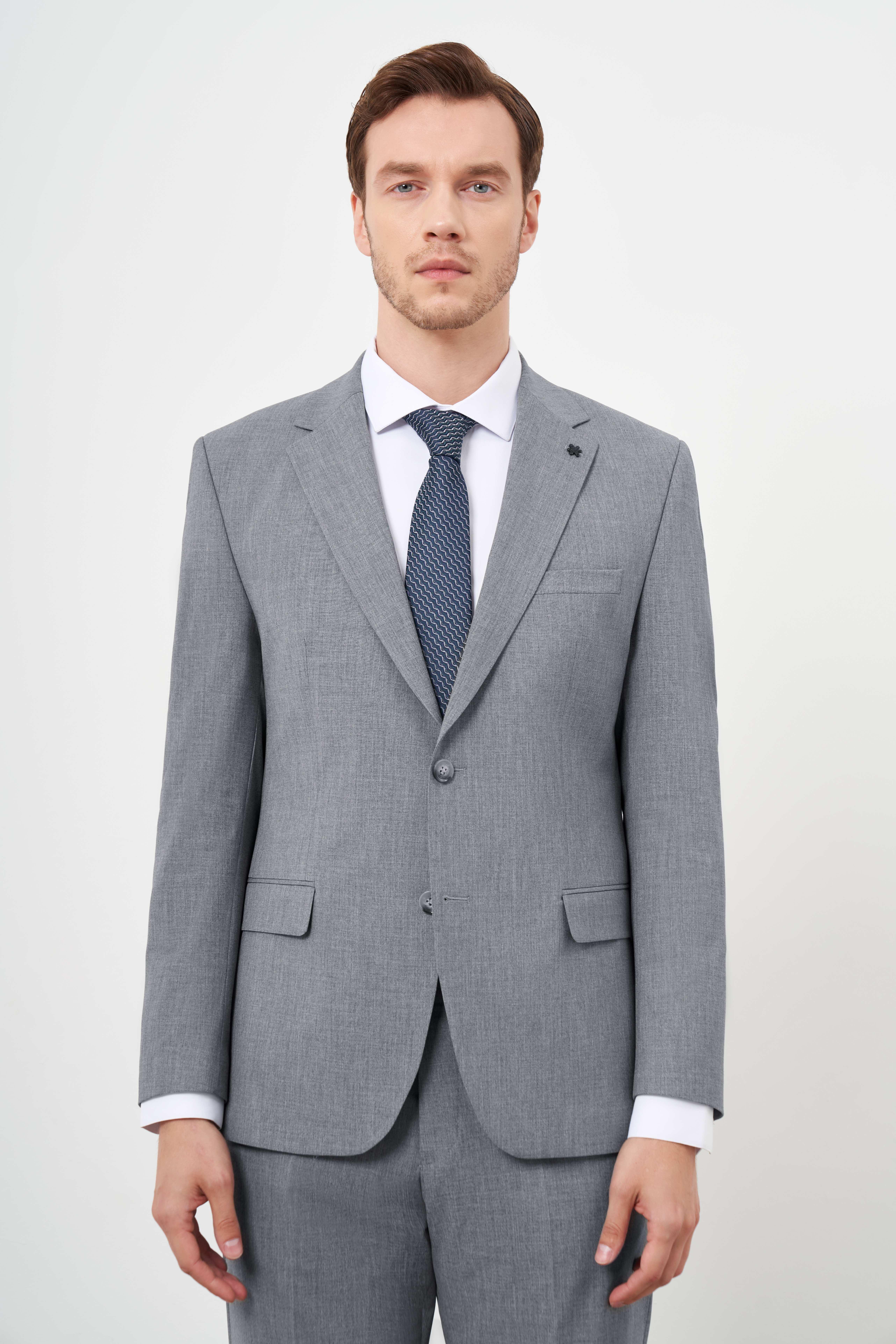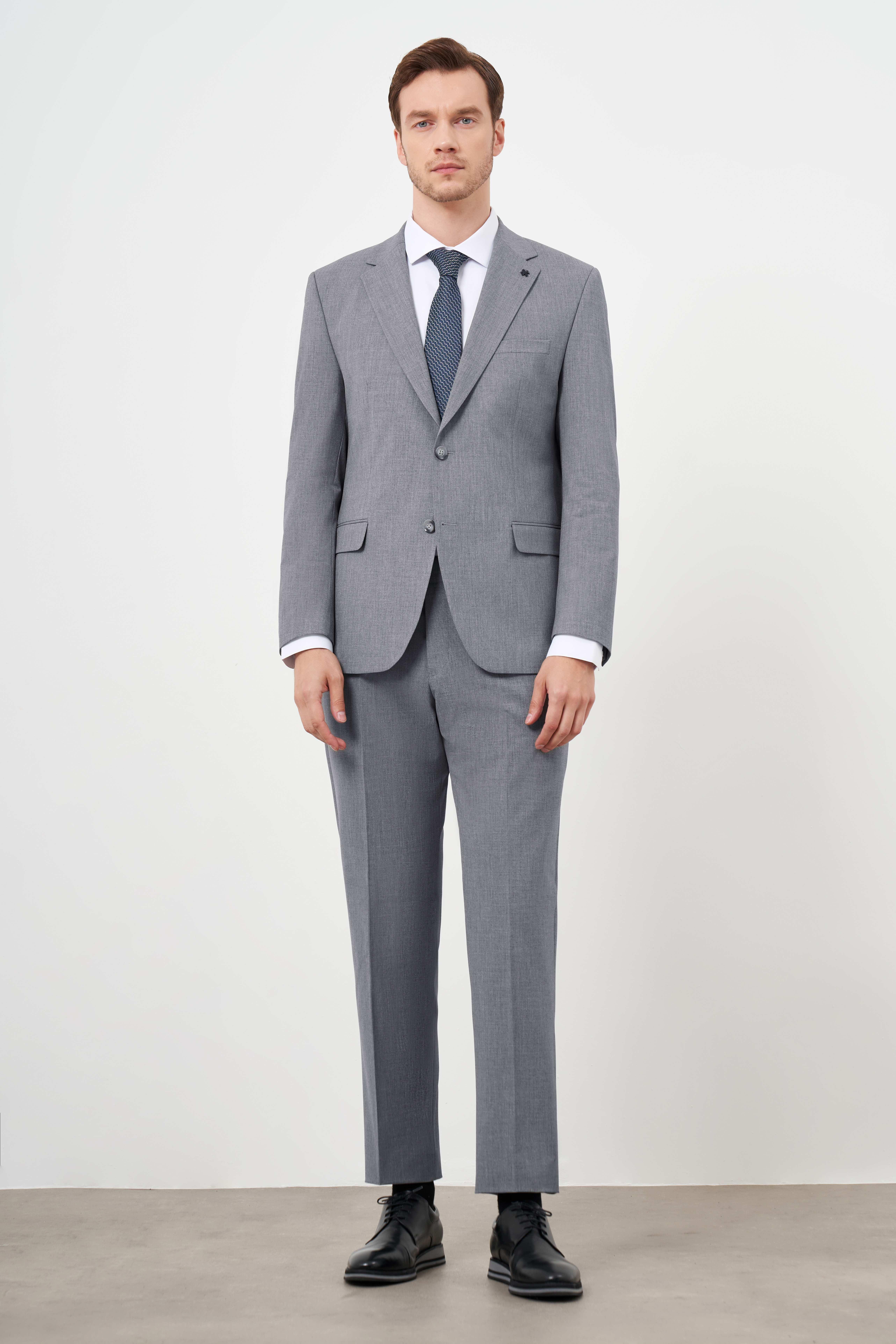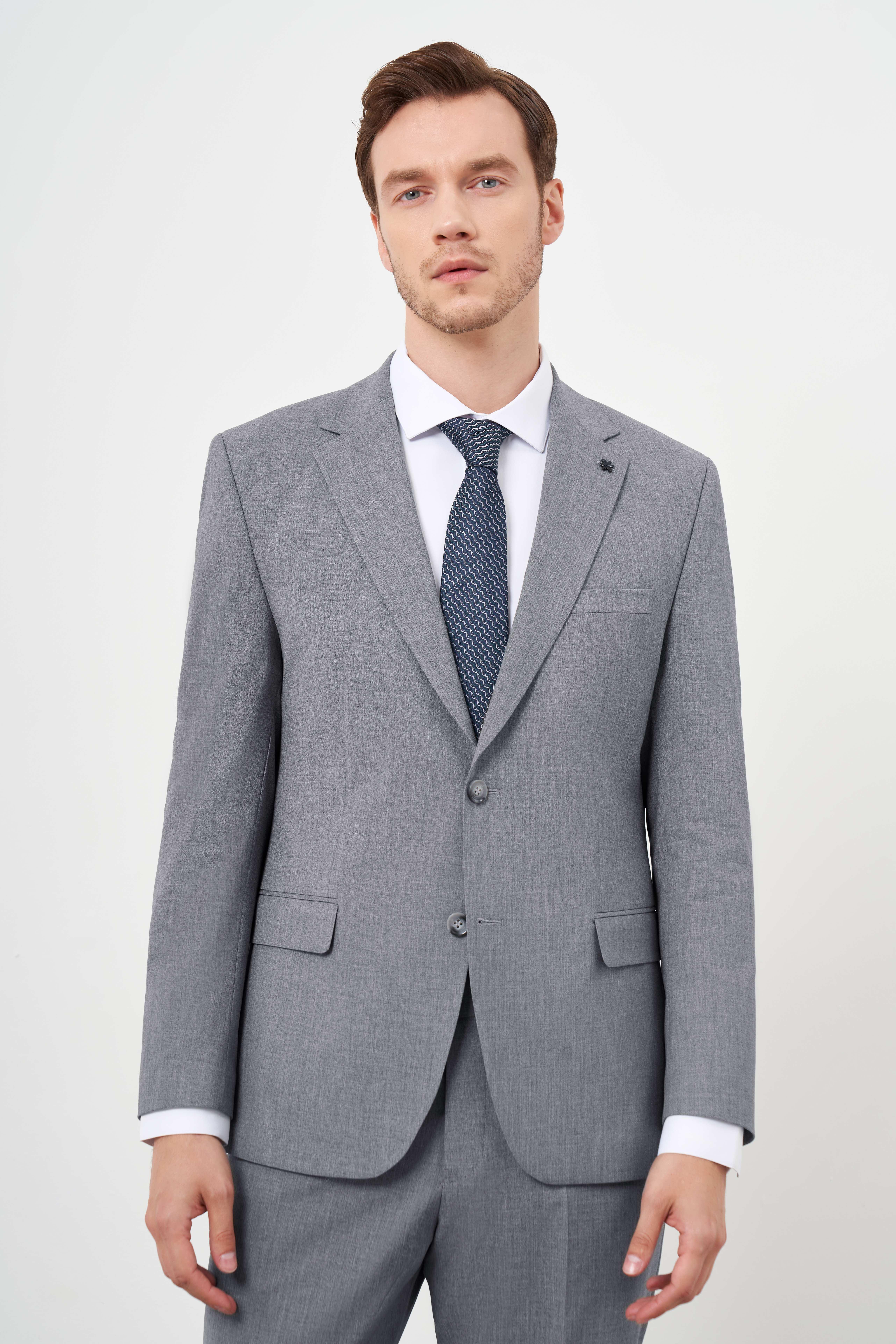 Morven Erkek Gri Poliviskon Basic Düz Desen Dynamic Fit Mono Yaka Takım Elbise (24MC001050100)