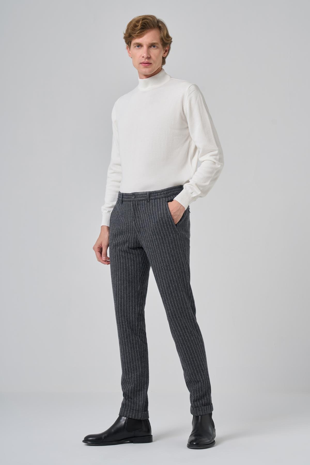 Morven Erkek Gri Trend Slim Fit Lastikli Fermuarlı Pantolon (25KS003004100)