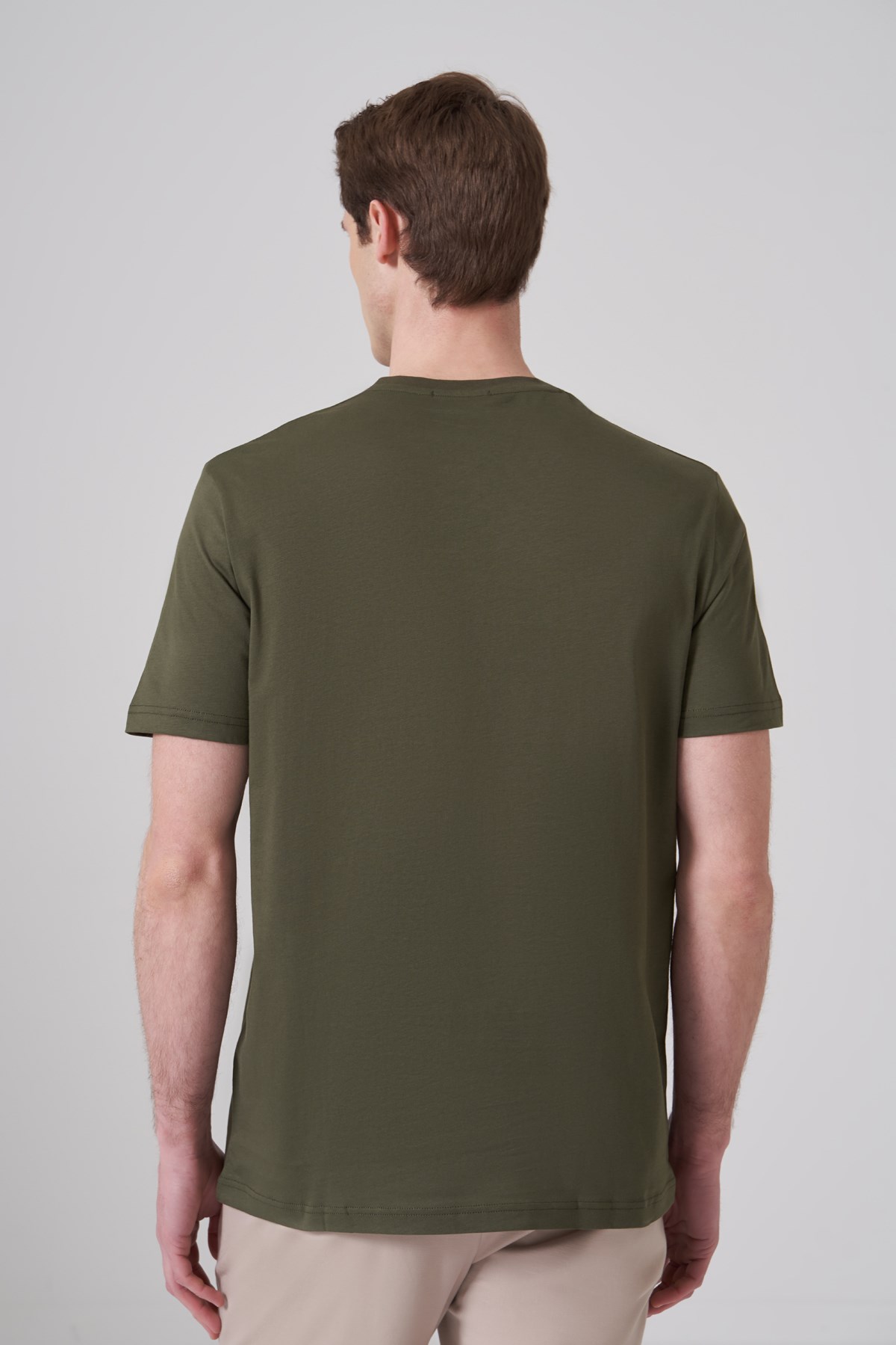 Morven Erkek Haki Basic Bisiklet Yaka Dynamic Fit Pamuk T-Shirt (26YC018008710)