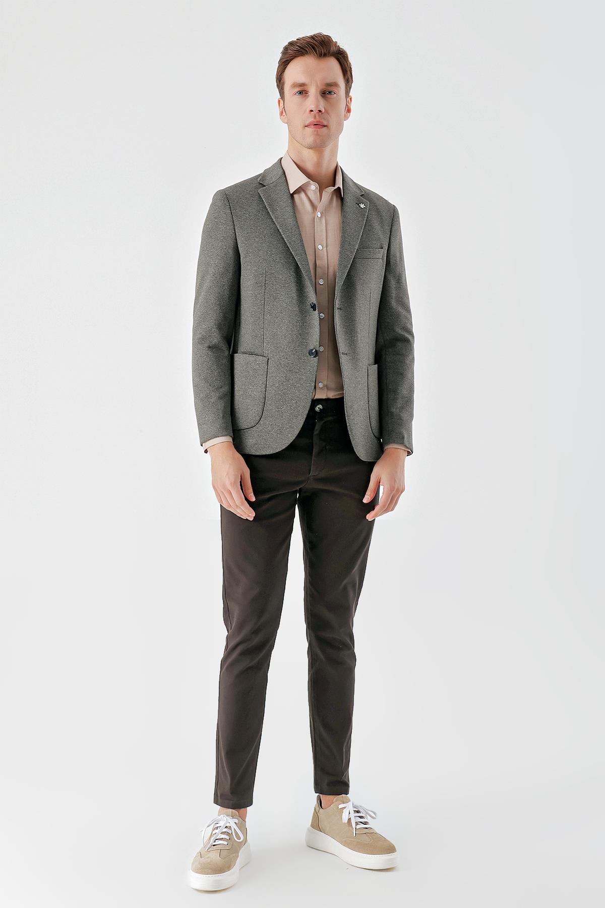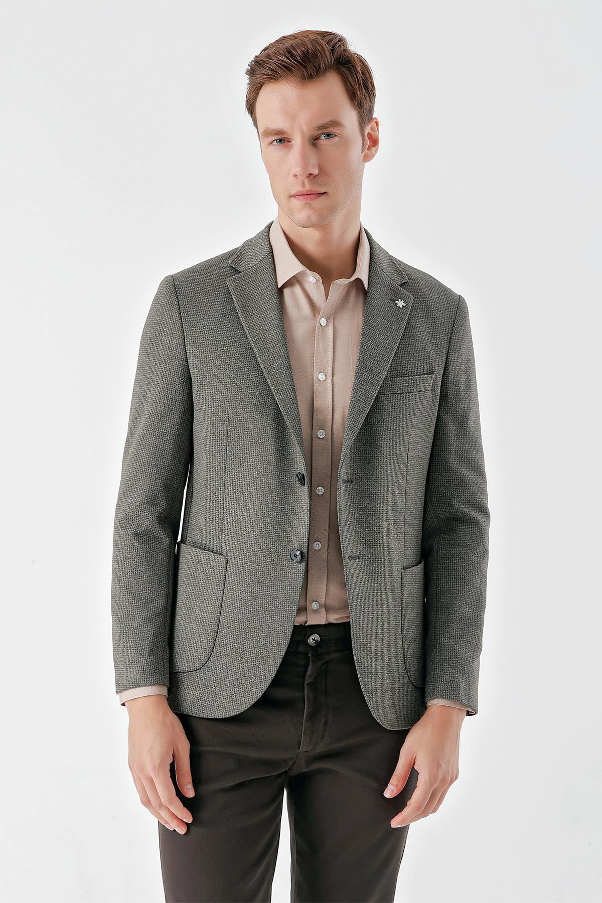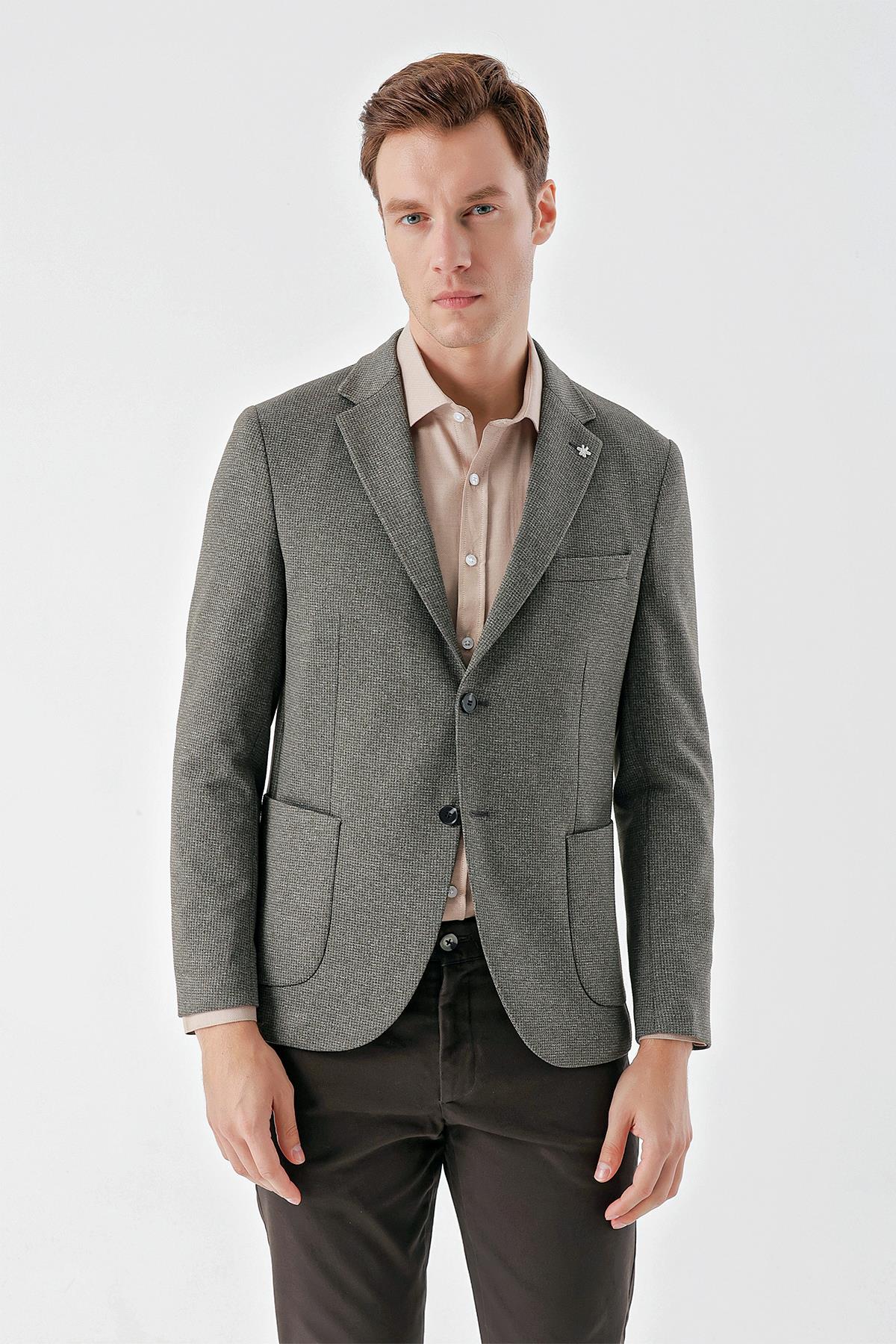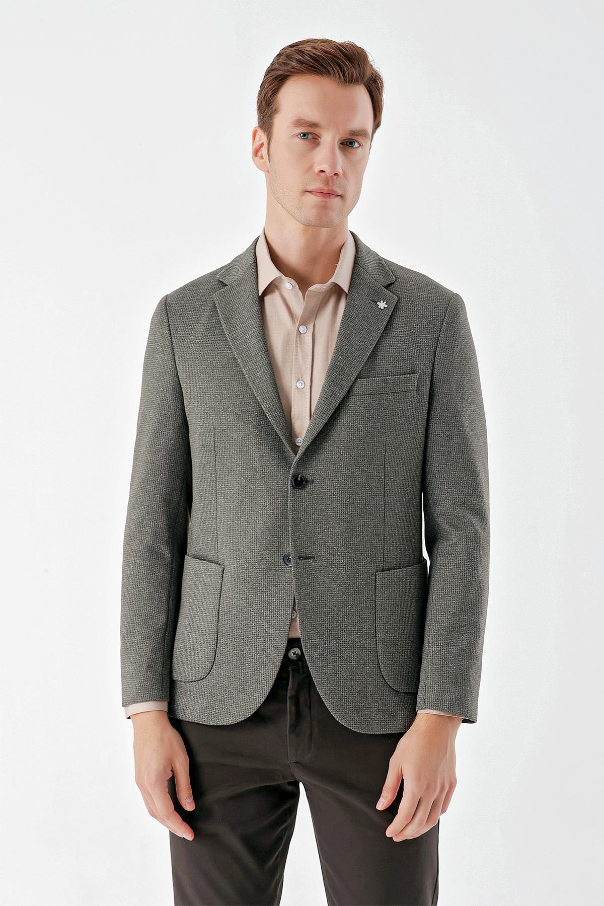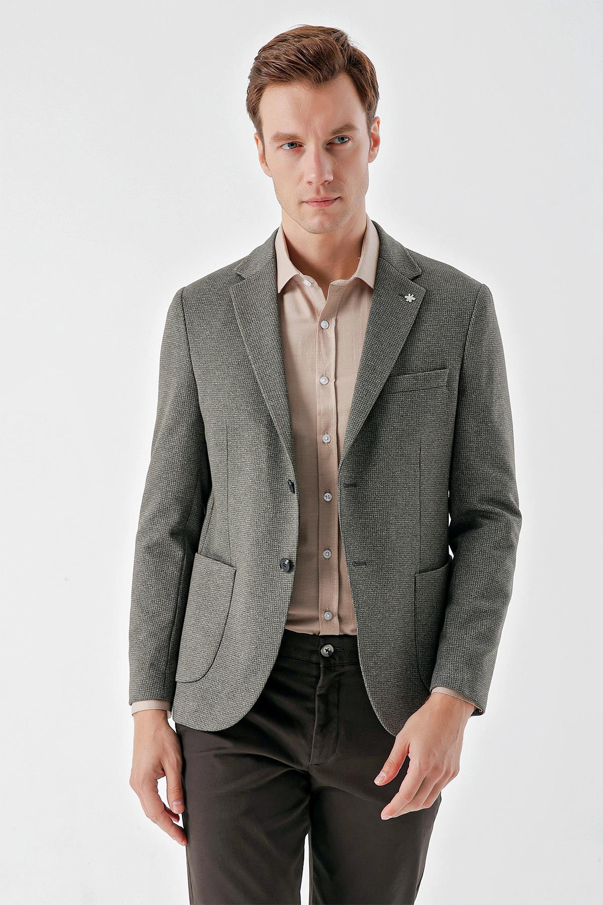 Morven Erkek Haki Örme Slim Fit Torba Cep Mono Yaka Spor Ceket (24MS002006710)