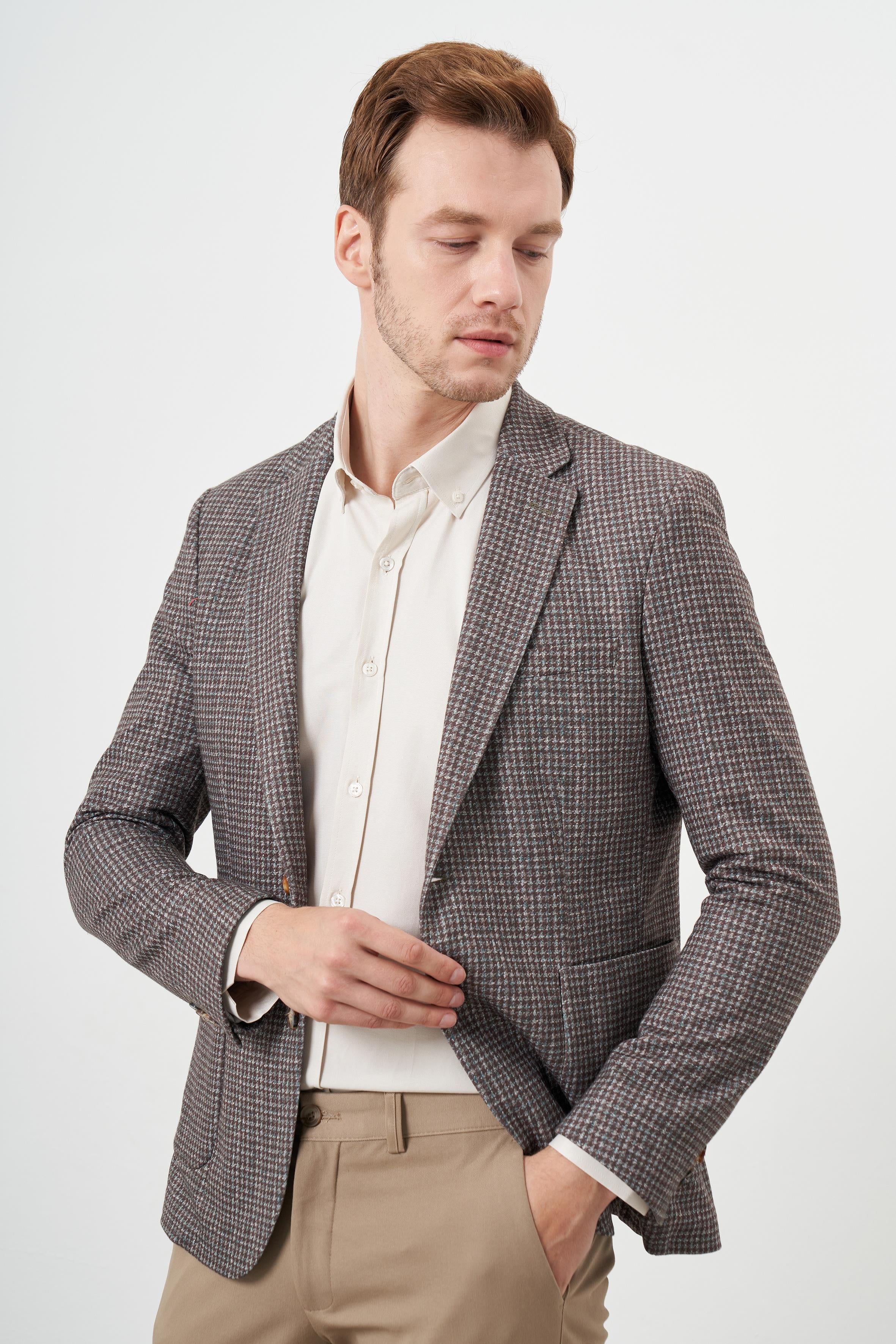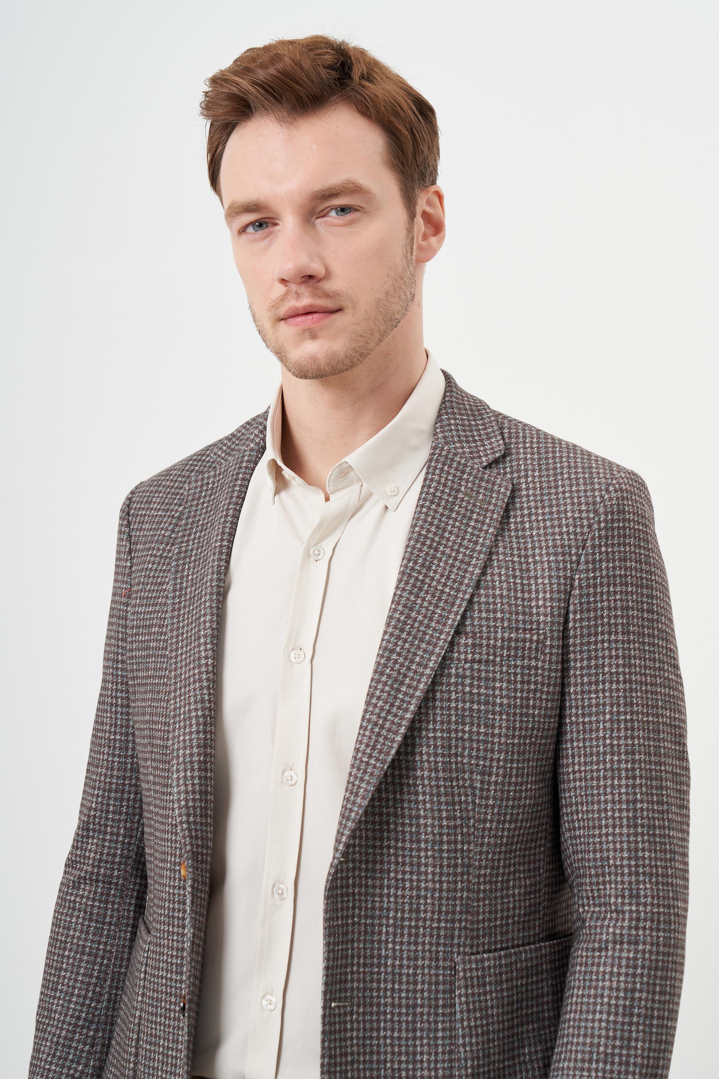 Morven Erkek KAHVE Örme Slim Fit Torba Cep Mono Yaka Spor Ceket (24MS002012400)