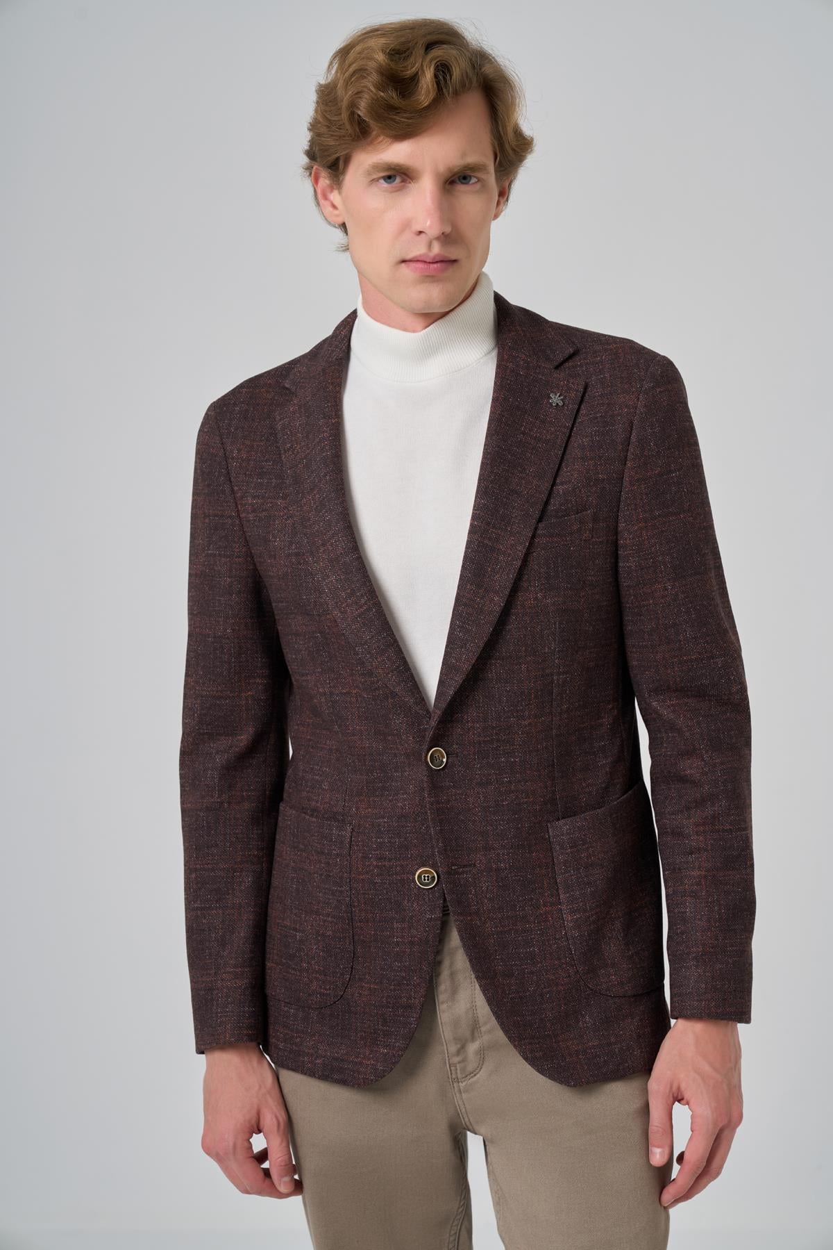 Morven Erkek KAHVE Örme Trend Kareli Slim Fit Mono Yaka Ceket (26MS002007400)