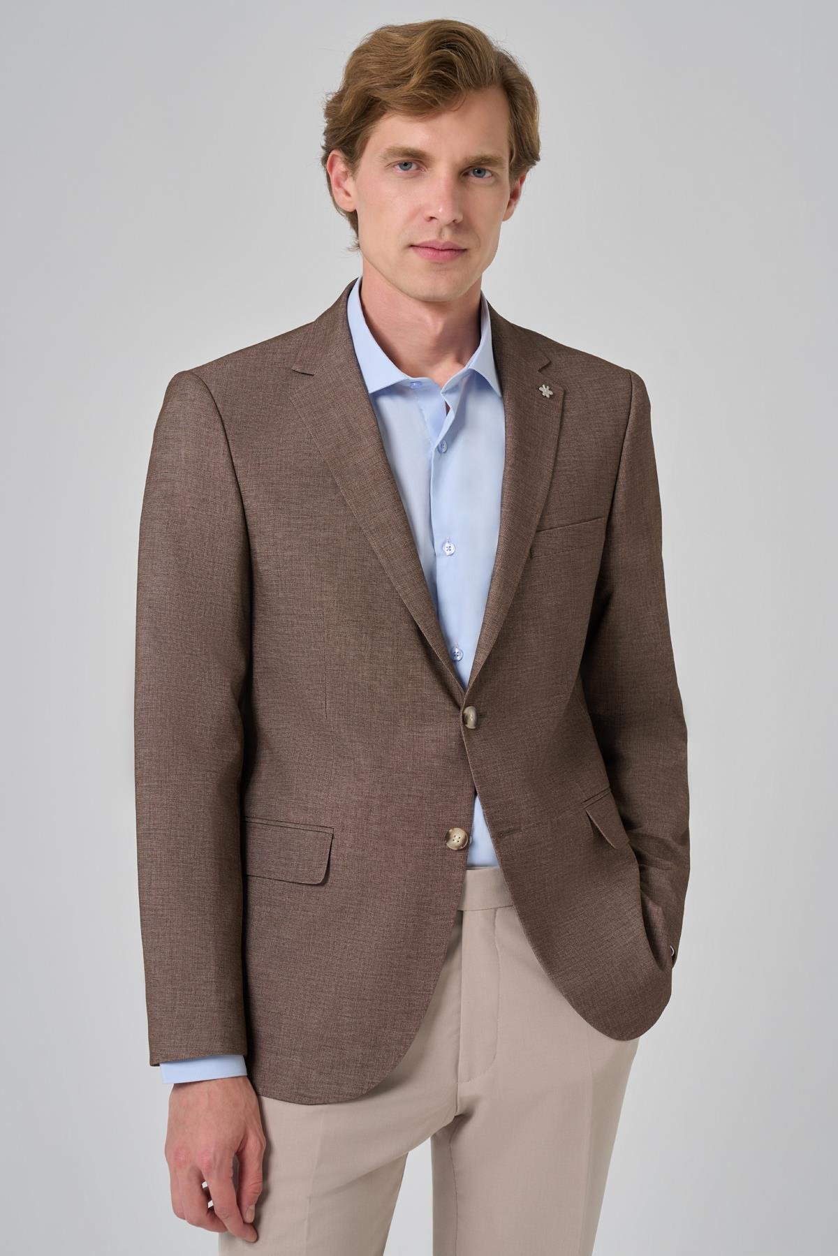 Morven Erkek KAHVE Yünlü Dynamic Fit Rahat Kesim Ceket