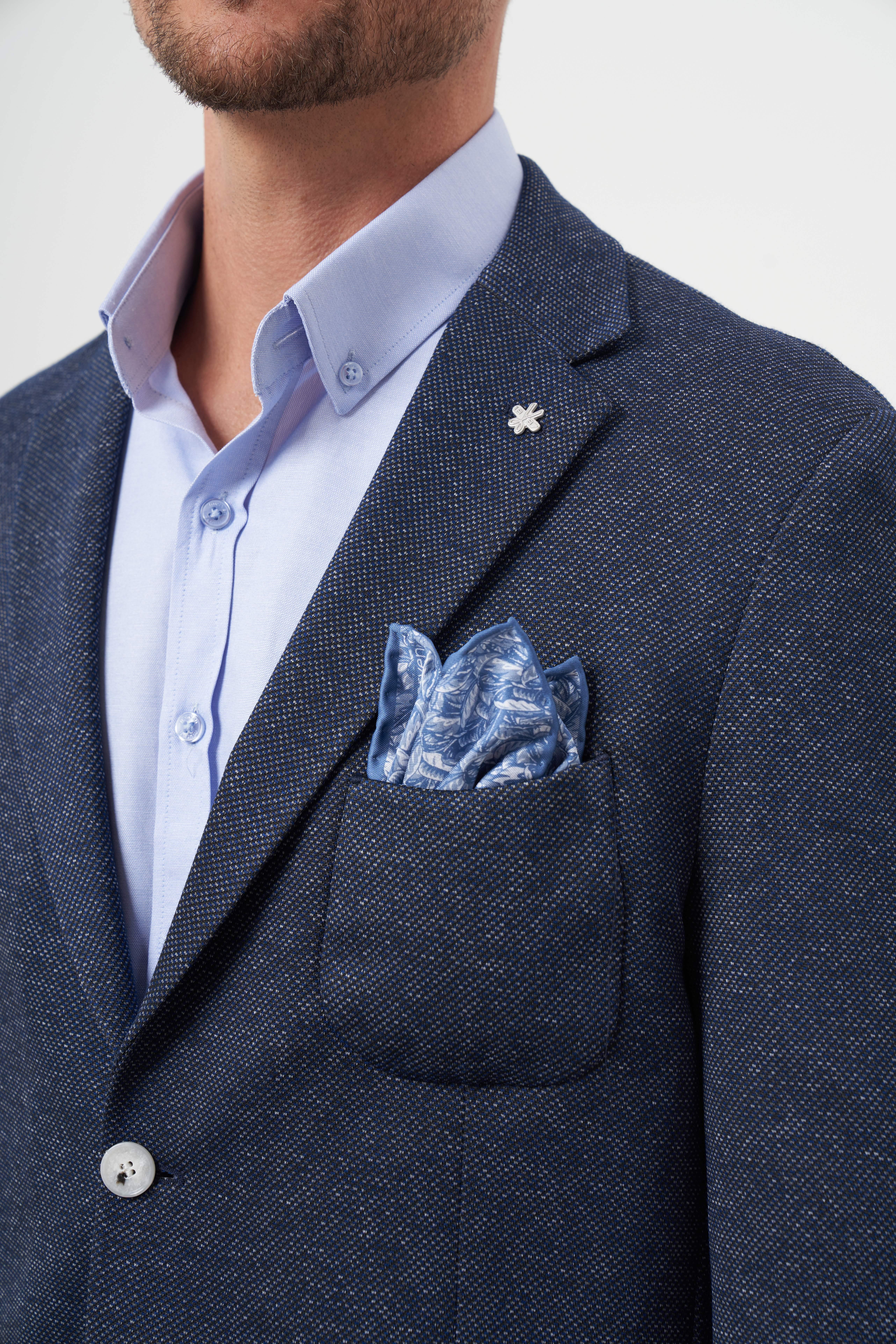 Morven Erkek Lacivert Örme Slim Fit Torba Cep Mono Yaka Spor Ceket (24MS002018200)