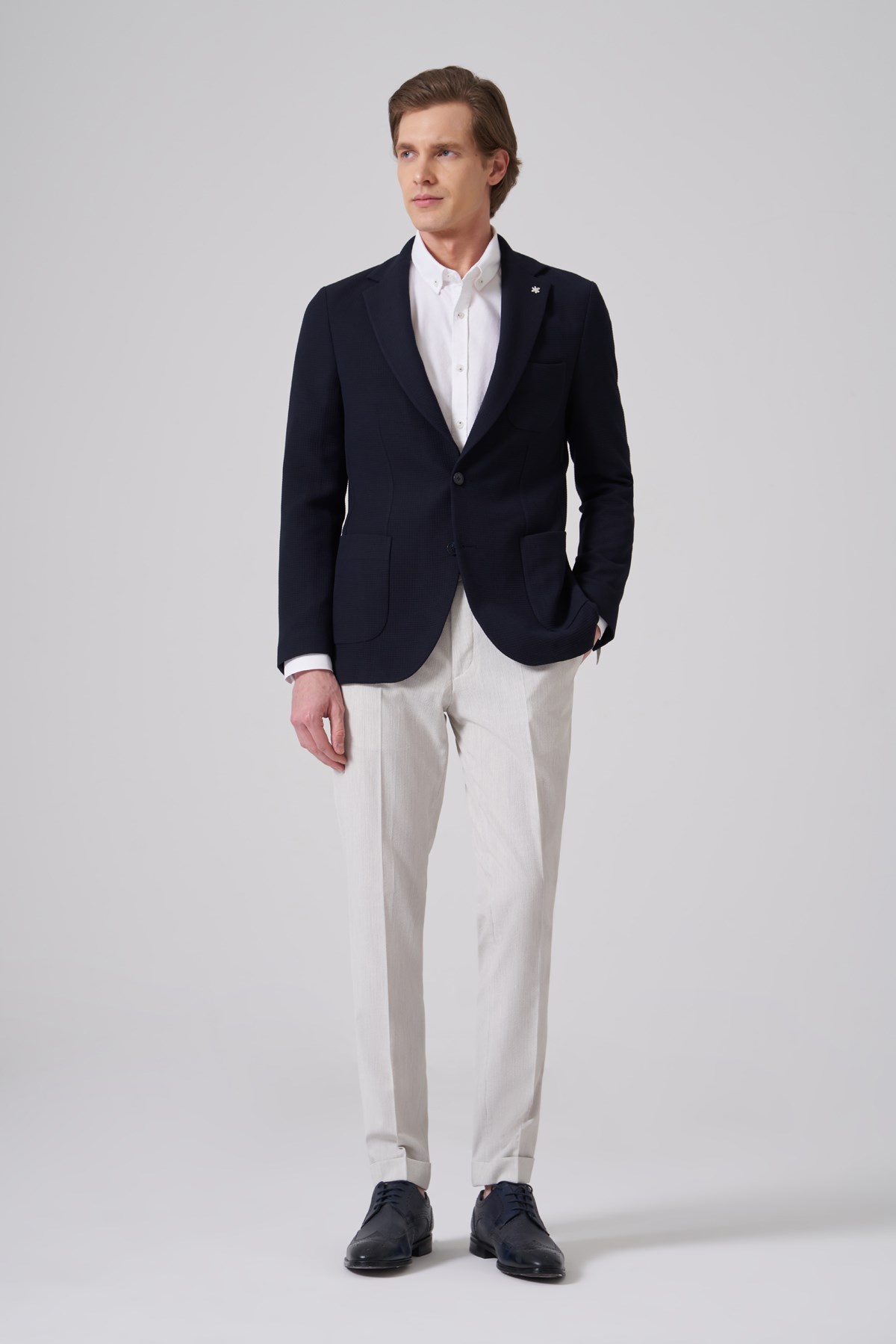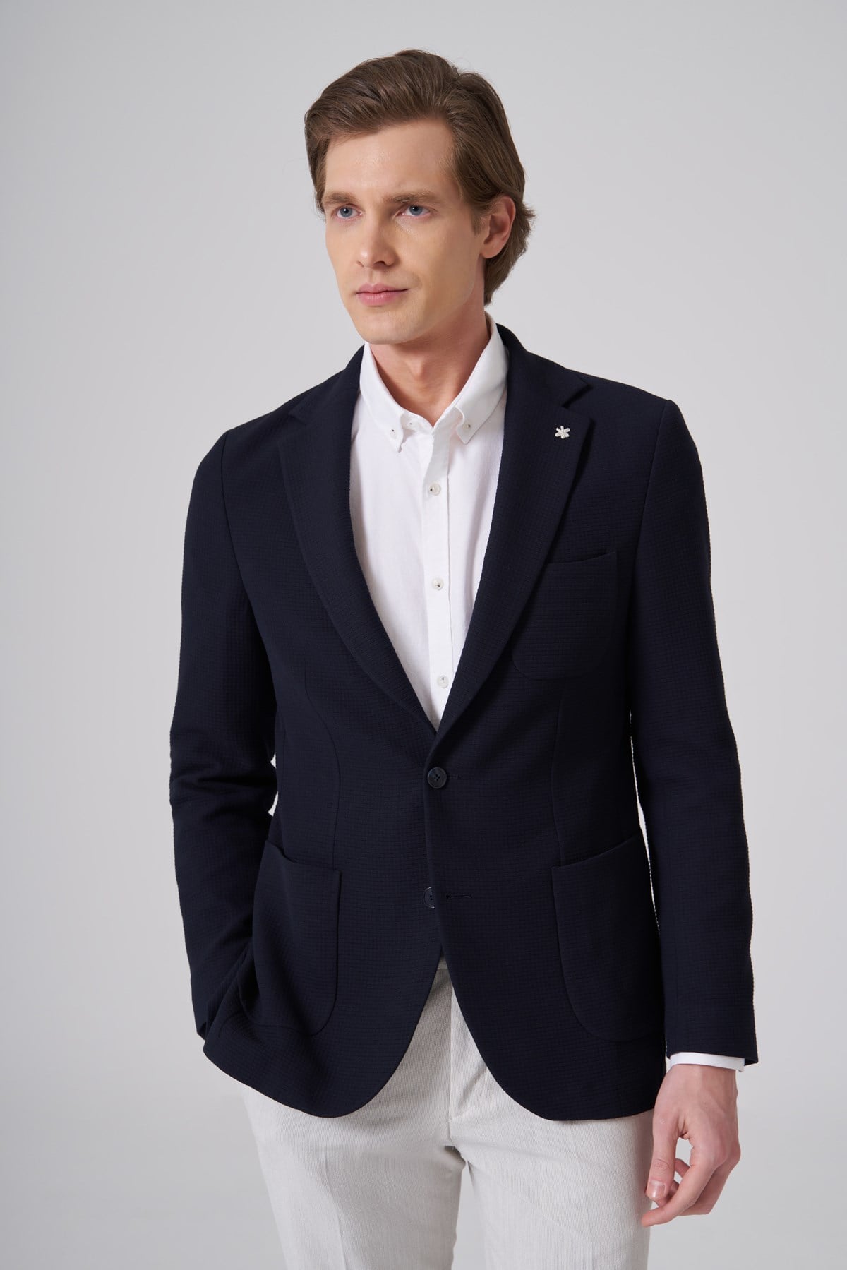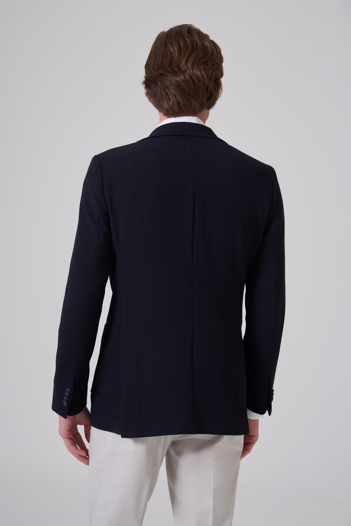 Morven Erkek Lacivert Örme Trend Slim Fit Mono Yaka Ceket (26MS002011200)