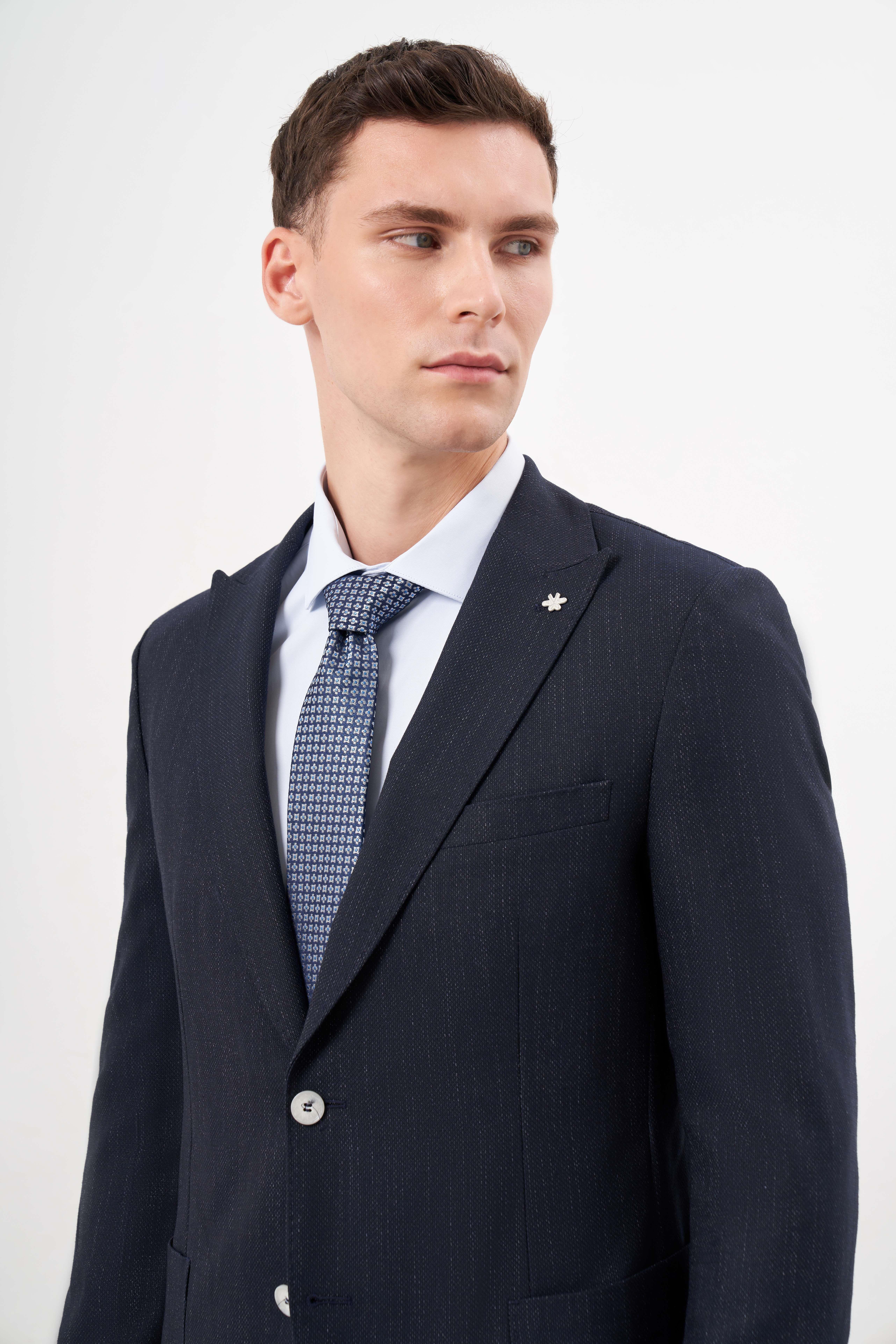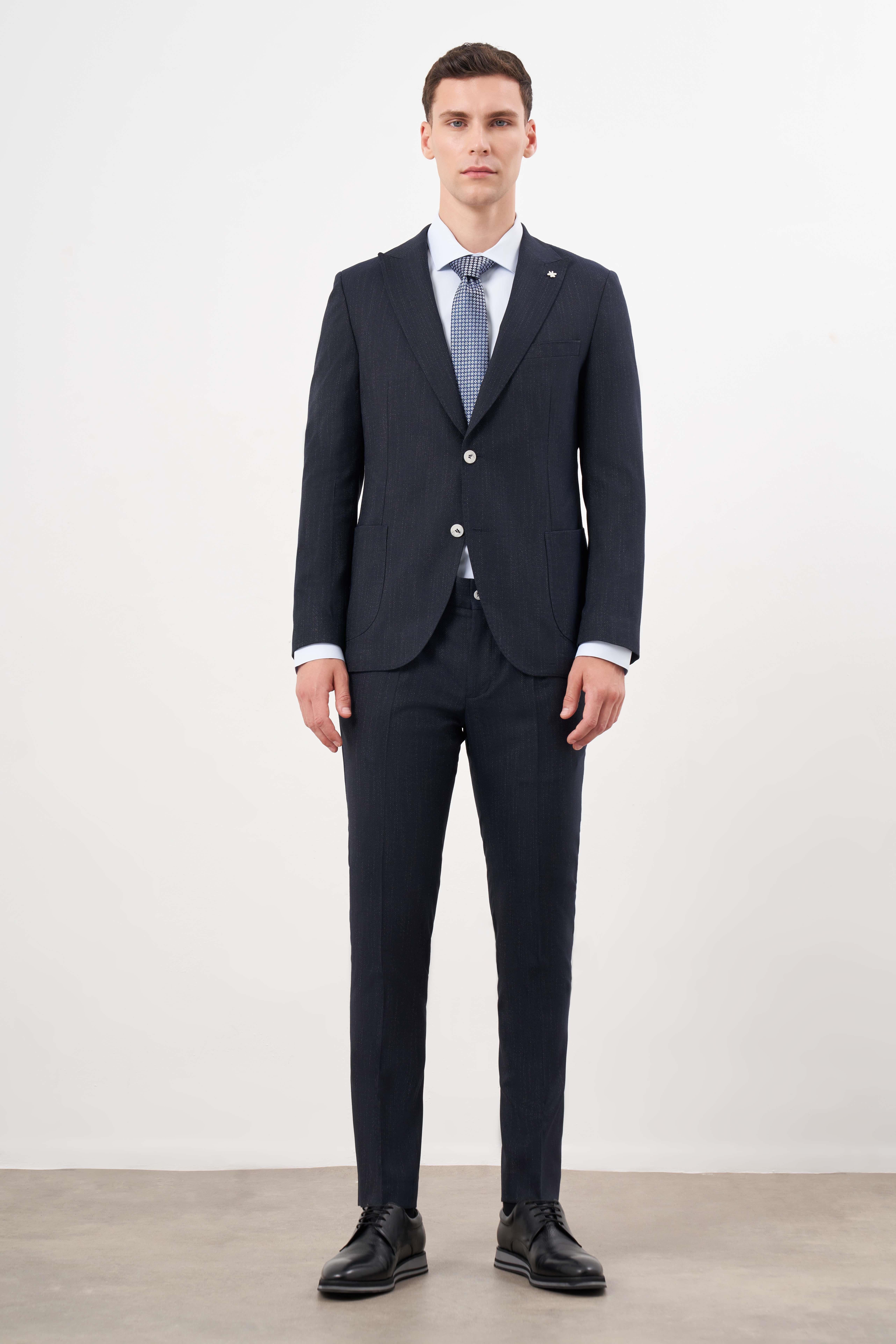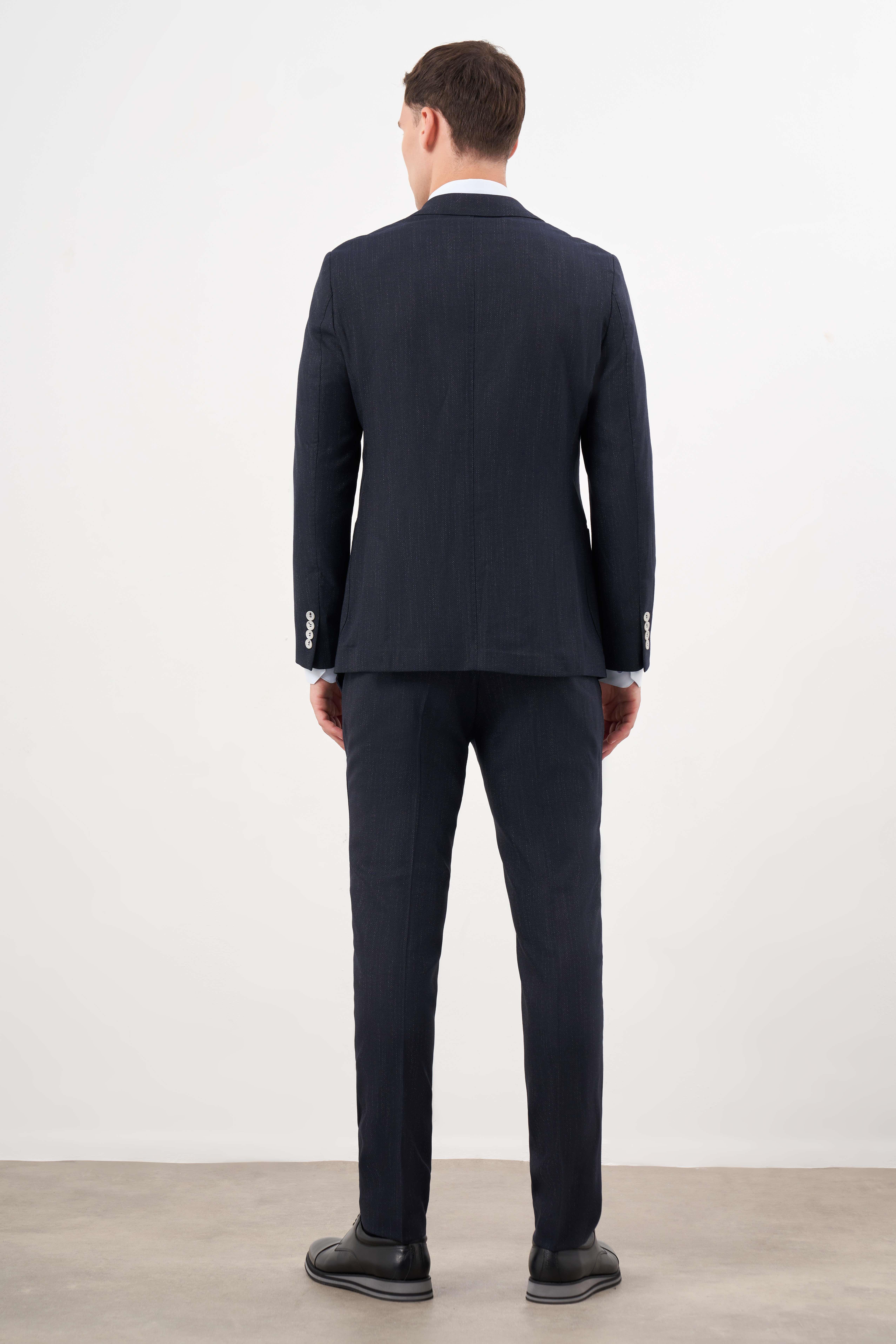 Morven Erkek Lacivert Poliviskon Trend Desenli Slim Fit Mono Yaka Takım Elbise (25MS001003200)
