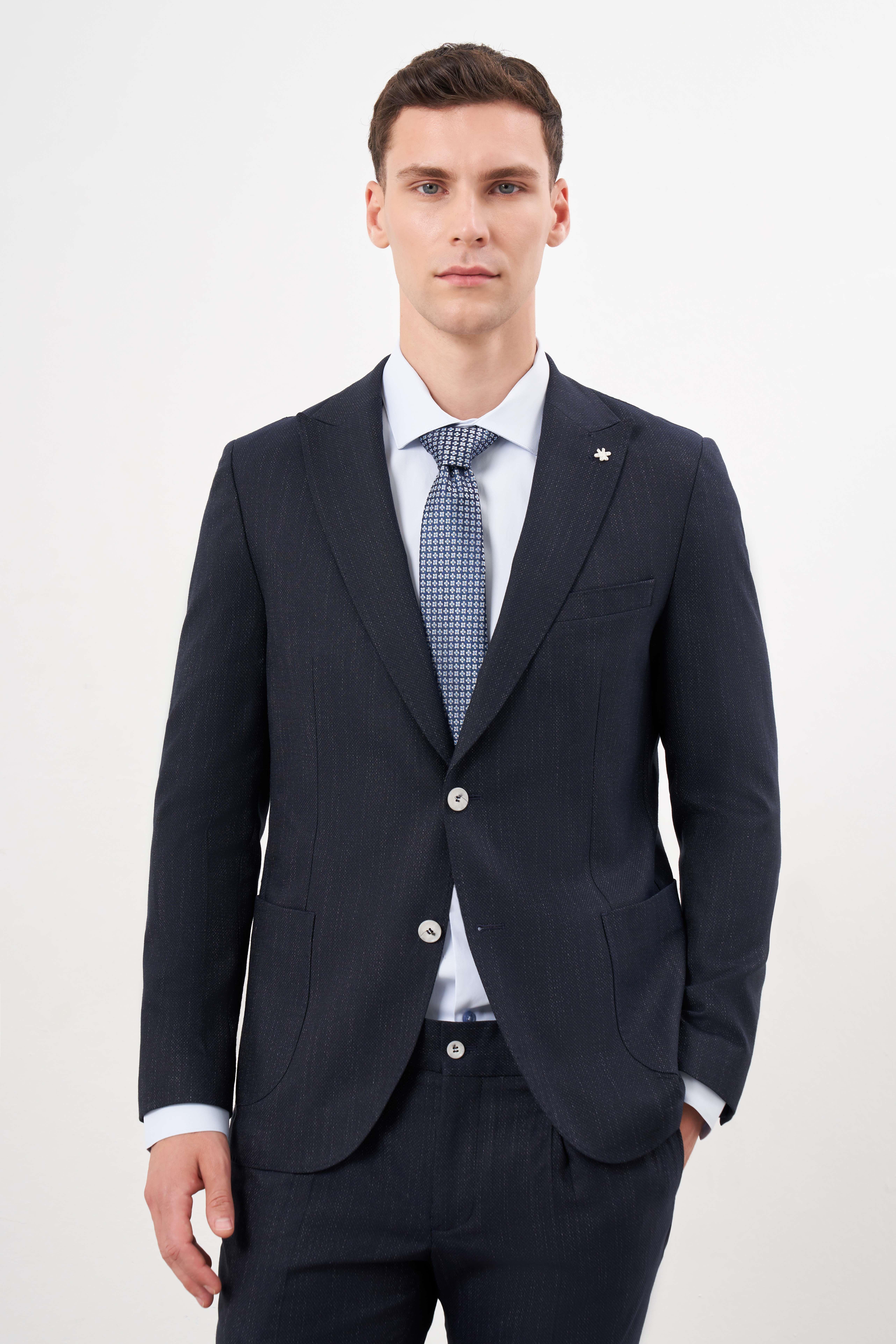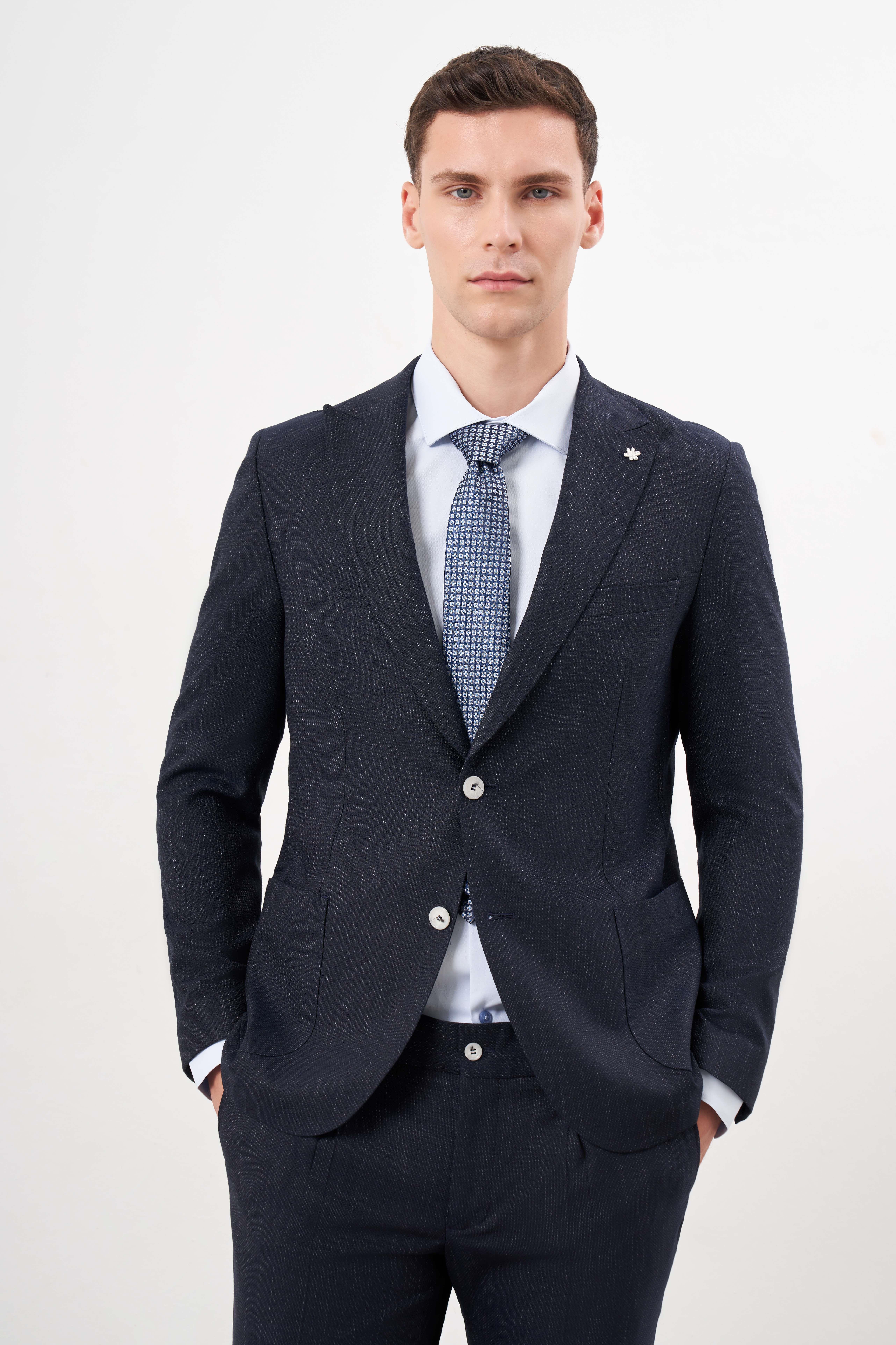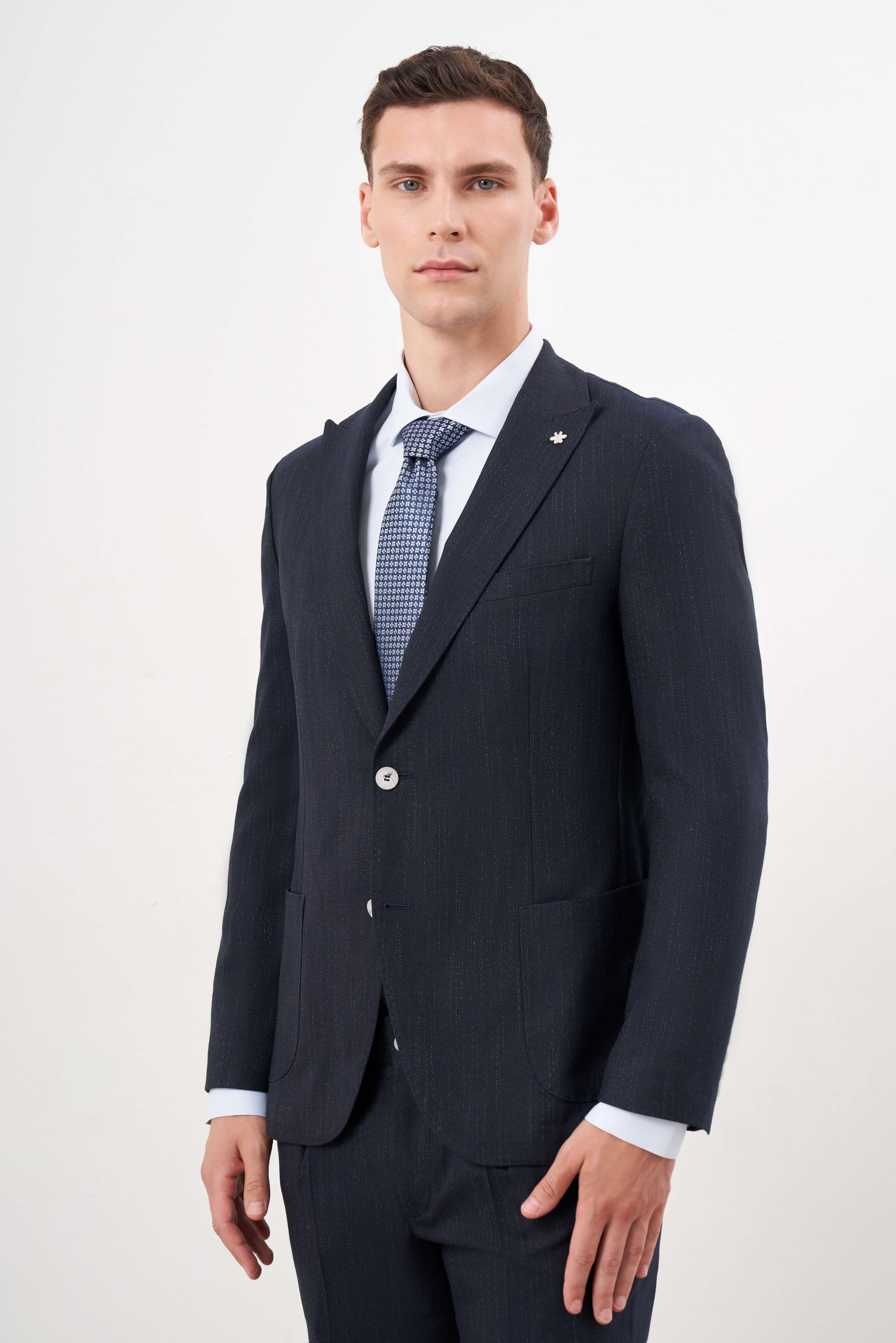 Morven Erkek Lacivert Poliviskon Trend Desenli Slim Fit Mono Yaka Takım Elbise (25MS001003200)