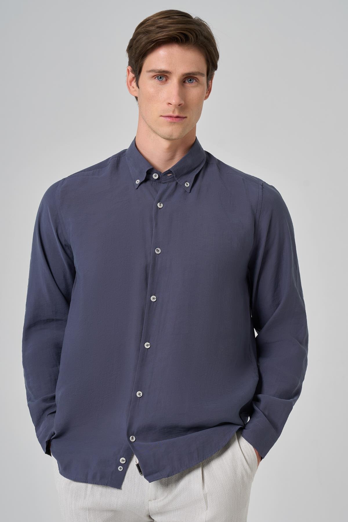 Morven Erkek Lacivert Dynamic Fit Düğmeli Yaka Modal Gömlek (25MS004030200)
