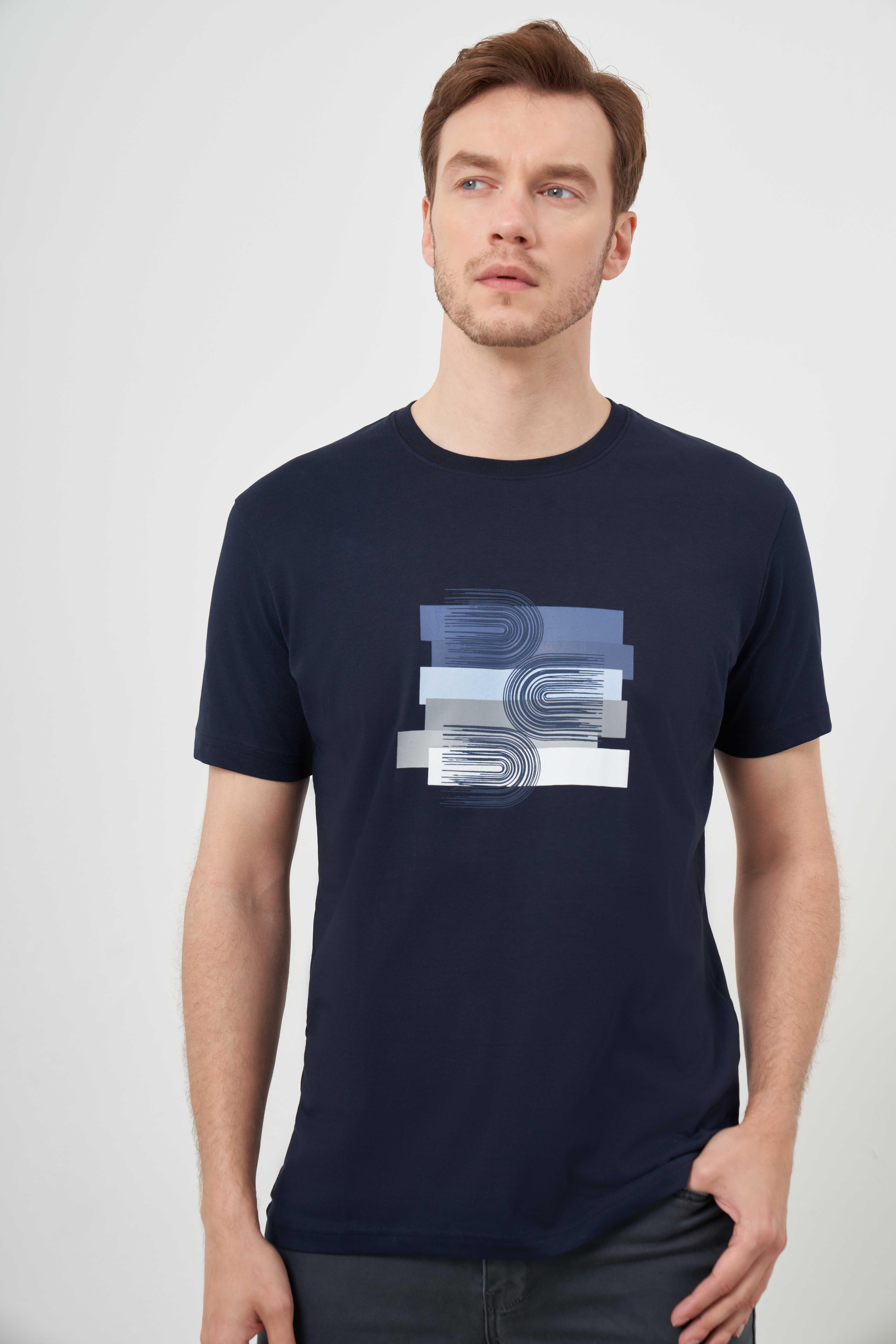 Morven Erkek Lacivert Trend Süprem Baskılı Bisiklet Yaka Dynamic Fit T-Shirt (24YS018002200)