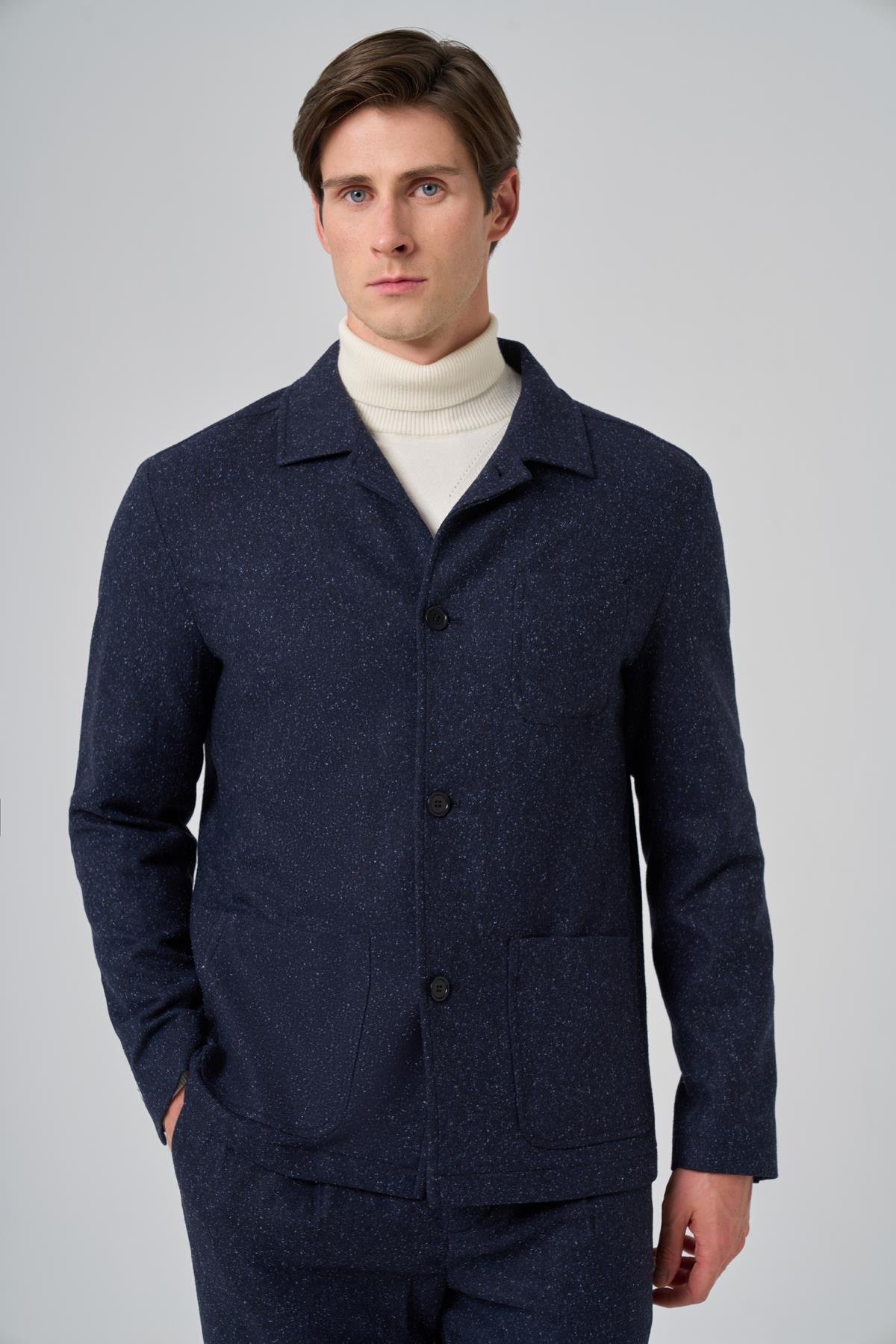 Morven Erkek Lacivert Yünlü Berberi Yaka Torba Cepli Gömlek