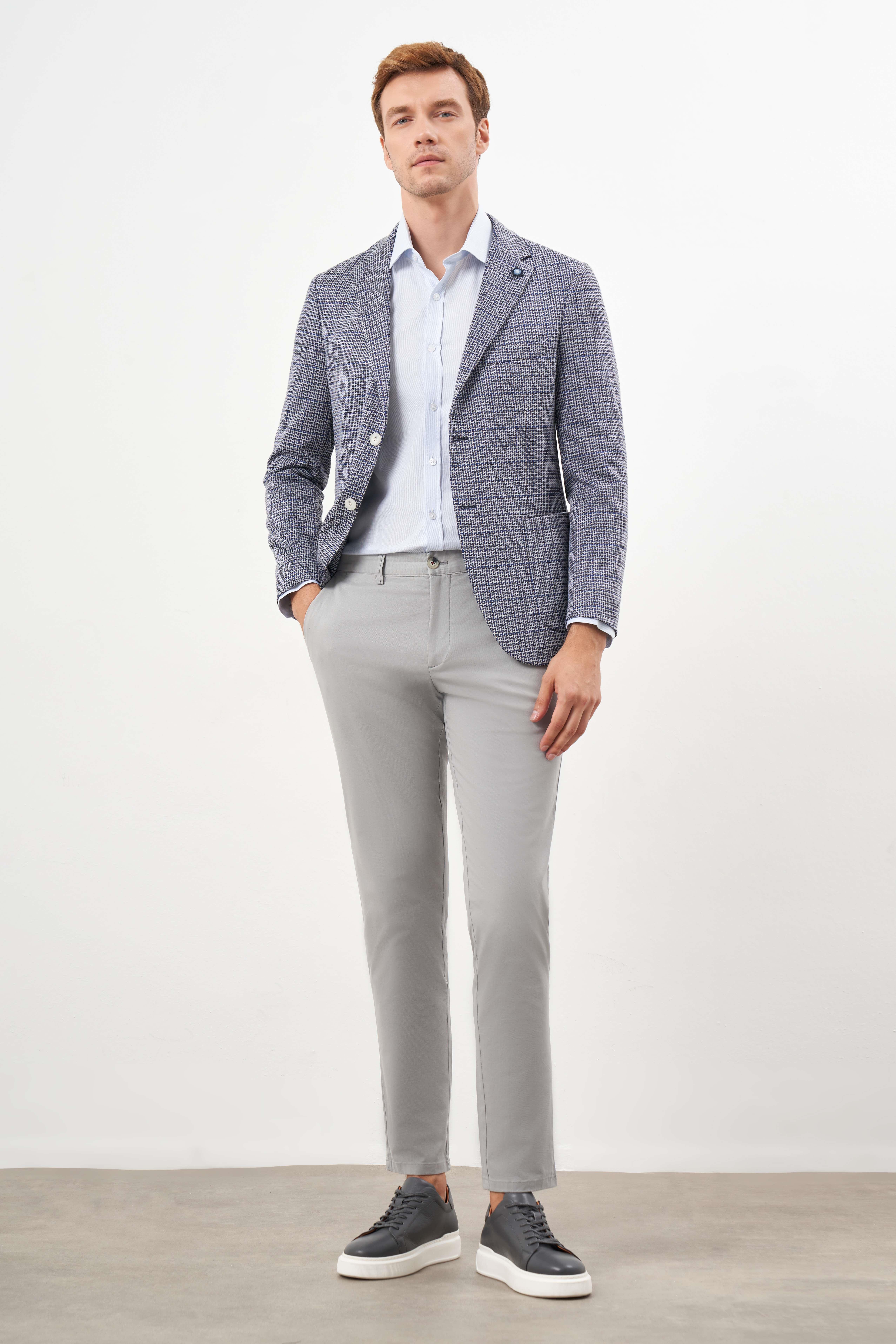 Morven Erkek Mavi Örme Slim Fit Torba Cep Mono Yaka Spor Ceket (24MS002011300)