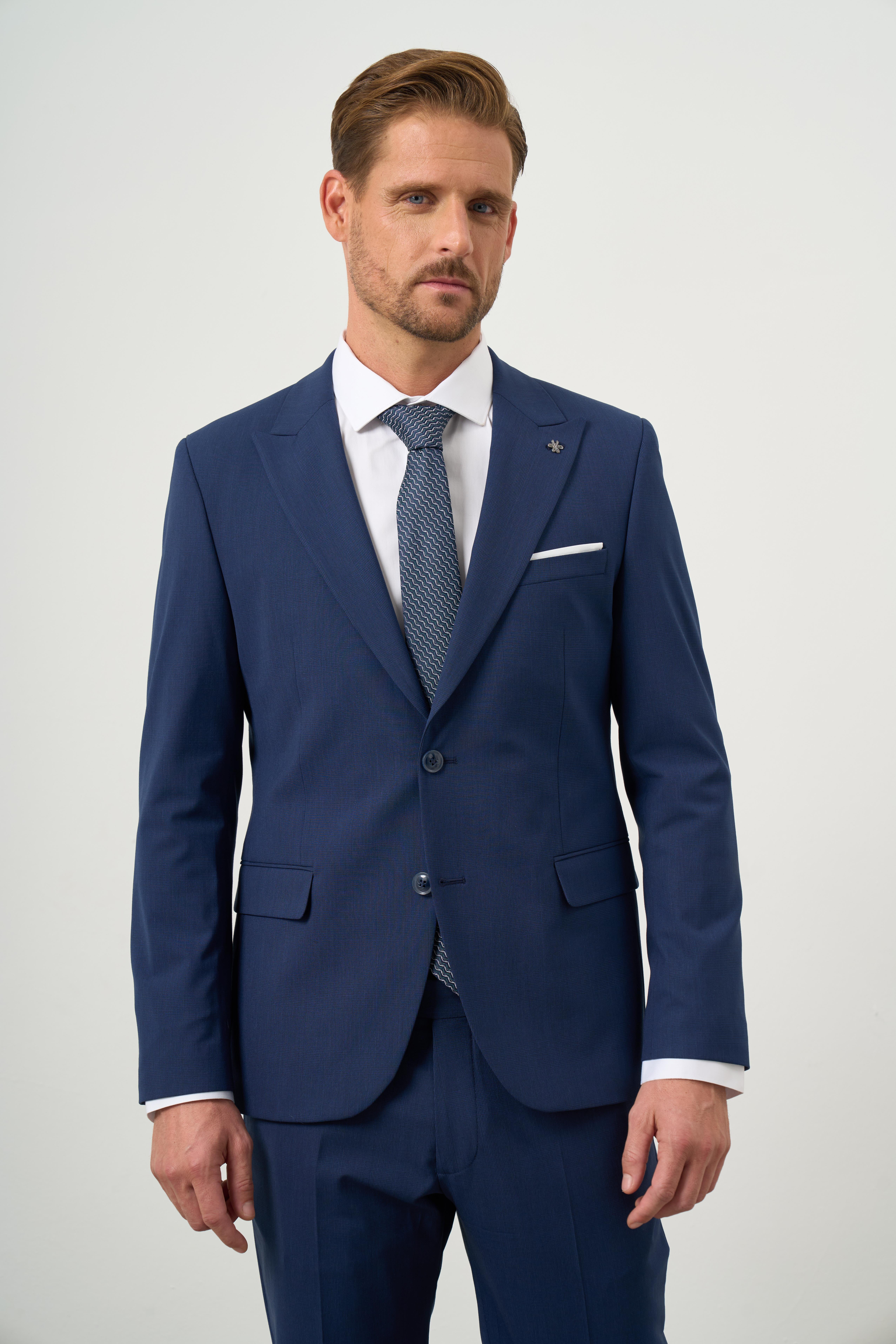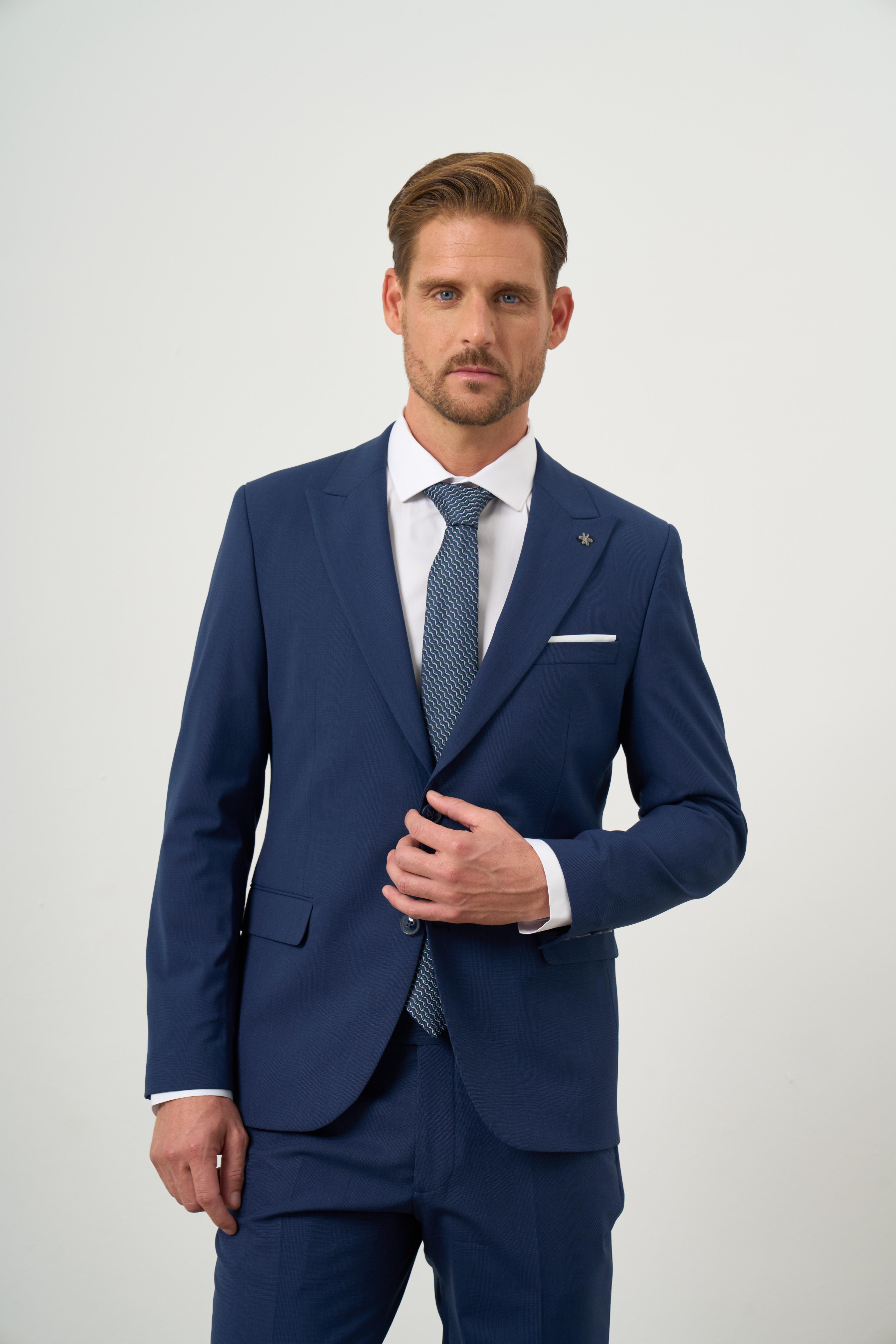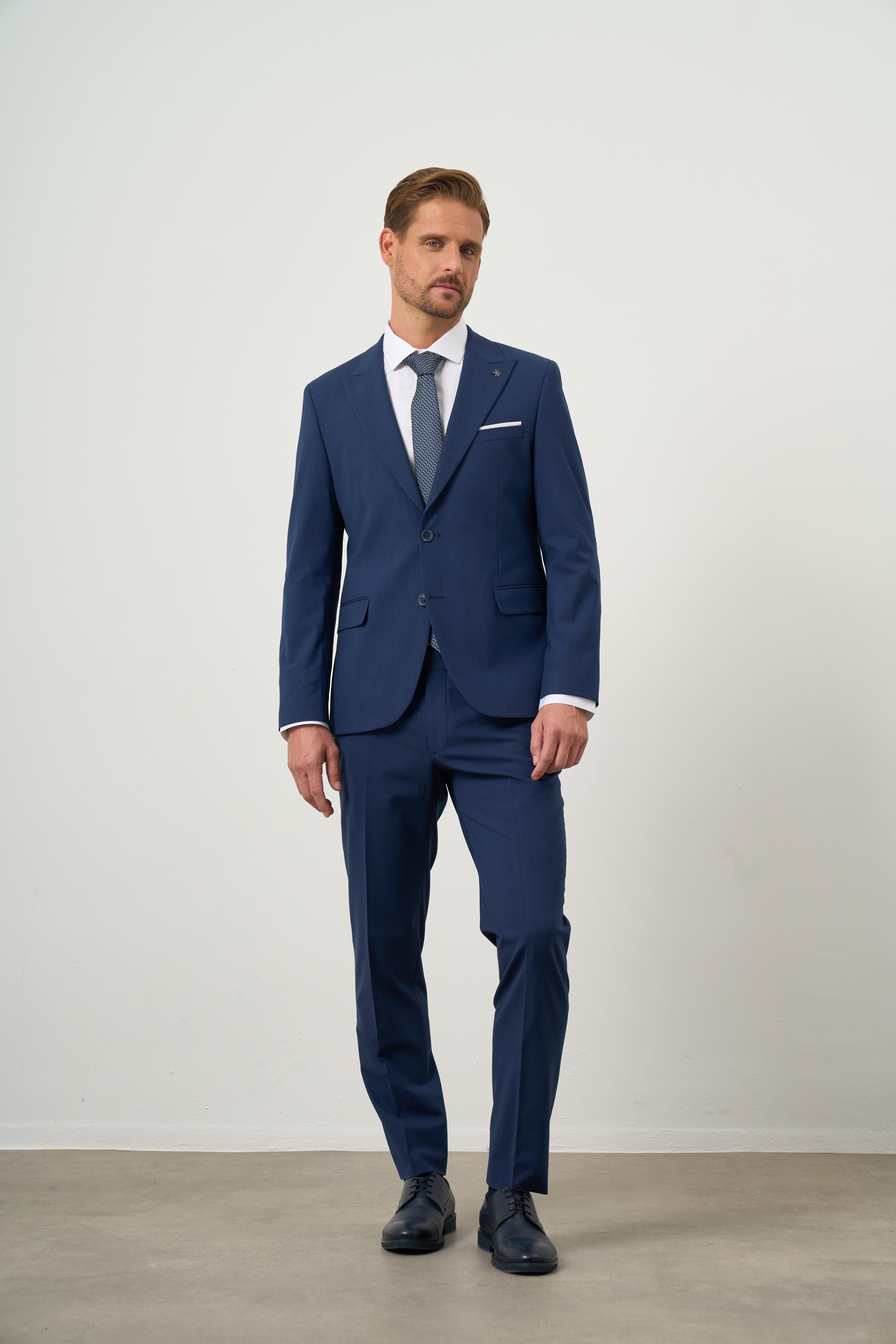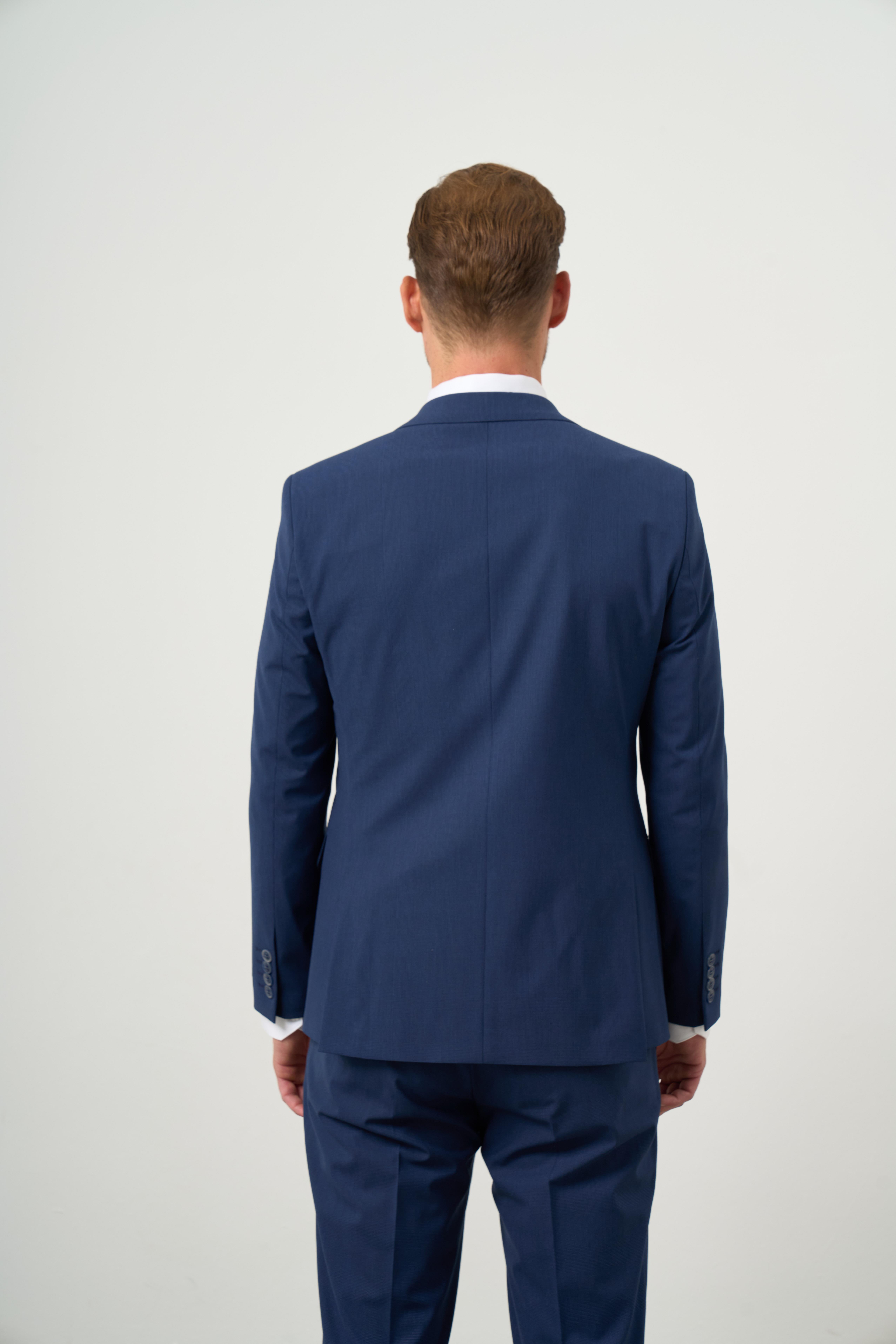 Morven Erkek Mavi Poliviskon Basic Düz Desen Slim Fit Sivri Yaka Takım Elbise (24MC001058300)