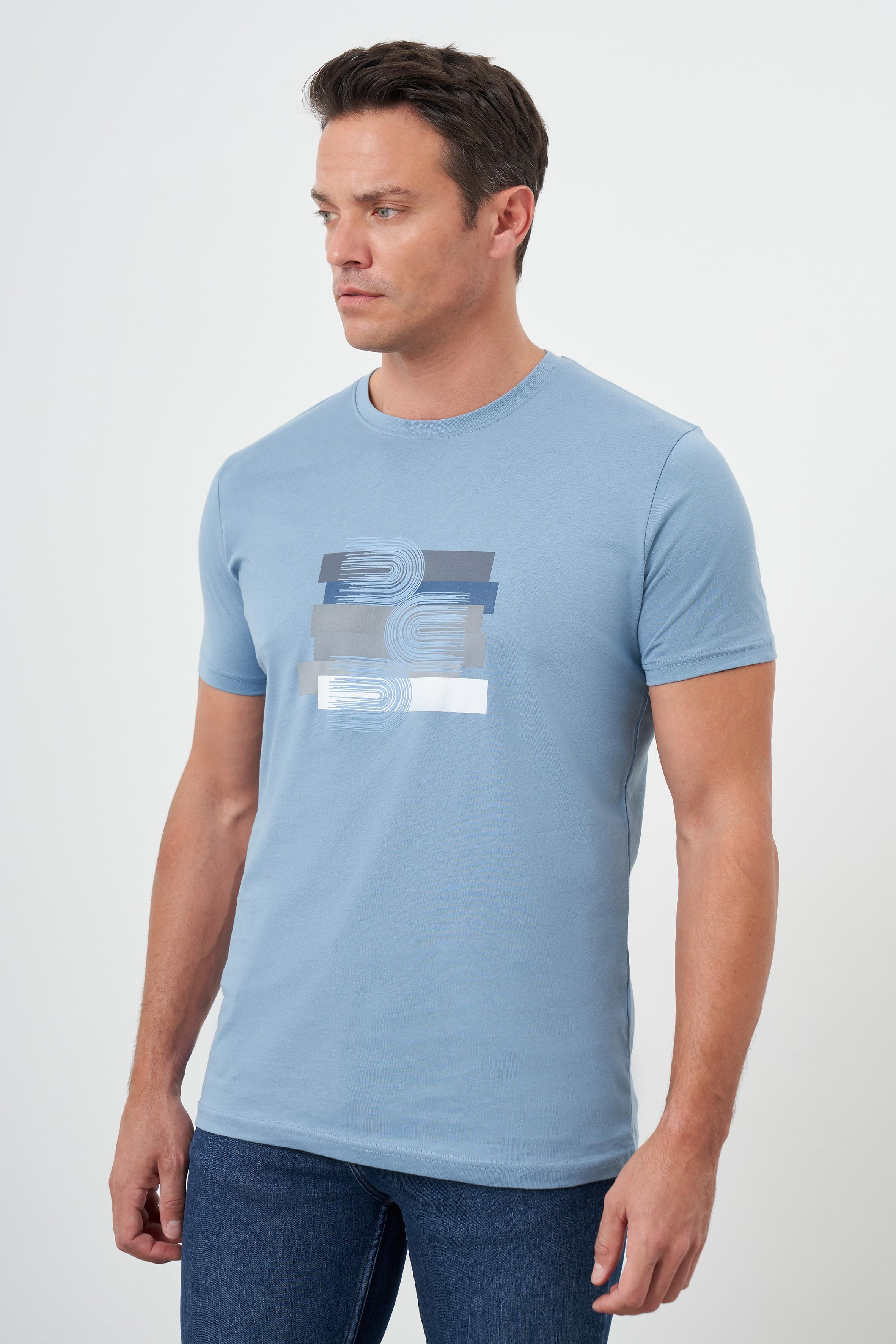 Morven Erkek Mavi Trend Süprem Baskılı Bisiklet Yaka Dynamic Fit T-Shirt (24YS018002300)