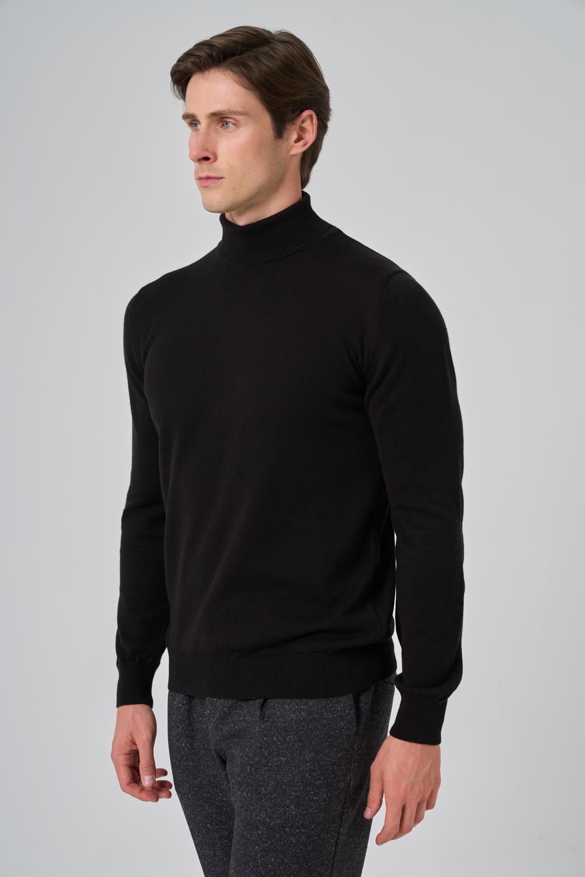 Morven Erkek Siyah Basic Balıkçı Yaka Dynamic Fit Rahat Kesim Triko (26KC017002001)