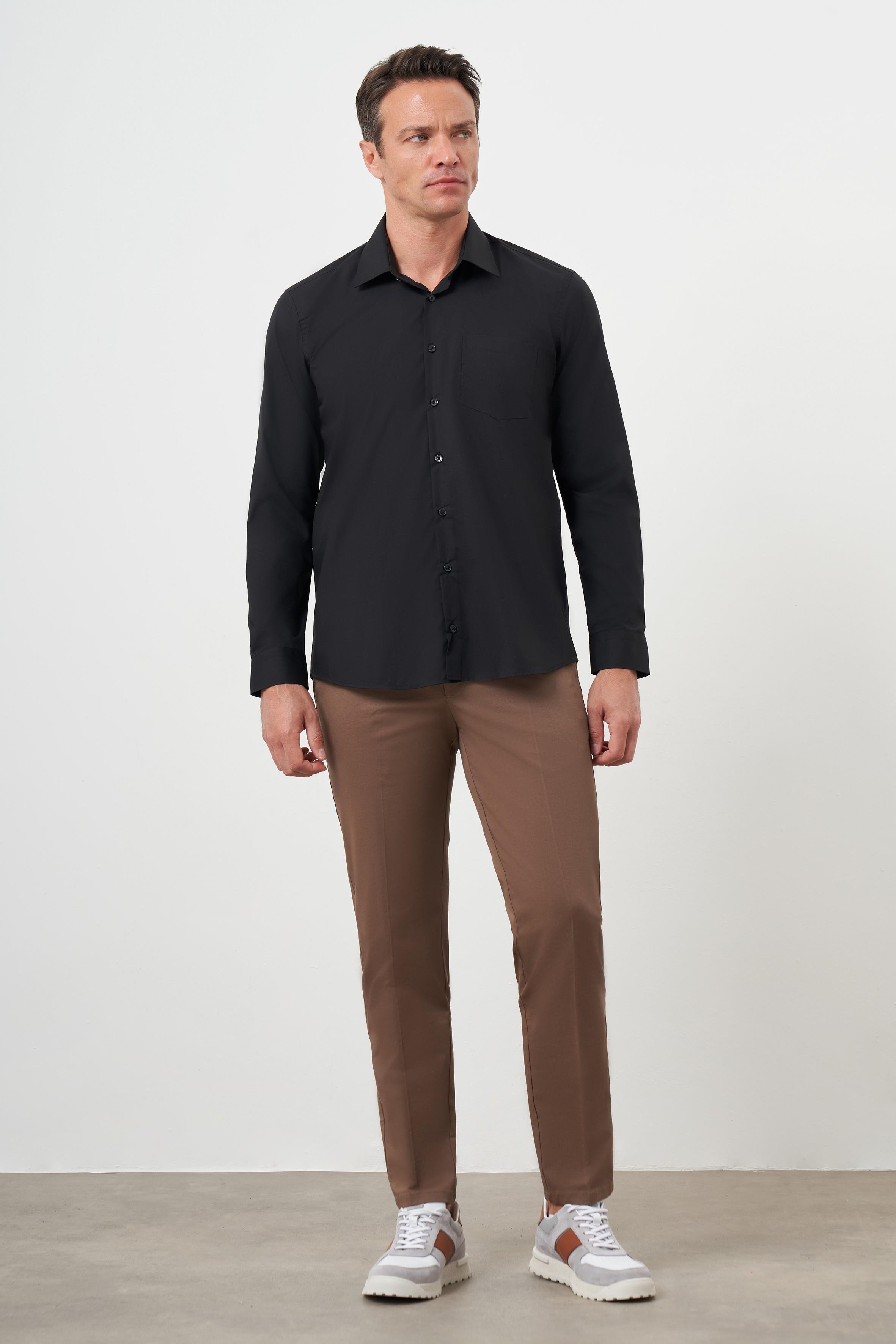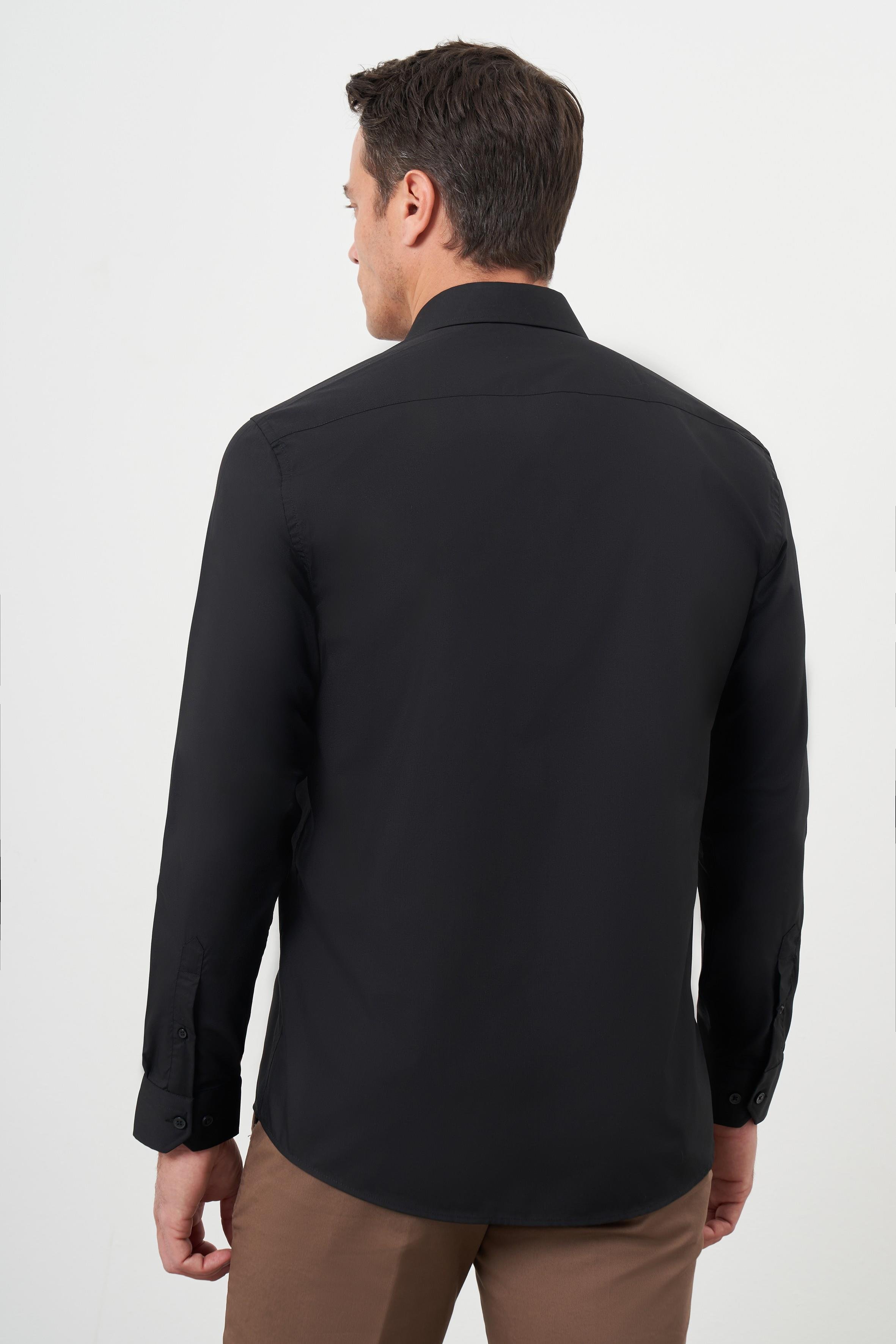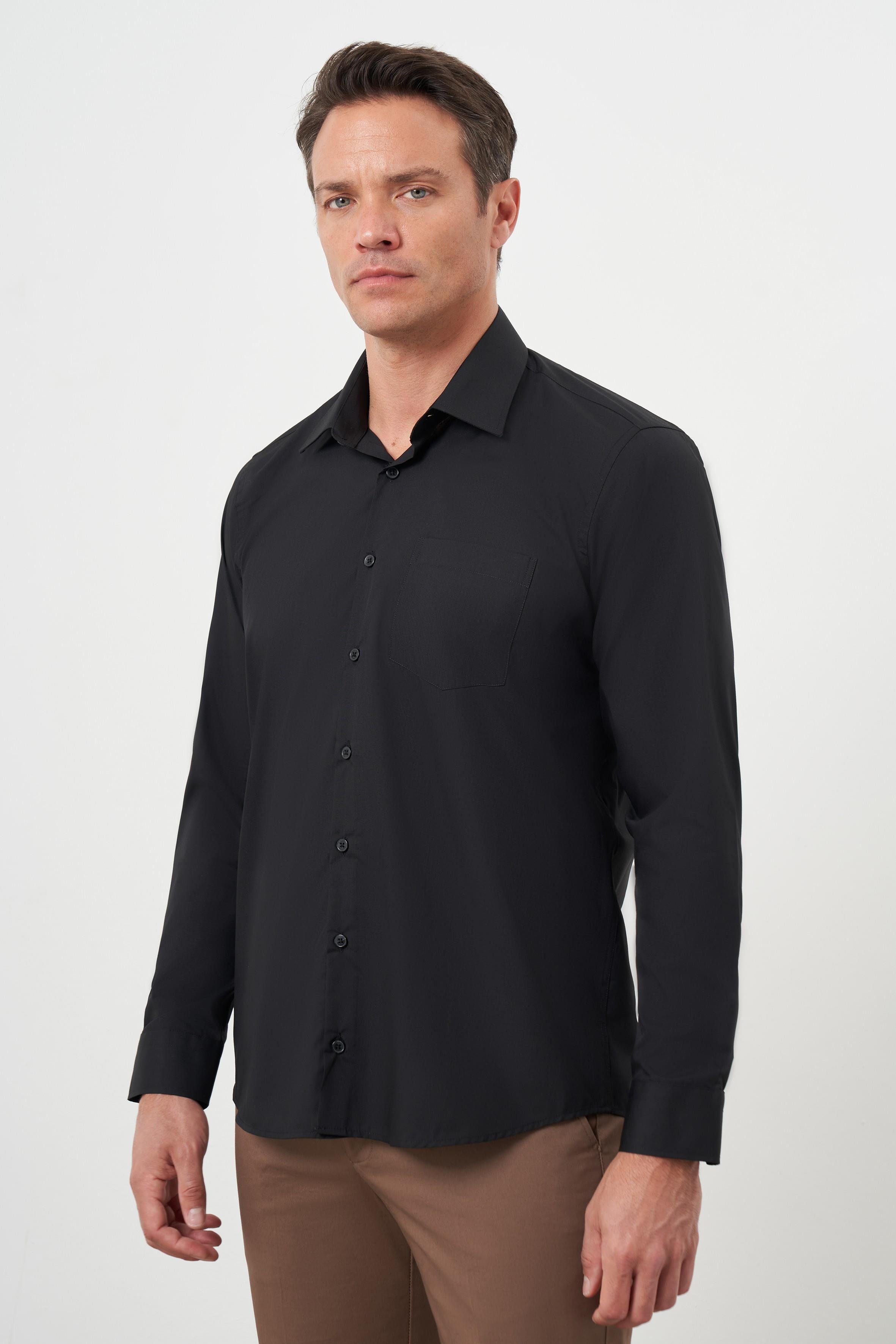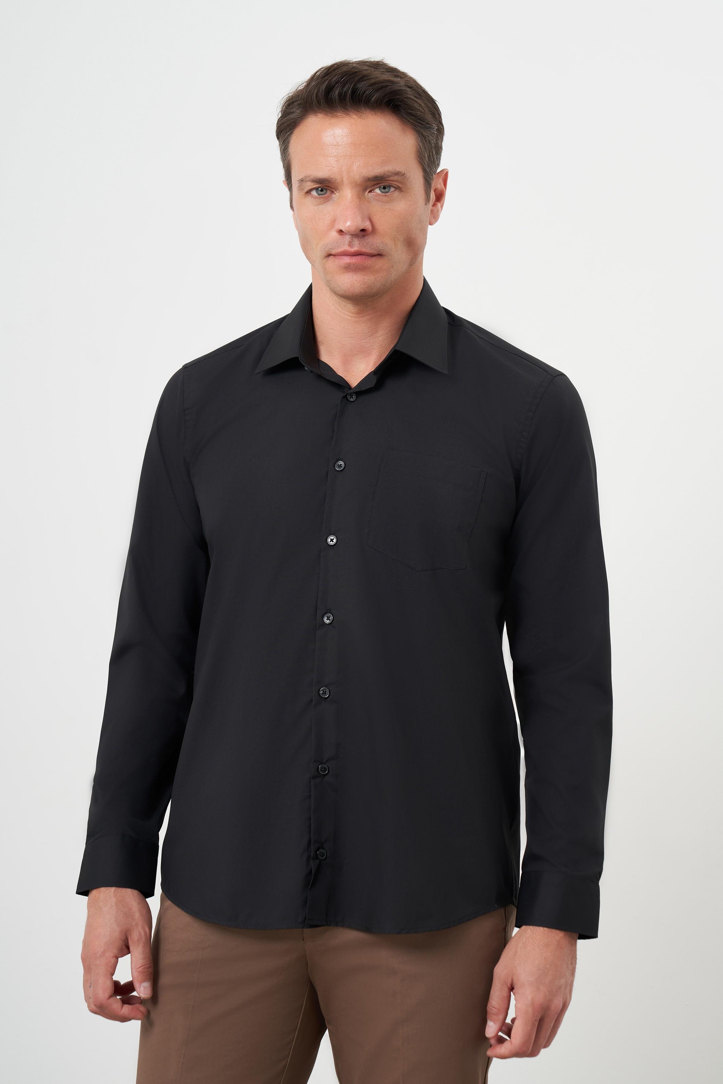Morven Erkek Siyah Basic Düz Desen Cepli Sert Yaka Regular Fit Gömlek (24MC004103001)