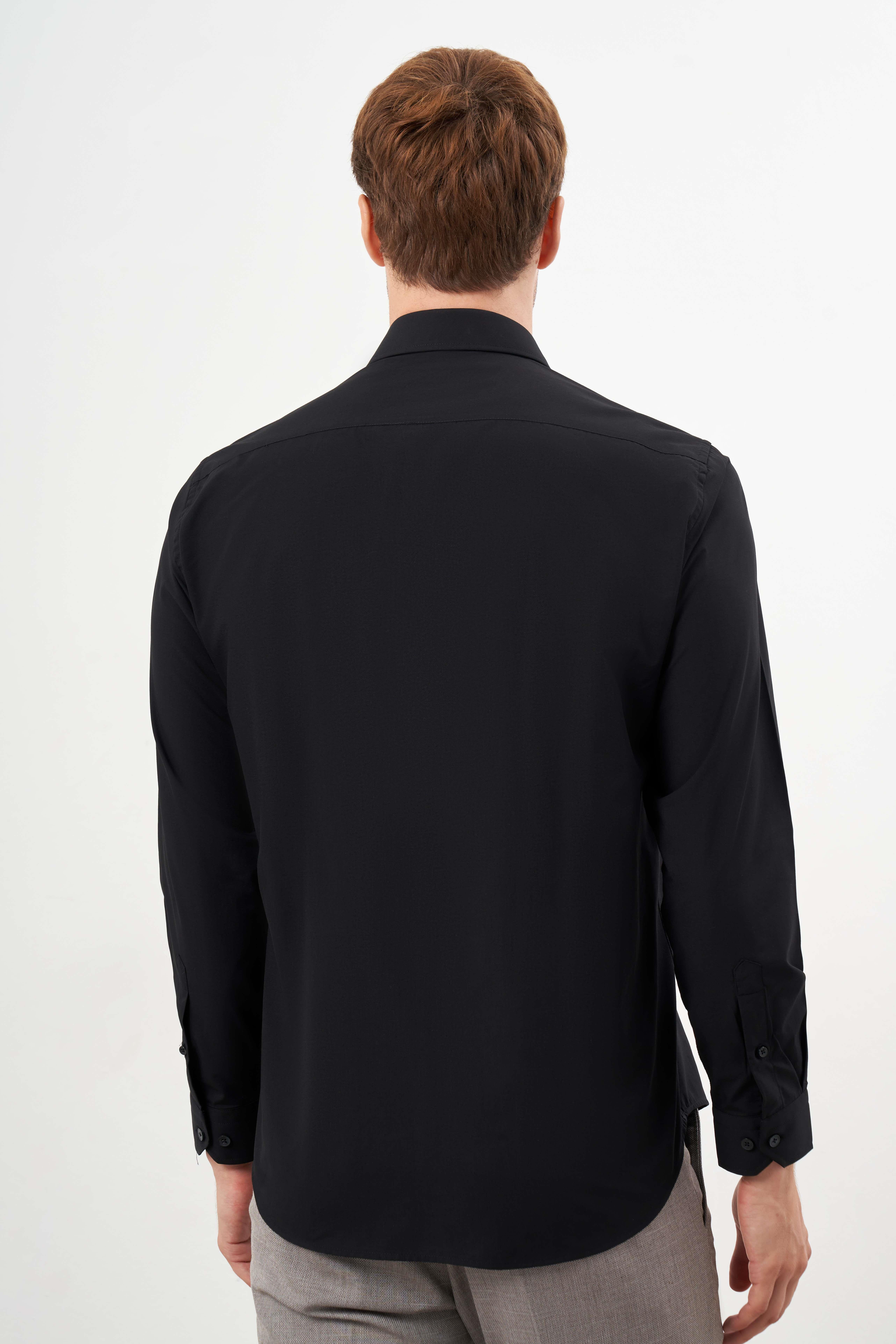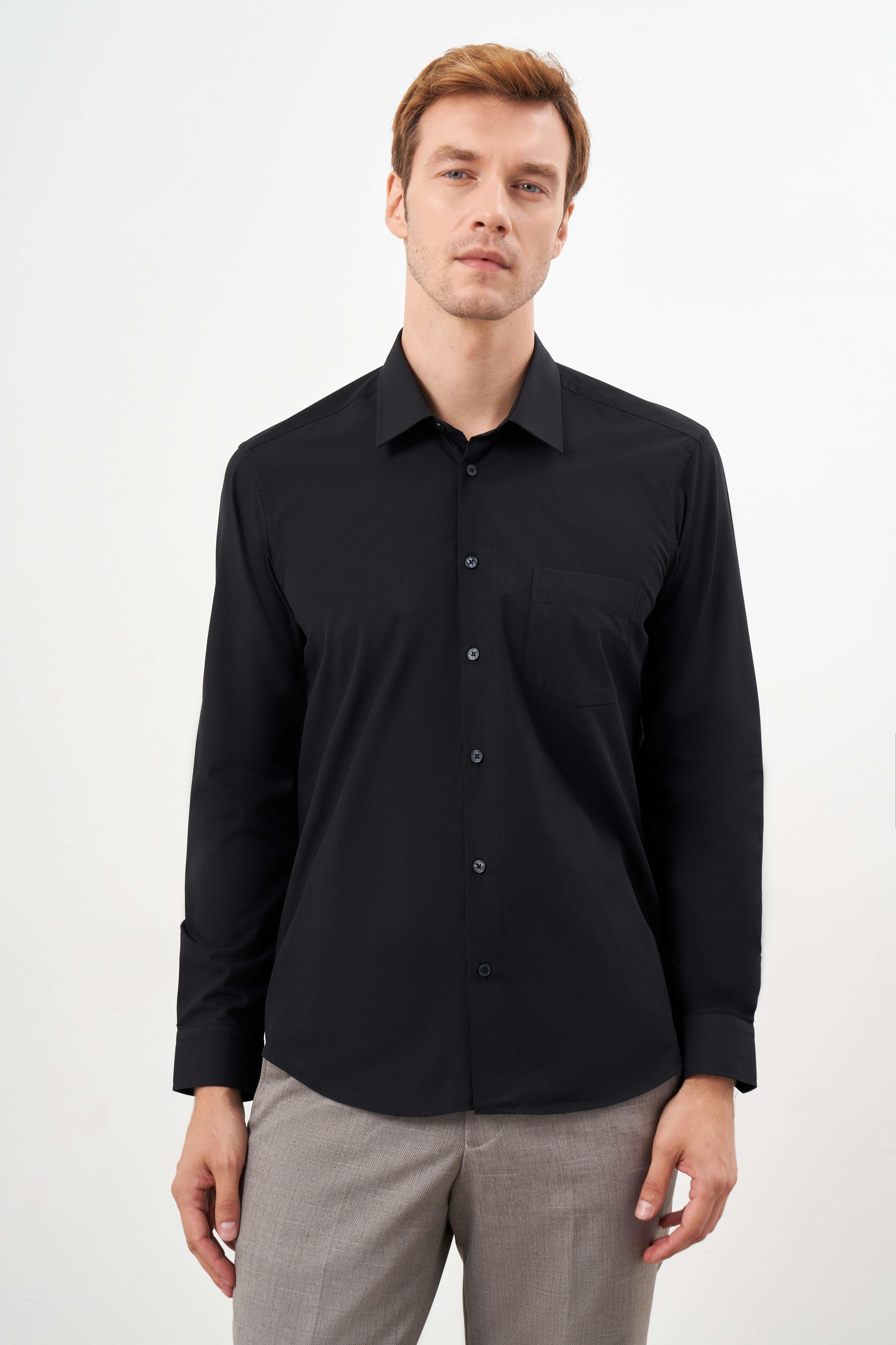 Morven Erkek Siyah Basic Düz Desen Cepli Sert Yaka Regular Fit Gömlek (24MC004122001)