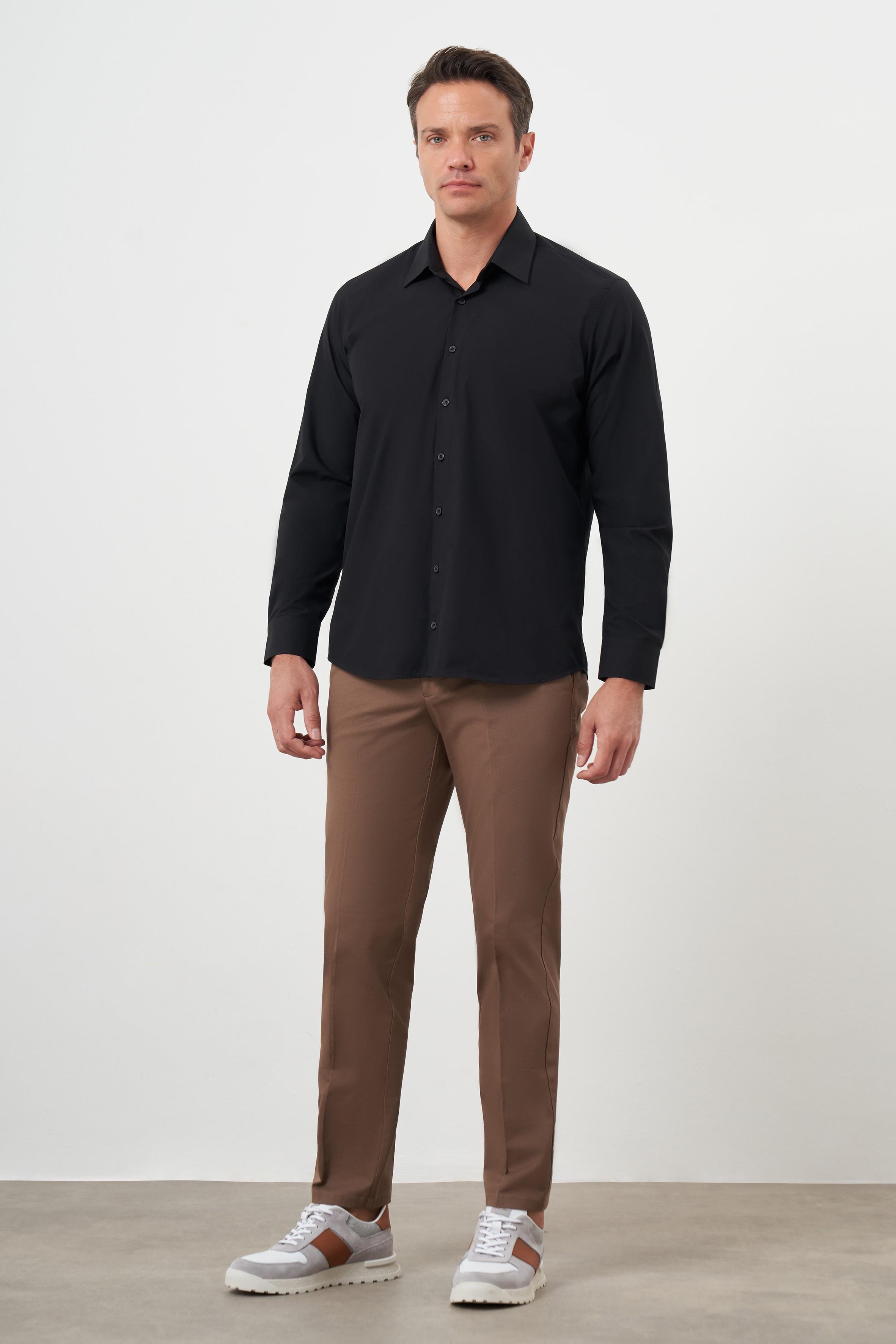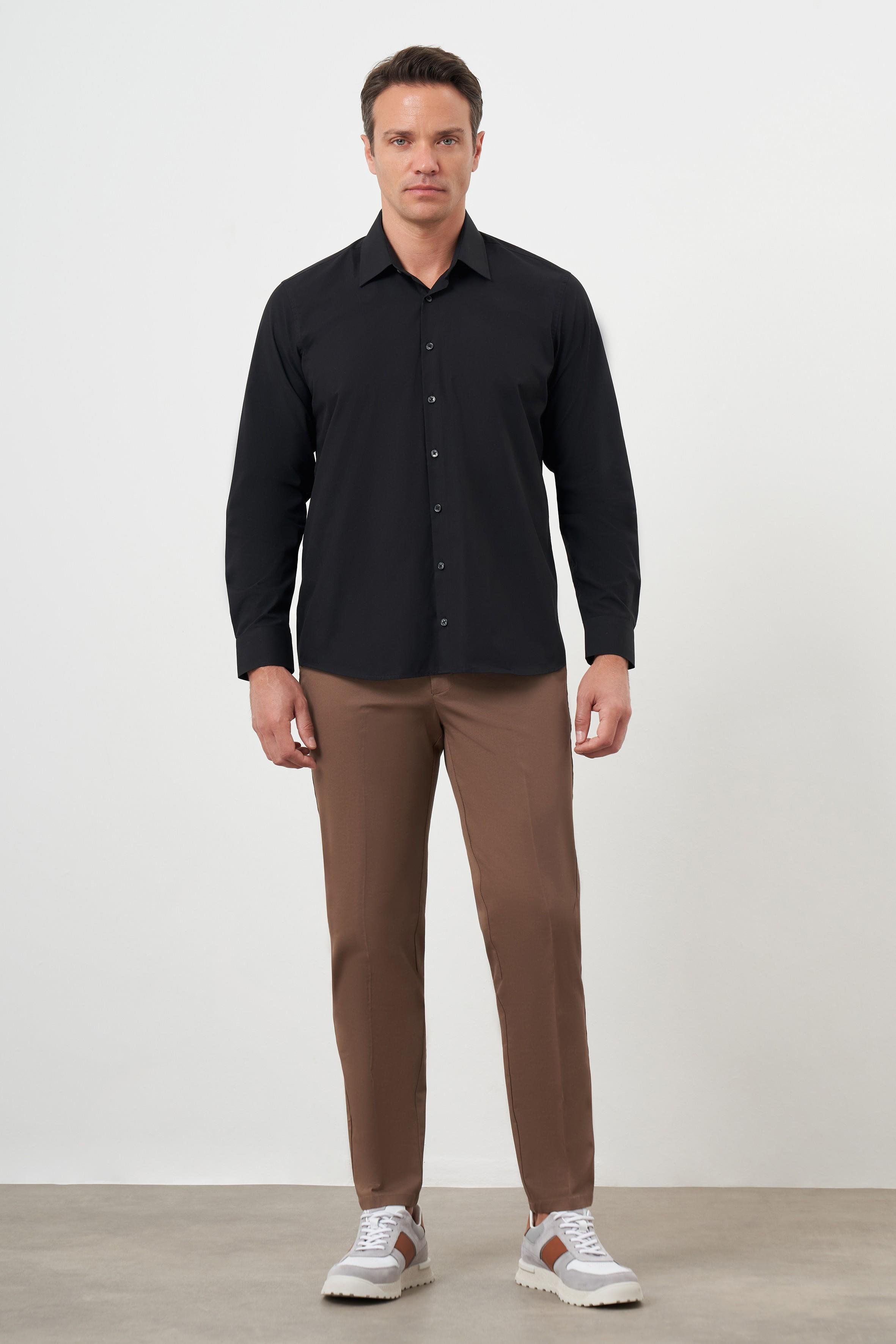 Morven Erkek Siyah Basic Düz Desen Sert Yaka Regular Fit Gömlek (24MC004110001)