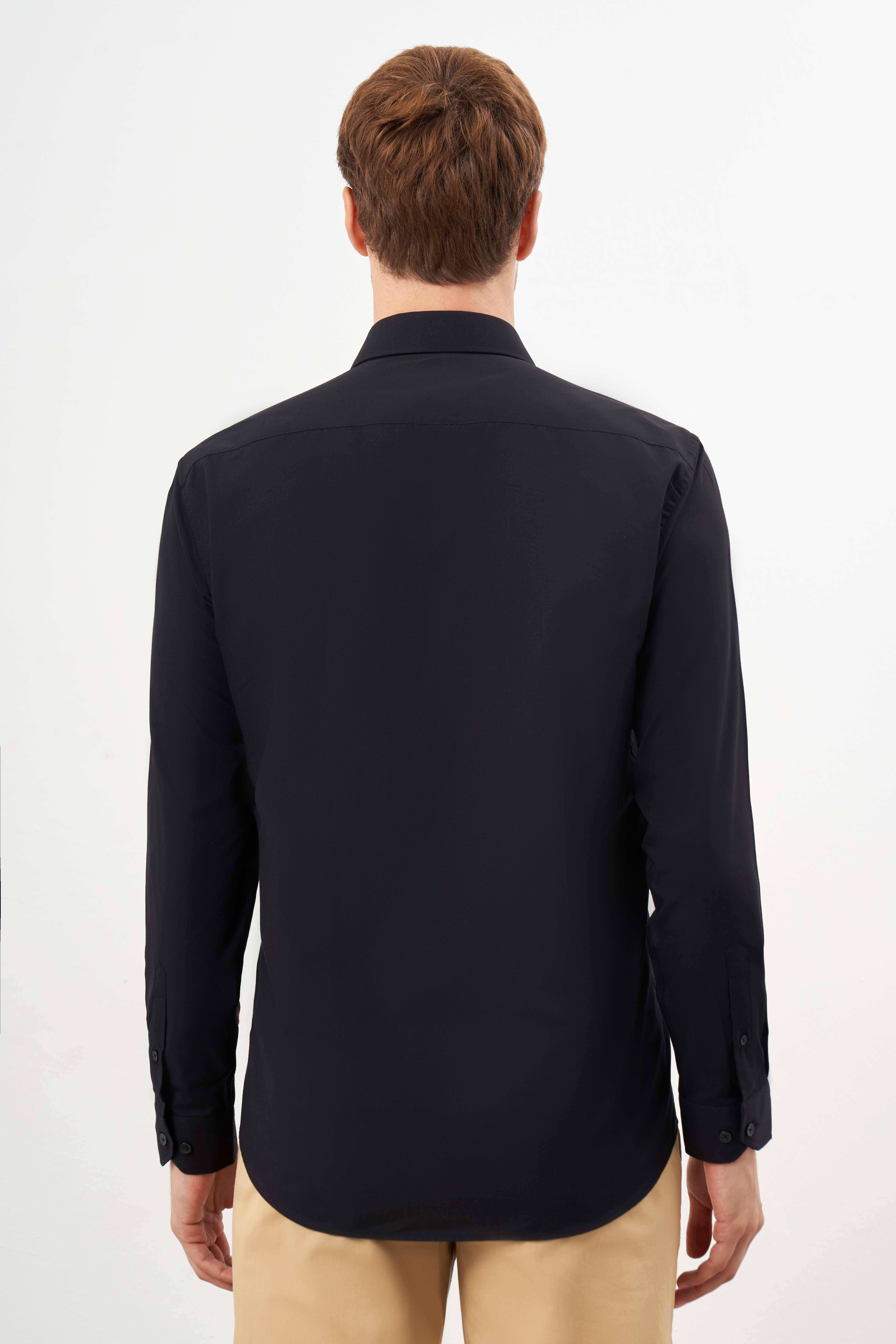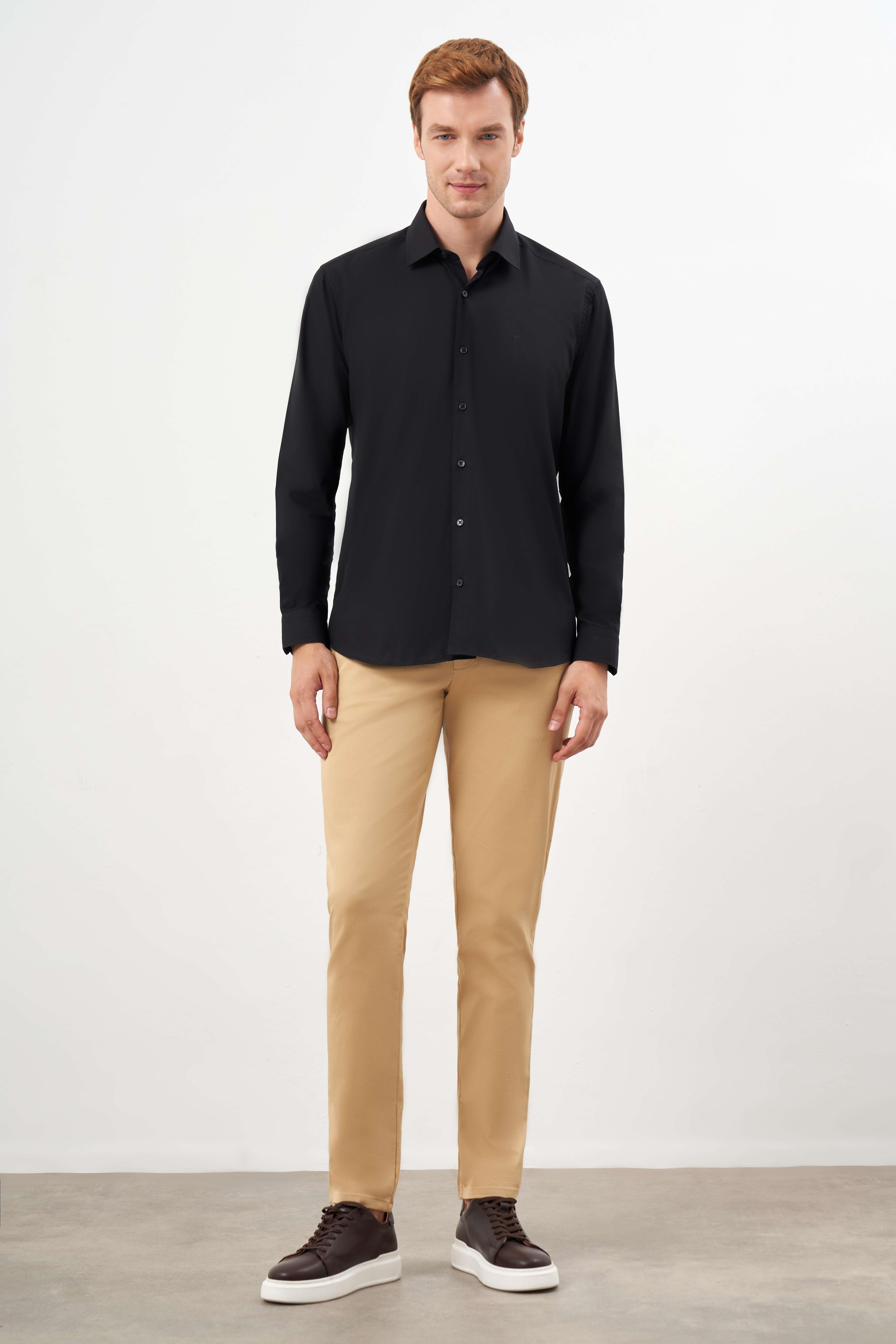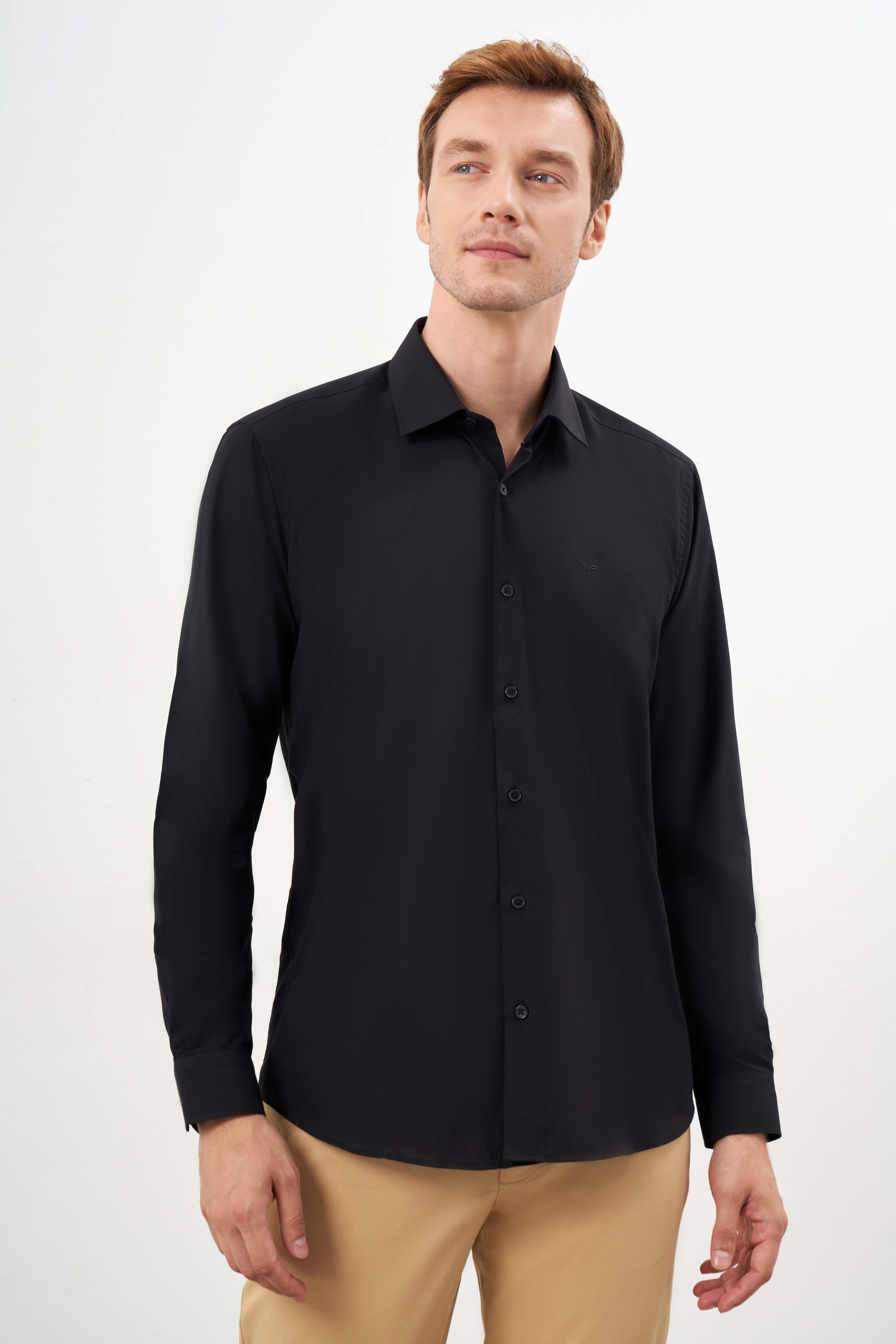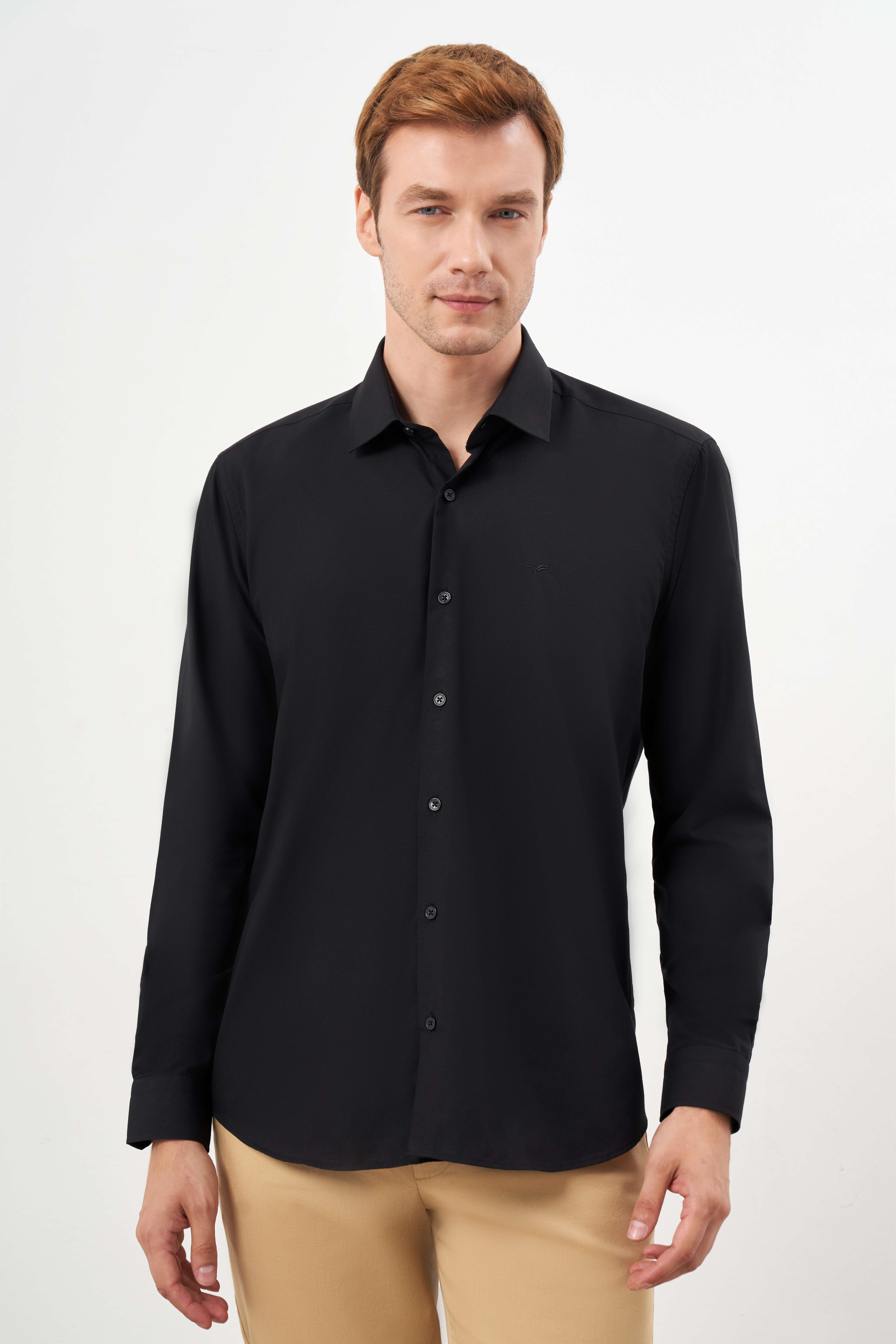 Morven Erkek Siyah Basic Düz Desen Sert Yaka Regular Fit Gömlek (24MC004009001)