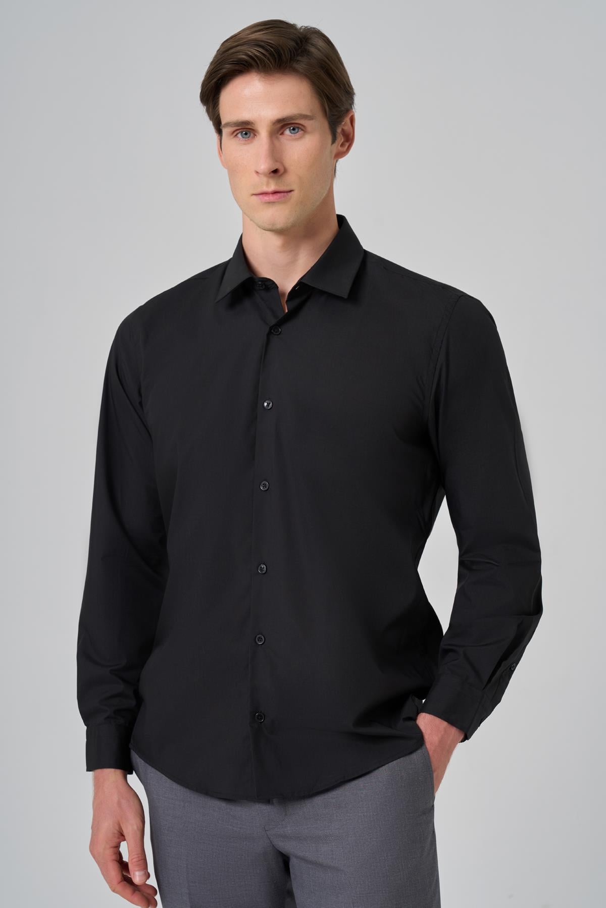 Morven Erkek Siyah Basic Regular Fit Sert Yaka Gömlek (25MC004072001)